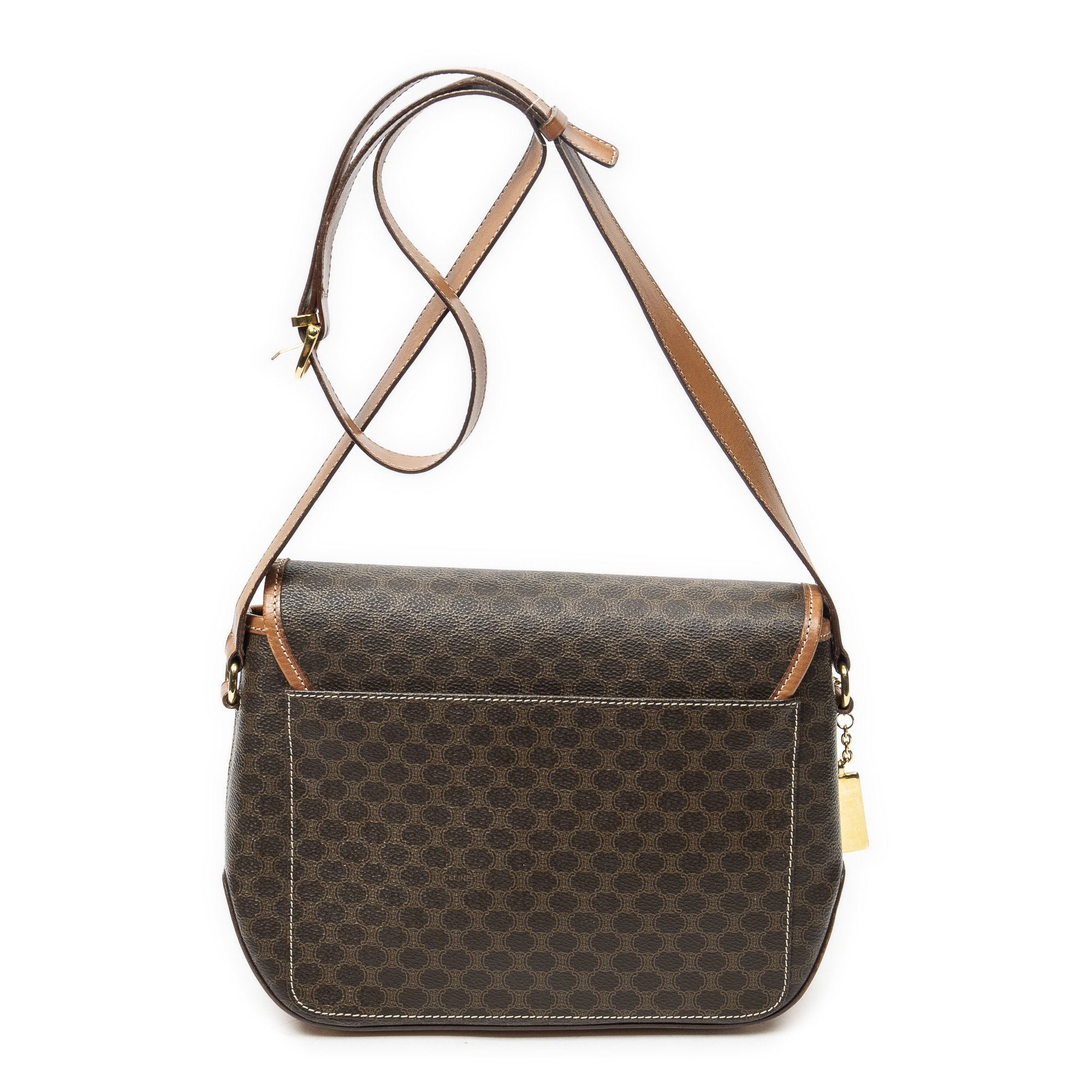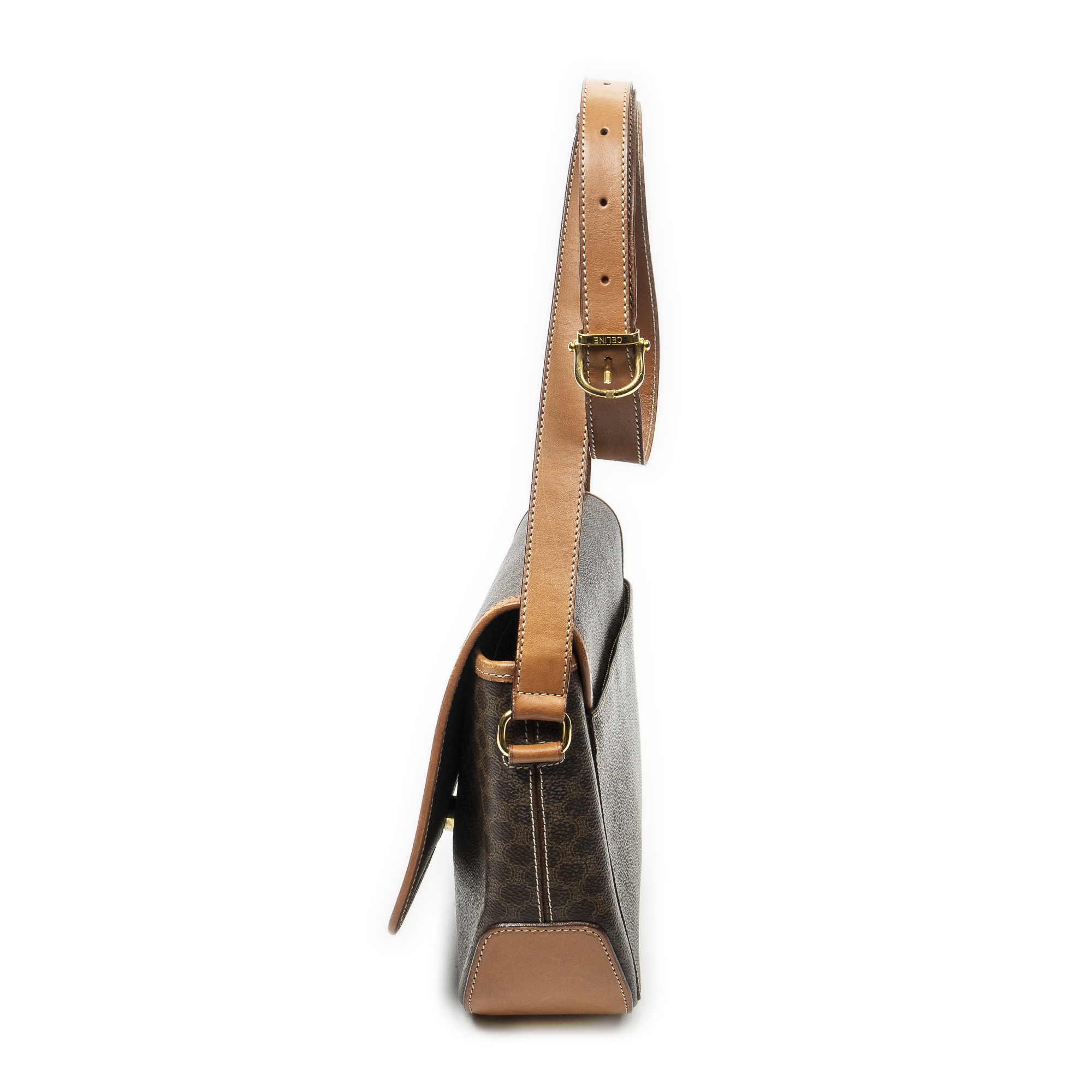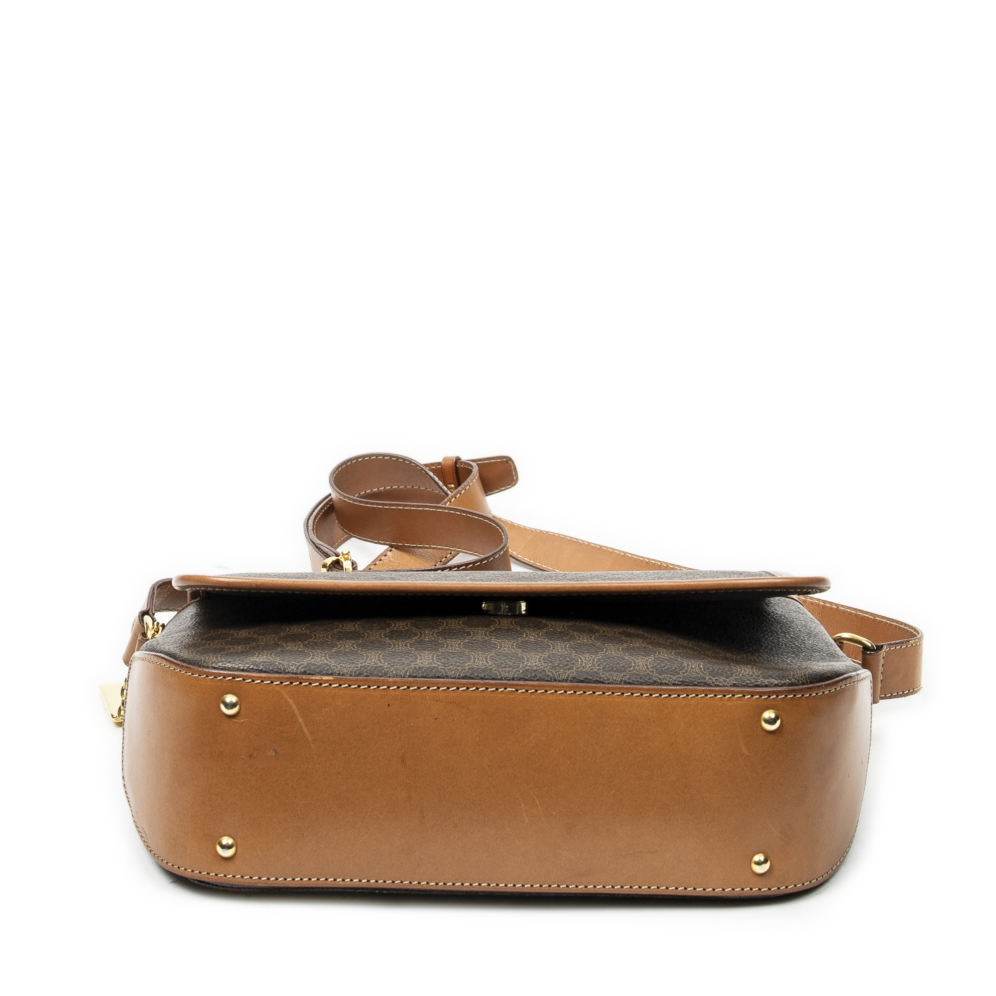 Celine sac à bandoulière Vintage Flap Messenger en brun et or. Le produit est en Excellent état (A).
