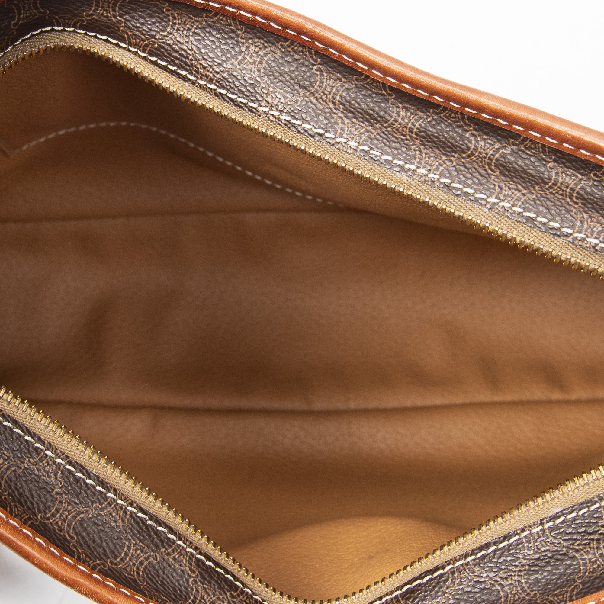 Celine Sac à bandoulière Vintage Zip Messenger en Brown et Gold. Le produit est en Très Bon état (AB).