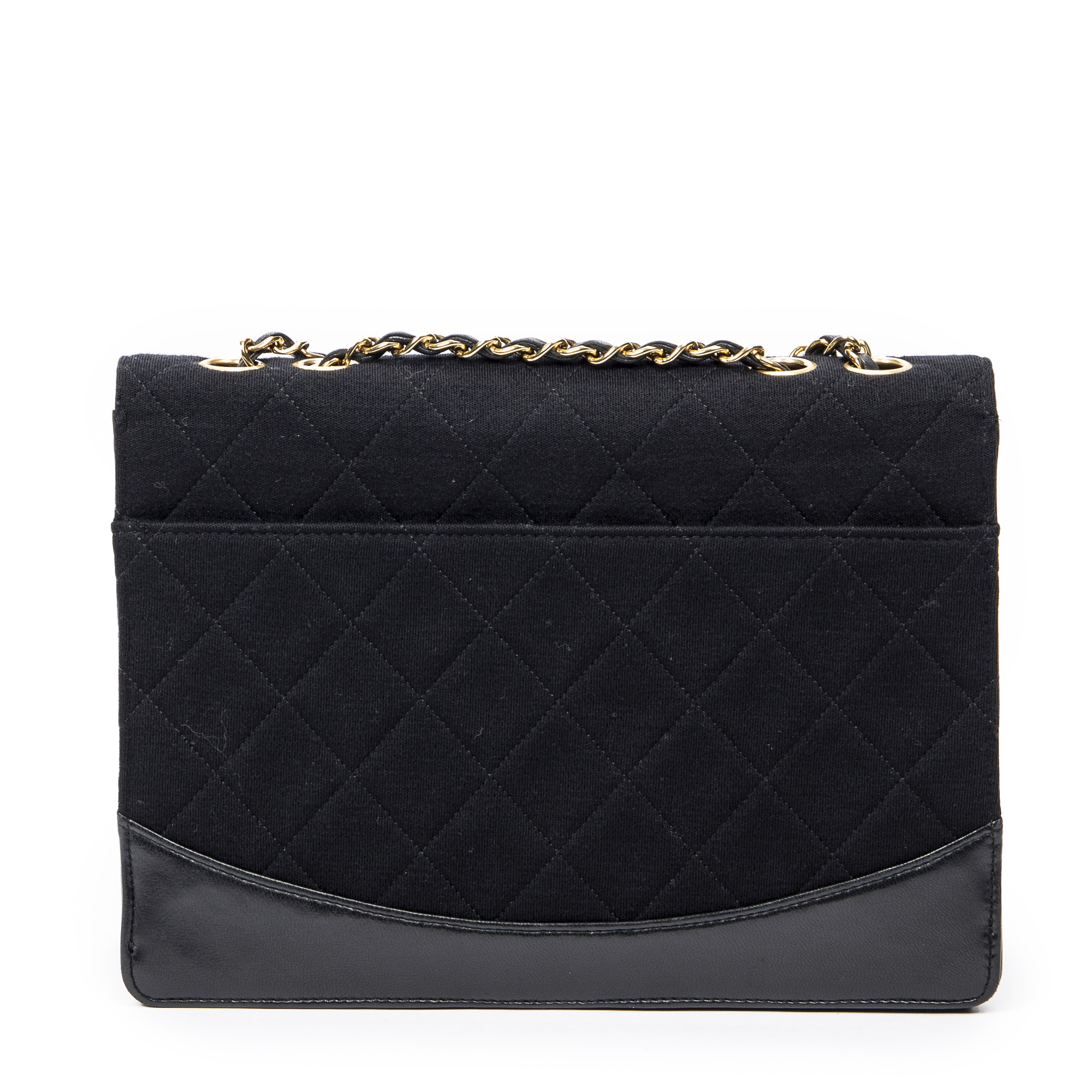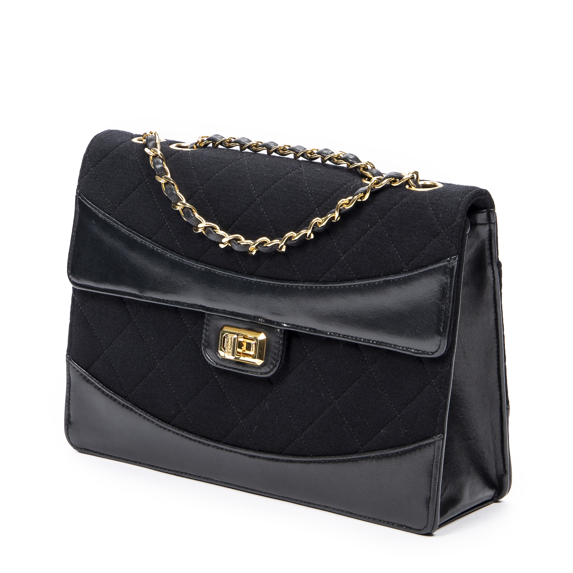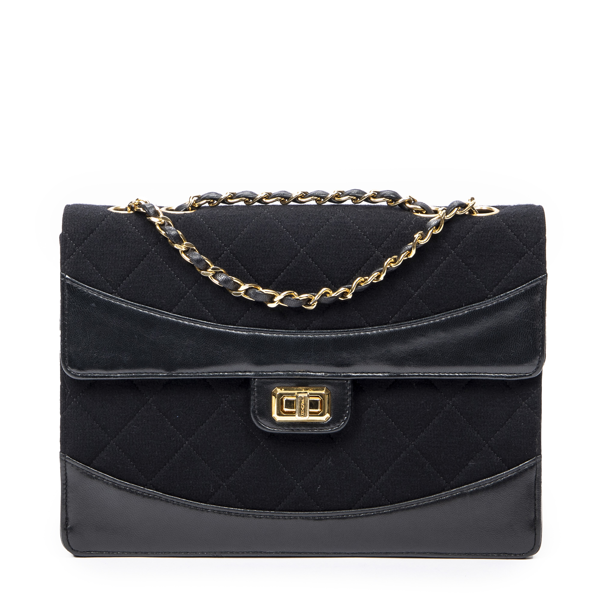 Chanel Sac à bandoulière 2.55 Reissue Jersey Border Flap en Noir et Gold. Le produit est en Excellent état (A).