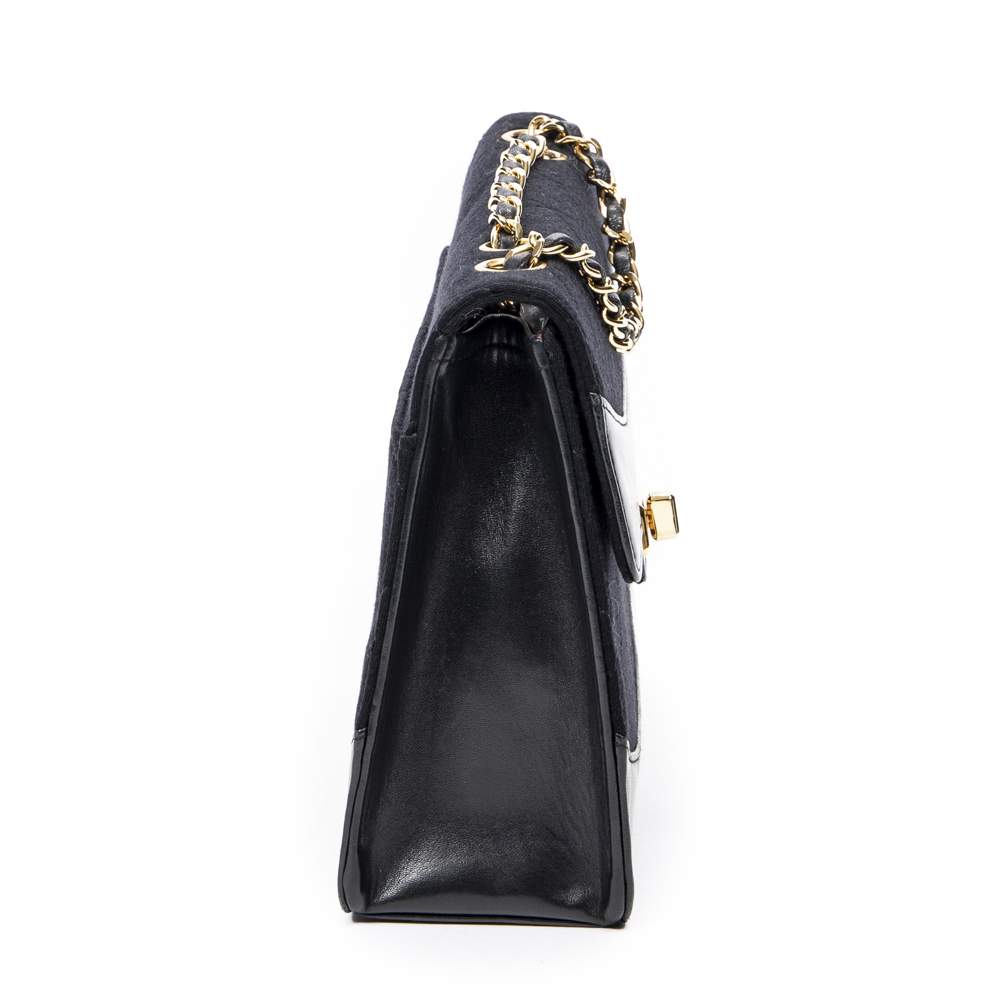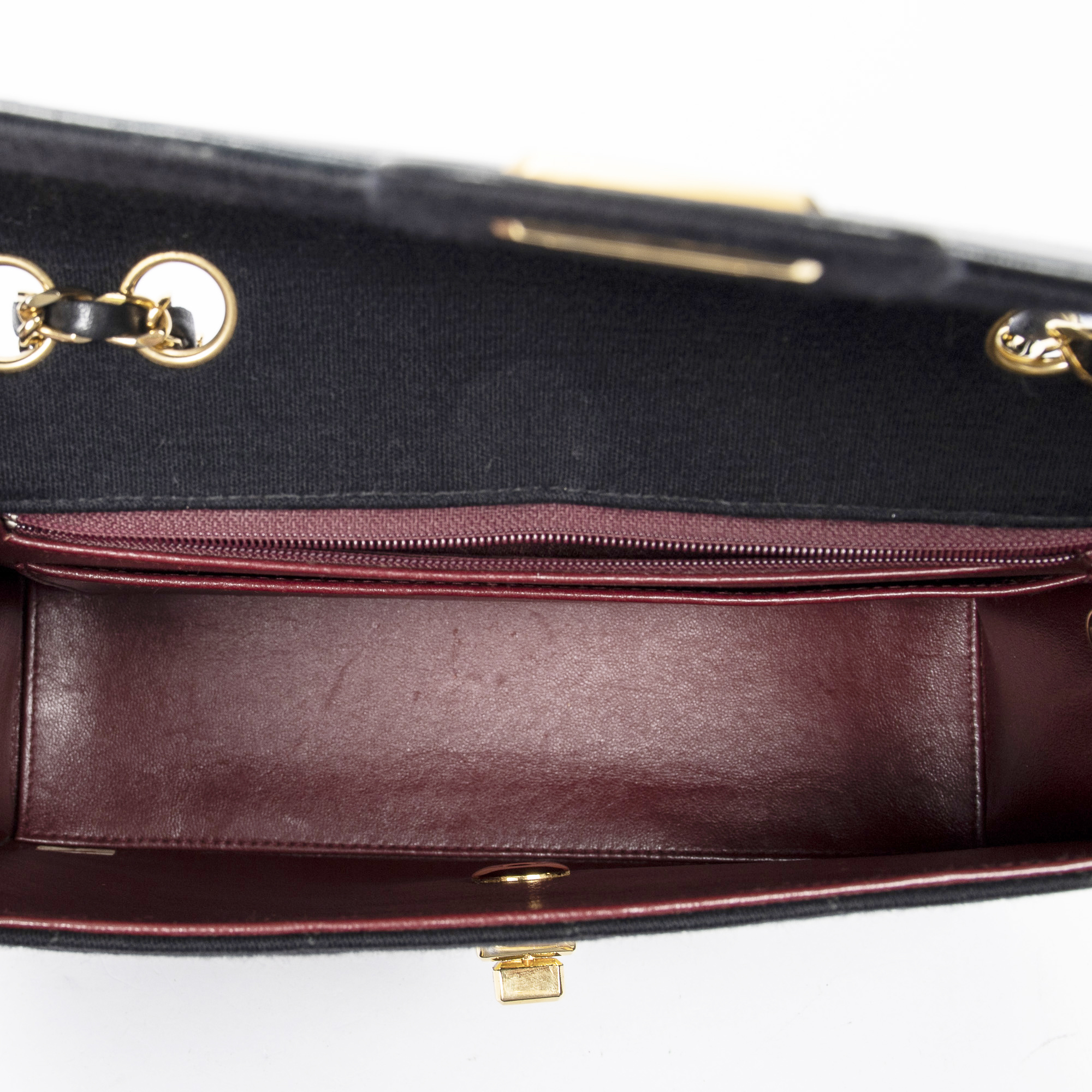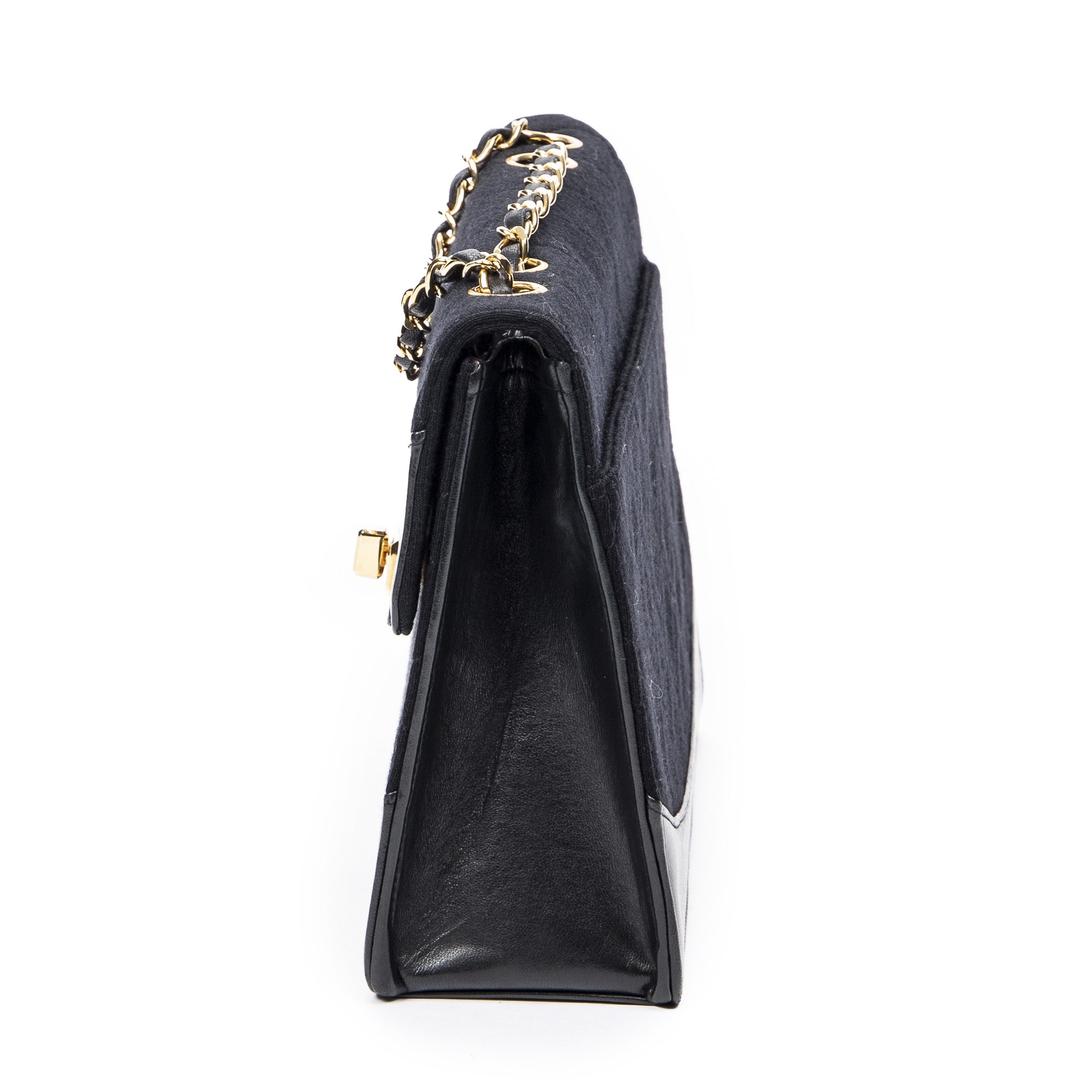 Chanel Sac à bandoulière 2.55 Reissue Jersey Border Flap en Noir et Gold. Le produit est en Excellent état (A).