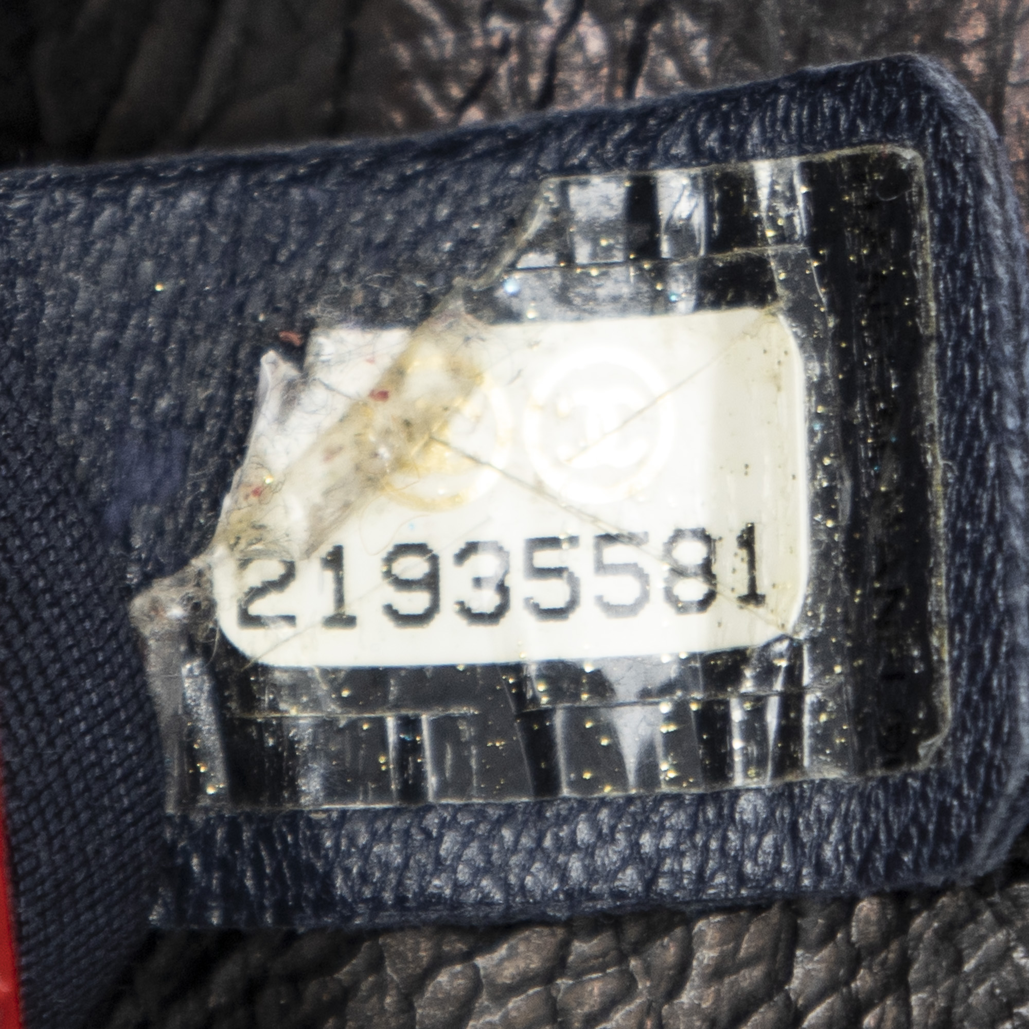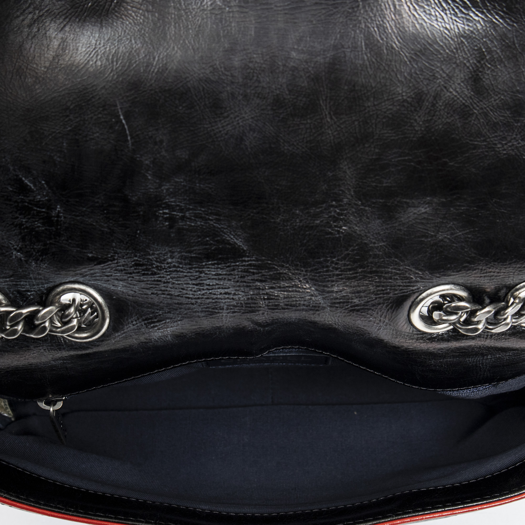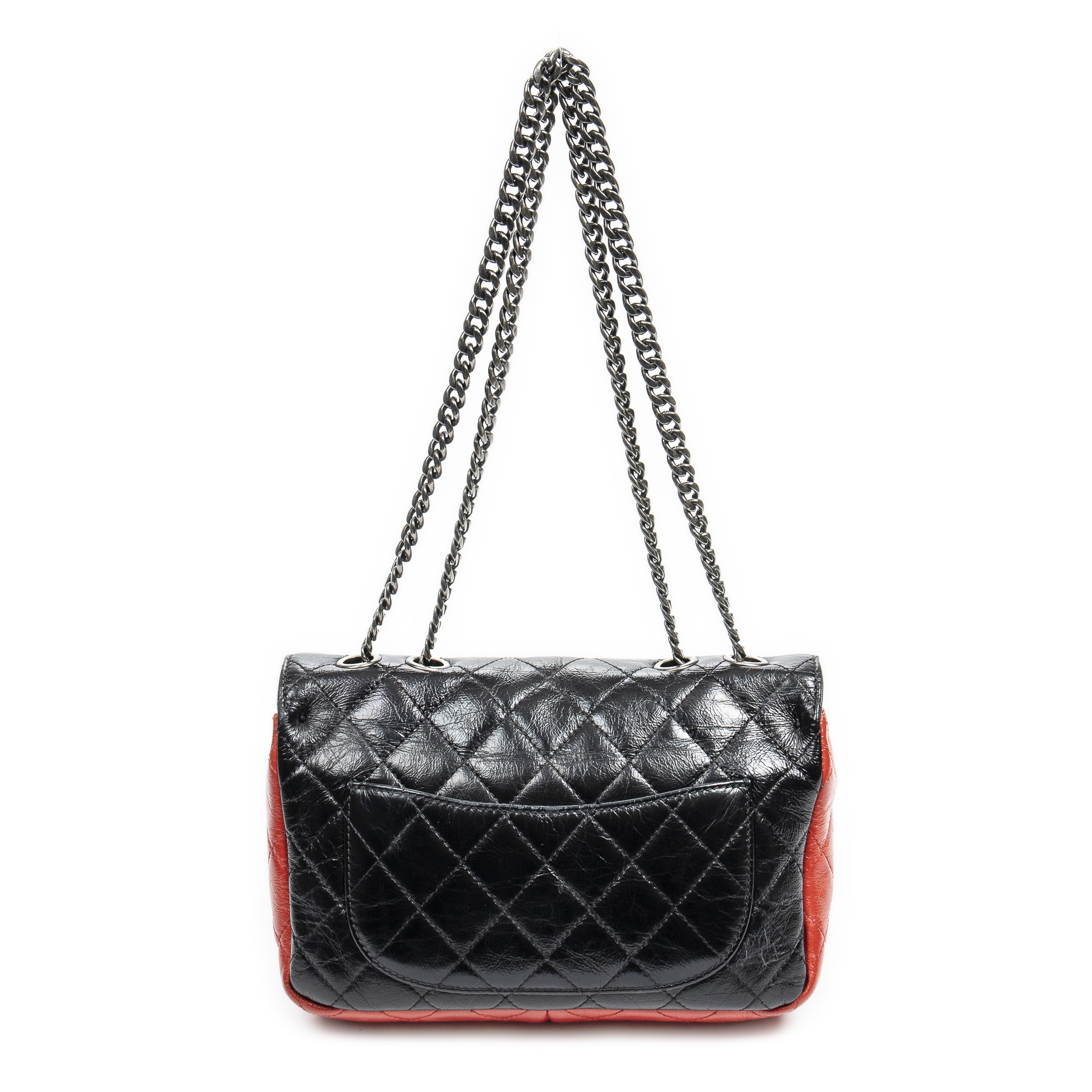 Chanel Sac à bandoulière CC Tricolor Plate Flap en Noir/Rouge/Bleu marine et Argent. Le produit est en Excellent état (A).