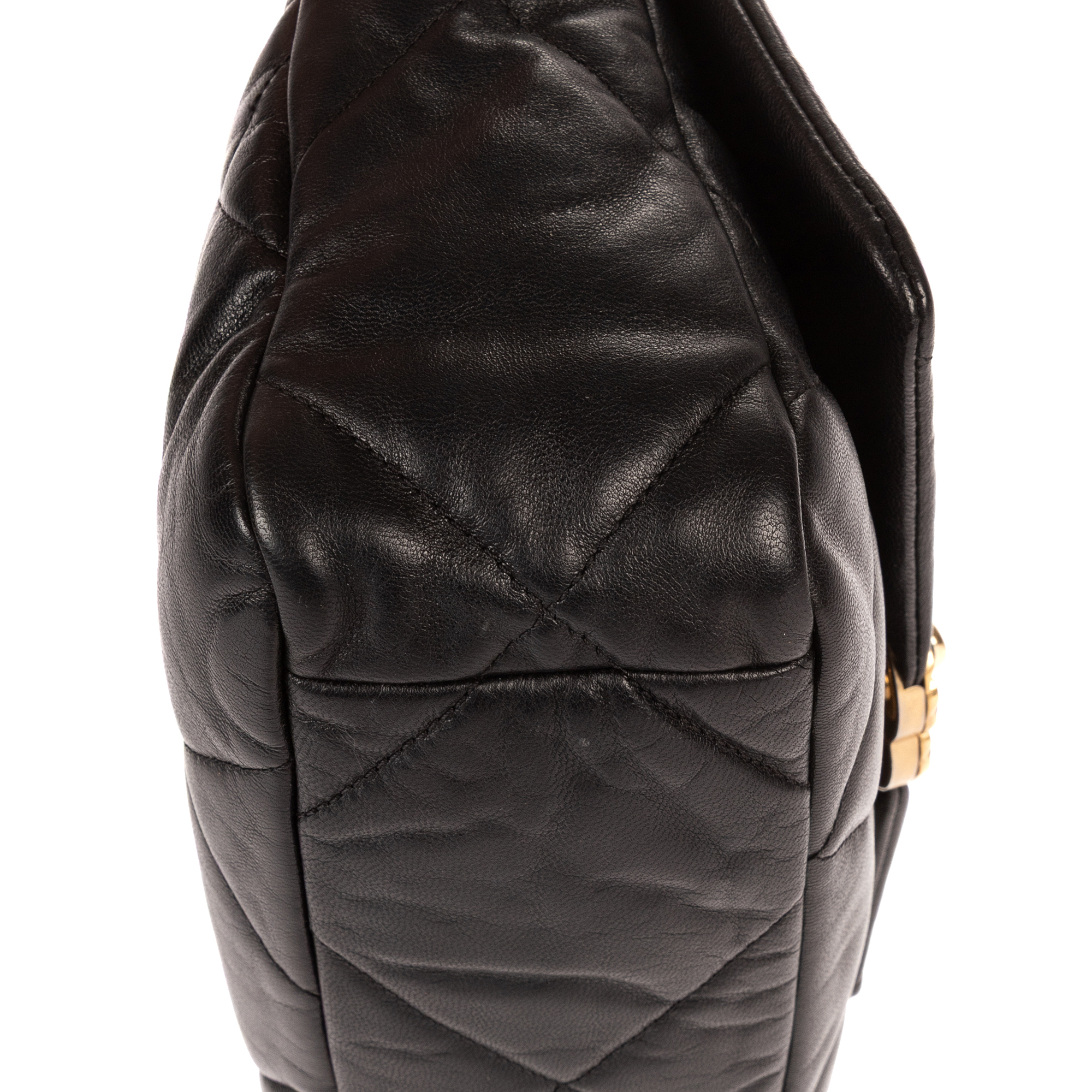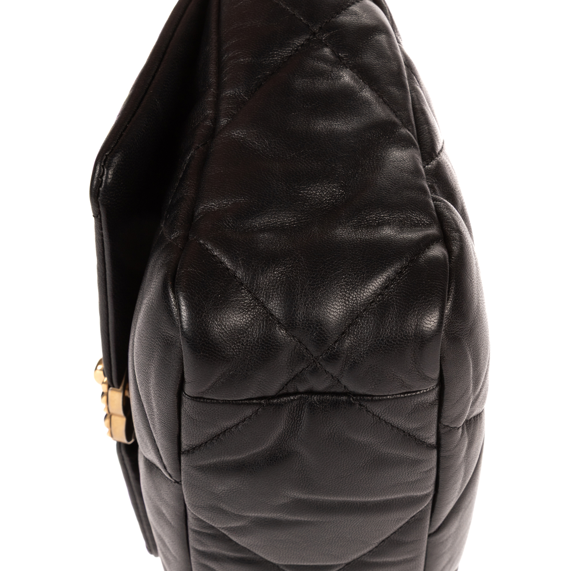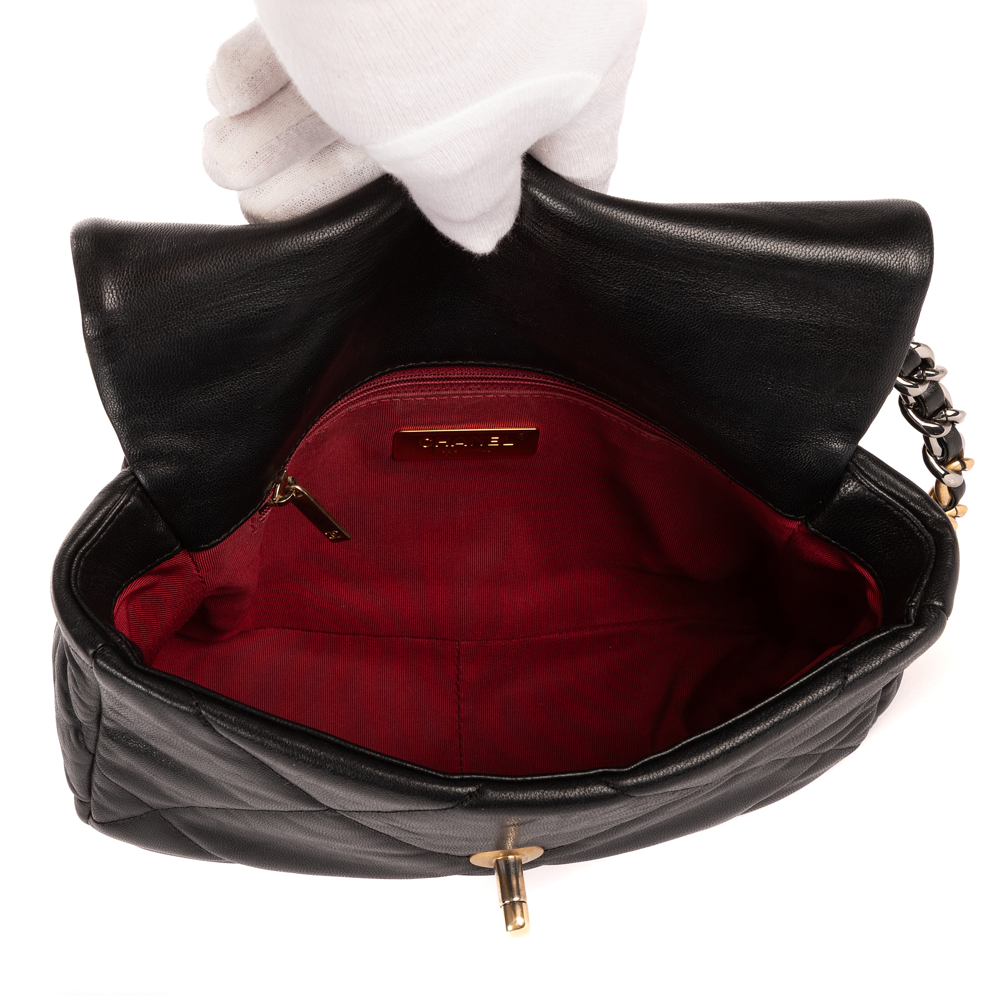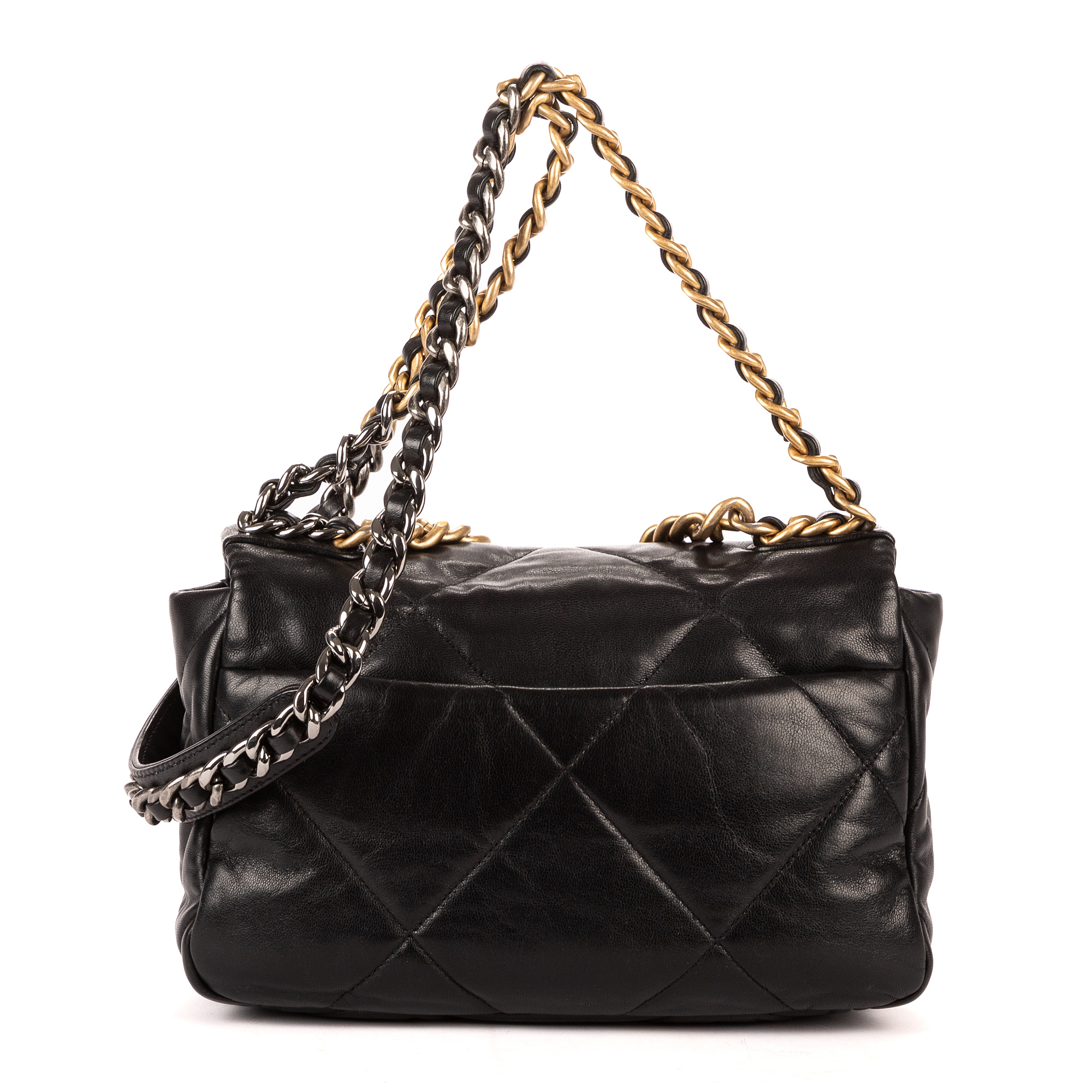 Chanel Sac à bandoulière Classic 19 Flap en Noir et Or/Métal à canons. Le produit est en Excellent état (A).