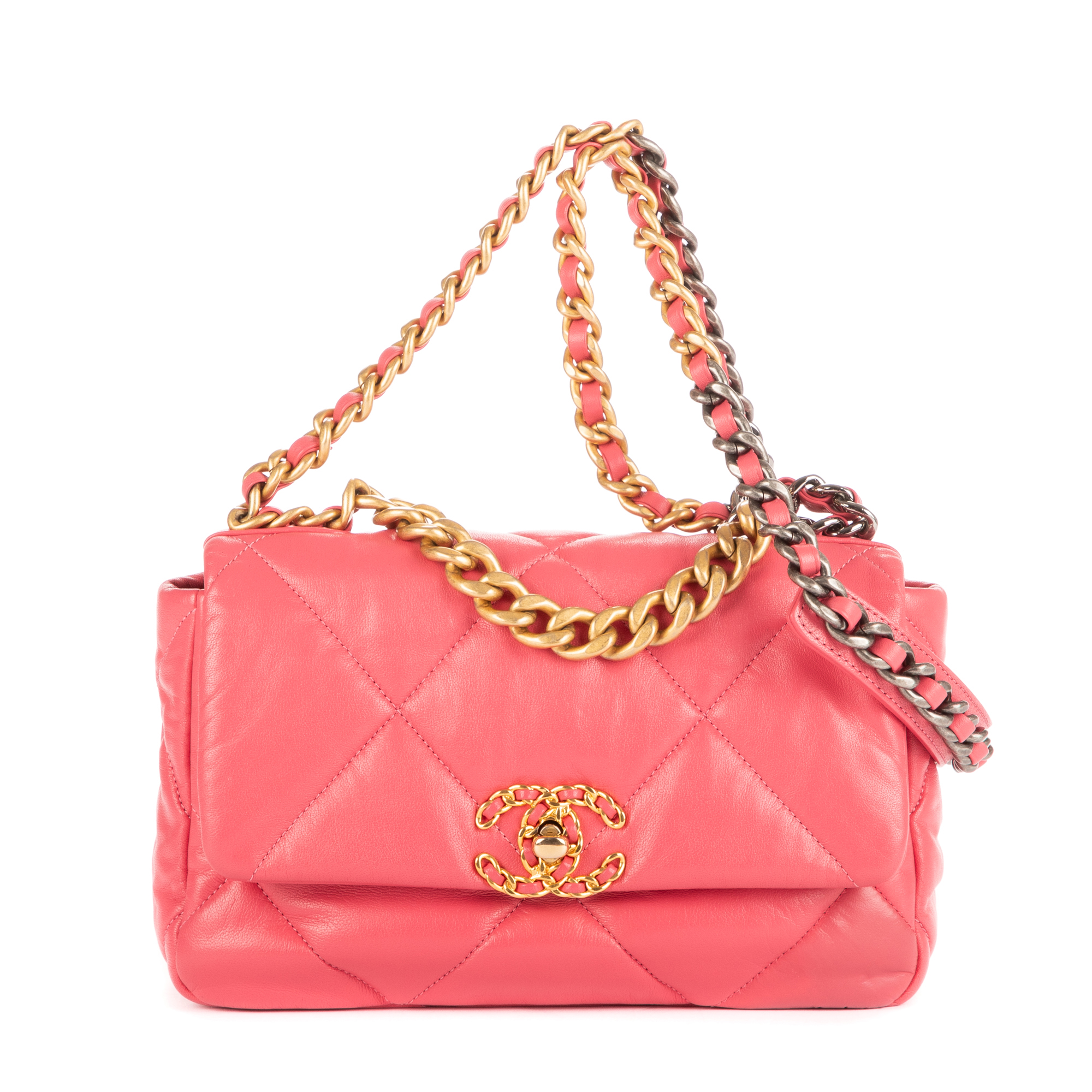 Chanel Sac à bandoulière Classic 19 Flap Small en Rose et Or/Argent. Le produit est en Excellent état (A).