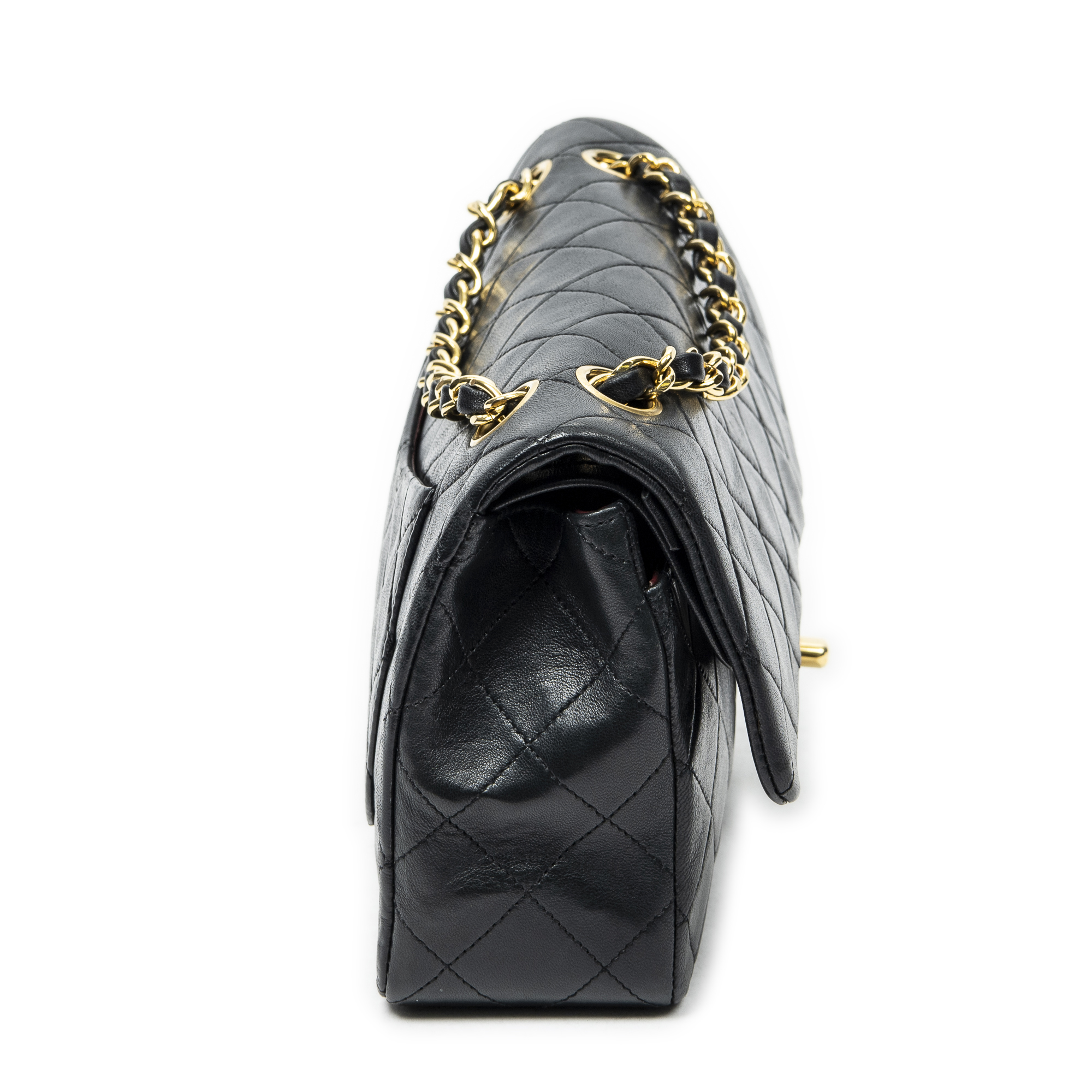 Chanel Sac à bandoulière Classic Double Flap 23 en Noir et Gold. Le produit est en Excellent état (A).