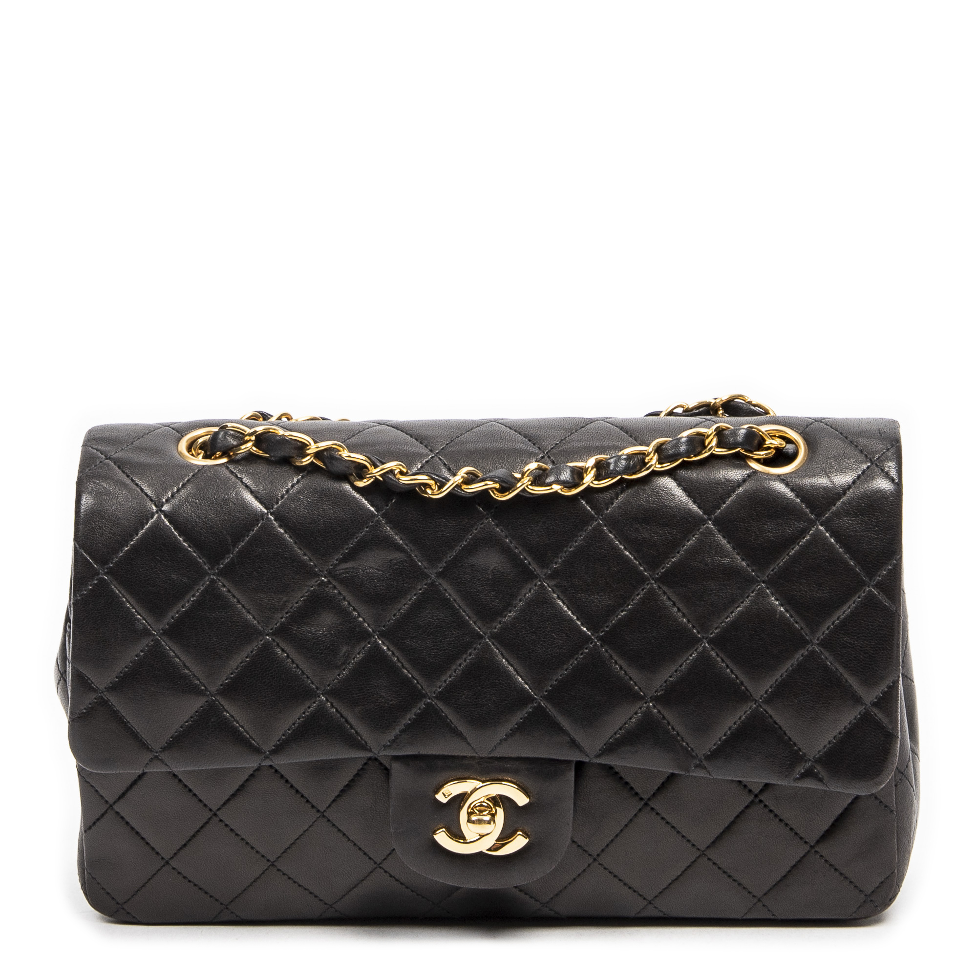 Chanel Sac à bandoulière Classic Double Flap 26 en Noir et Gold. Le produit est en Excellent état (A).