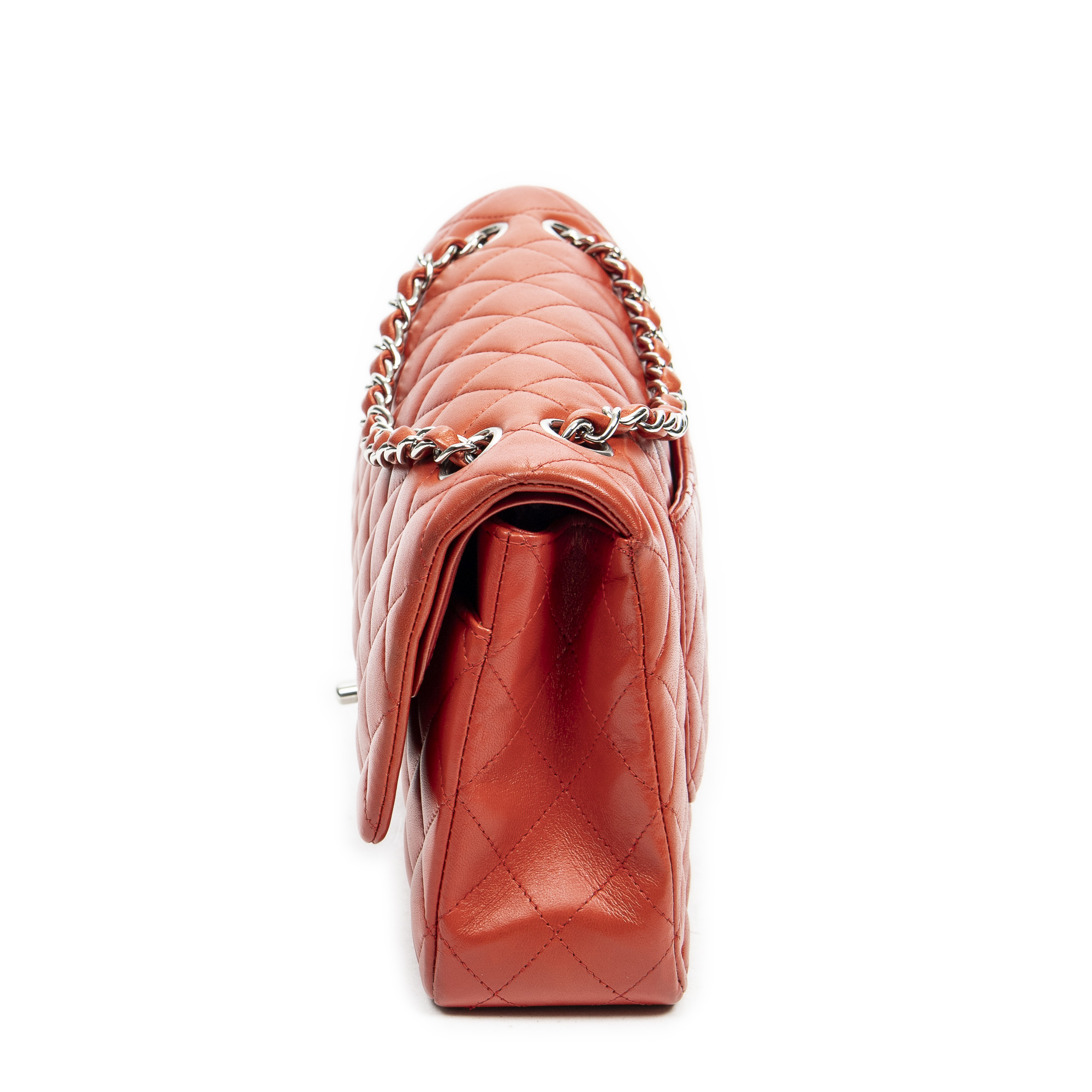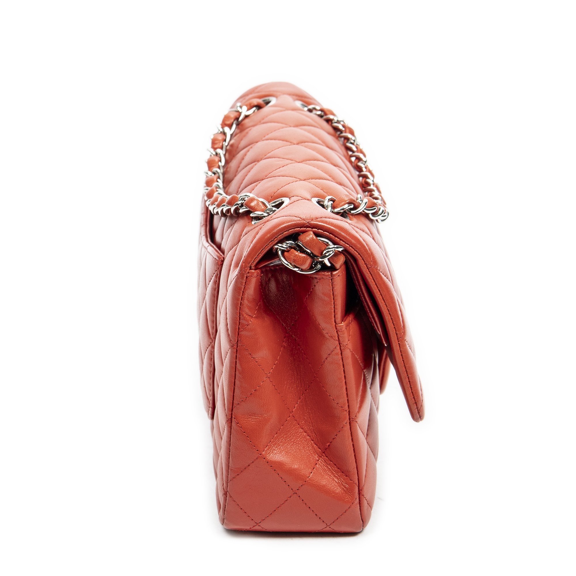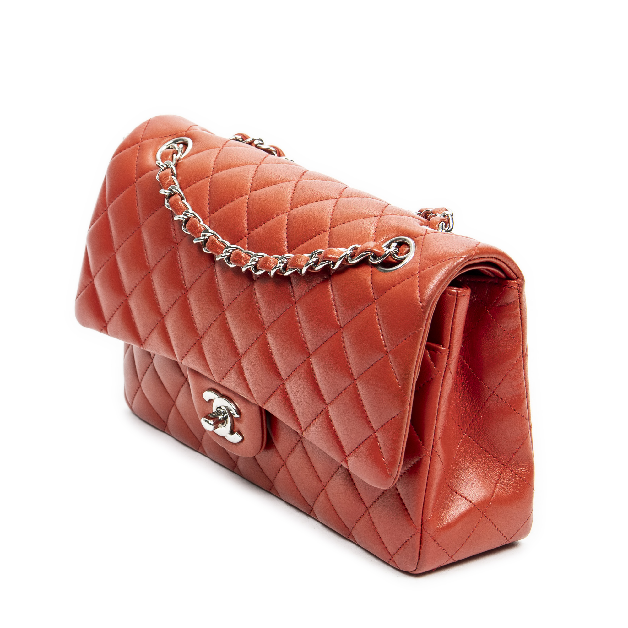 Chanel sac à bandoulière Classic Double Flap 26 en Red et argent. Le produit est en Parfait état (AA).