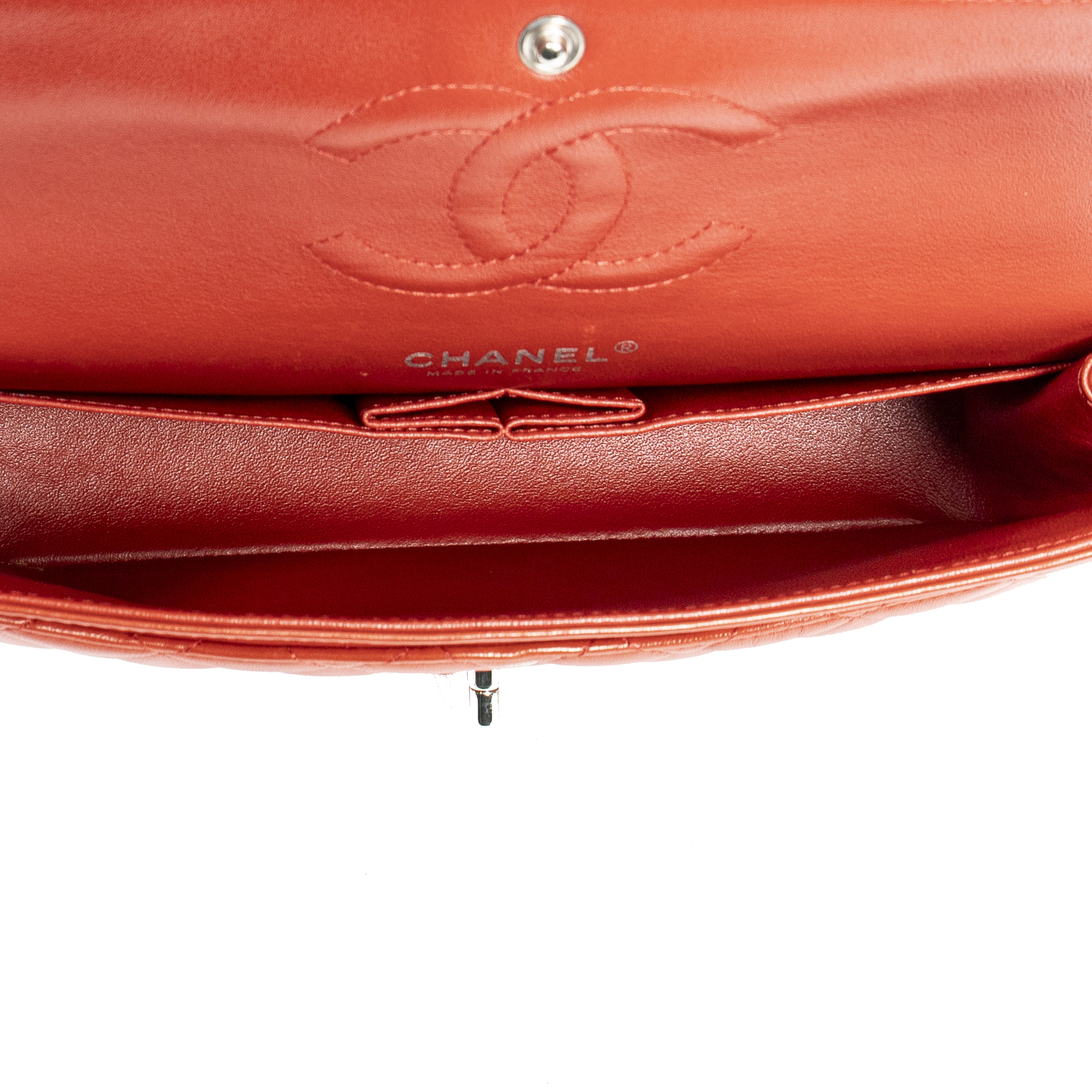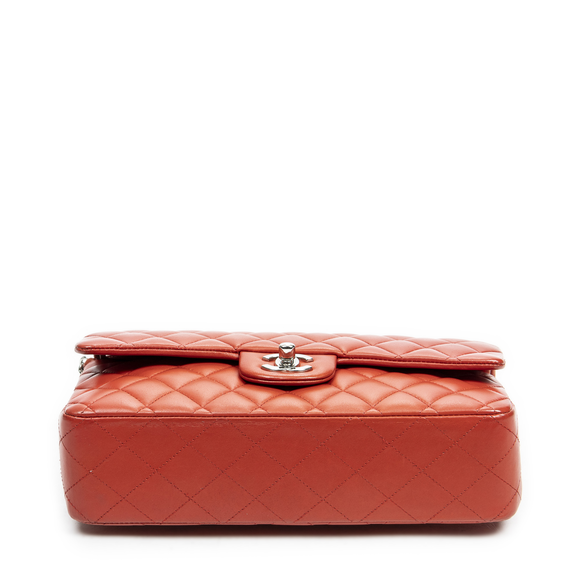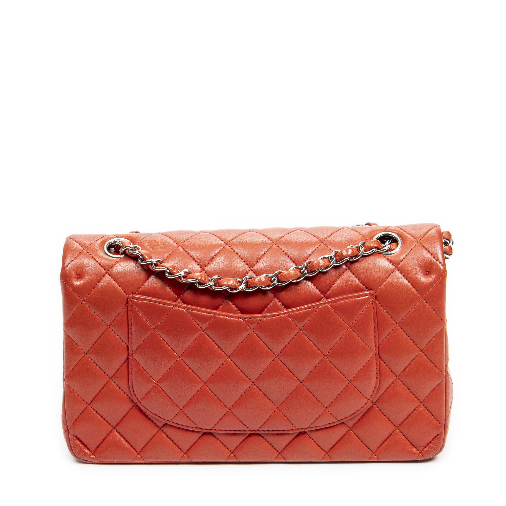 Chanel sac à bandoulière Classic Double Flap 26 en Red et argent. Le produit est en Parfait état (AA).