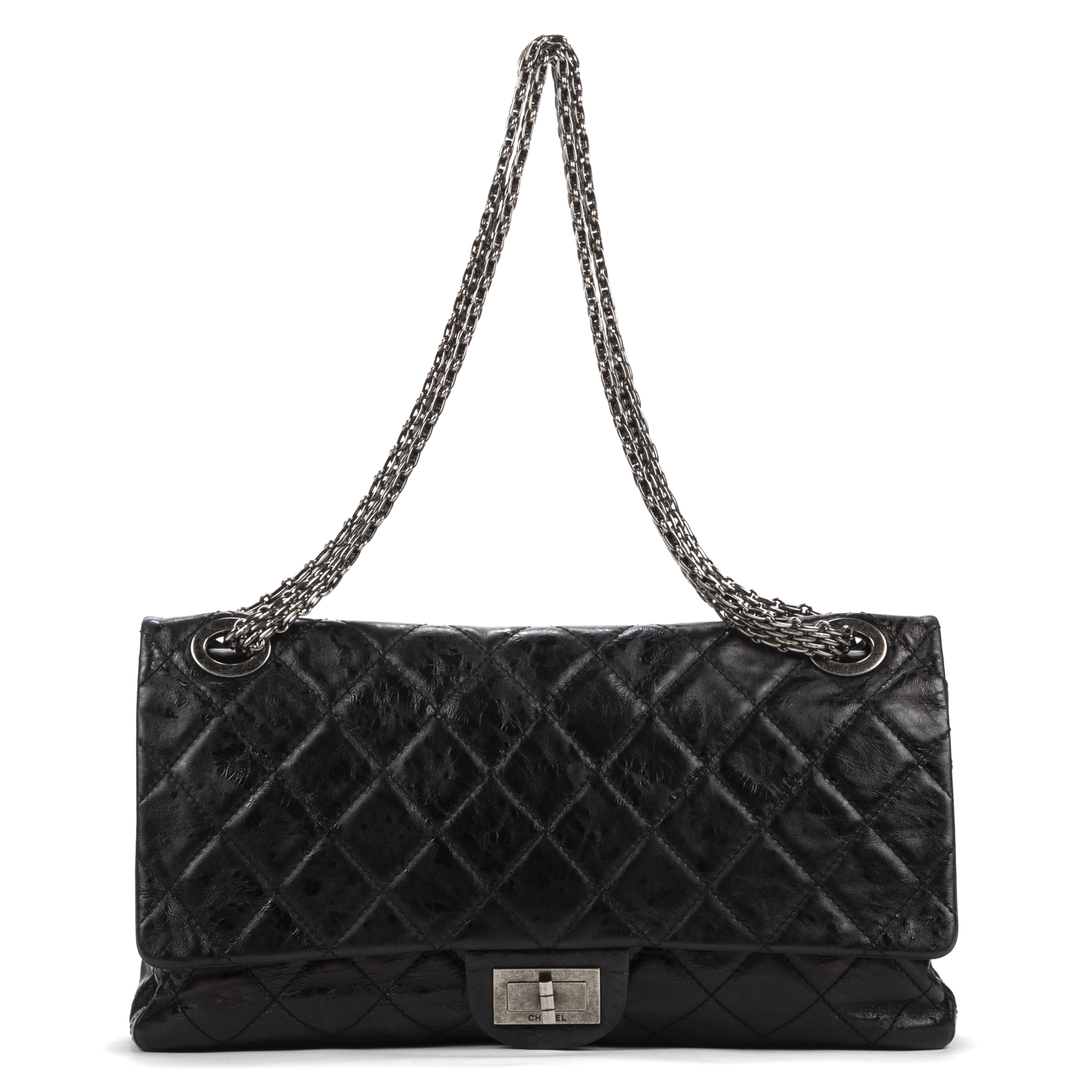 Chanel Sac à bandoulière Double Flap 2.55 Large en Black et Laiton vieilli. Le produit est en Excellent état (A).