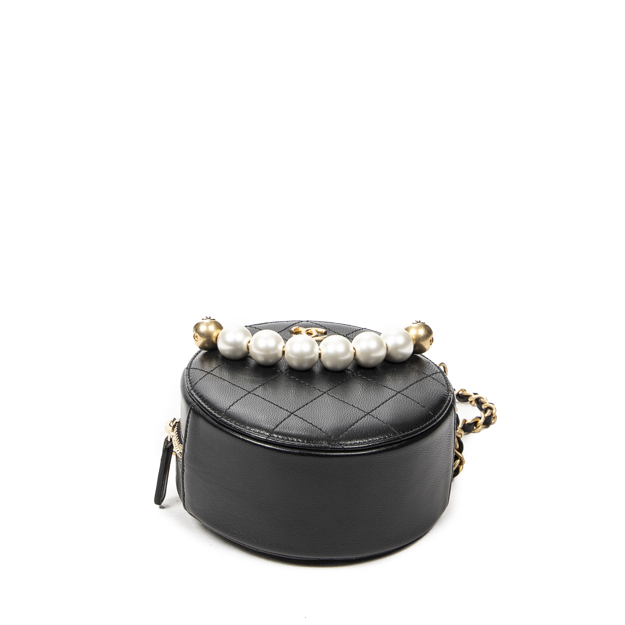 Chanel Front Pearl Round Chain Clutch en Noir