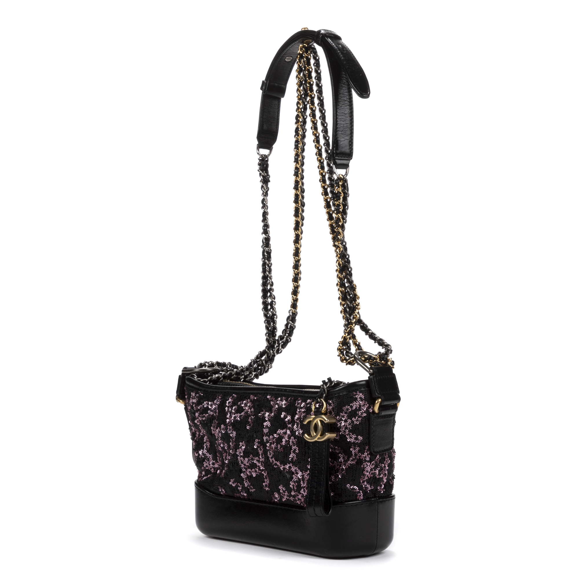 Chanel Sac à bandoulière Gabrielle Sequins en Noir et Argent. Le produit est en Excellent état (A).