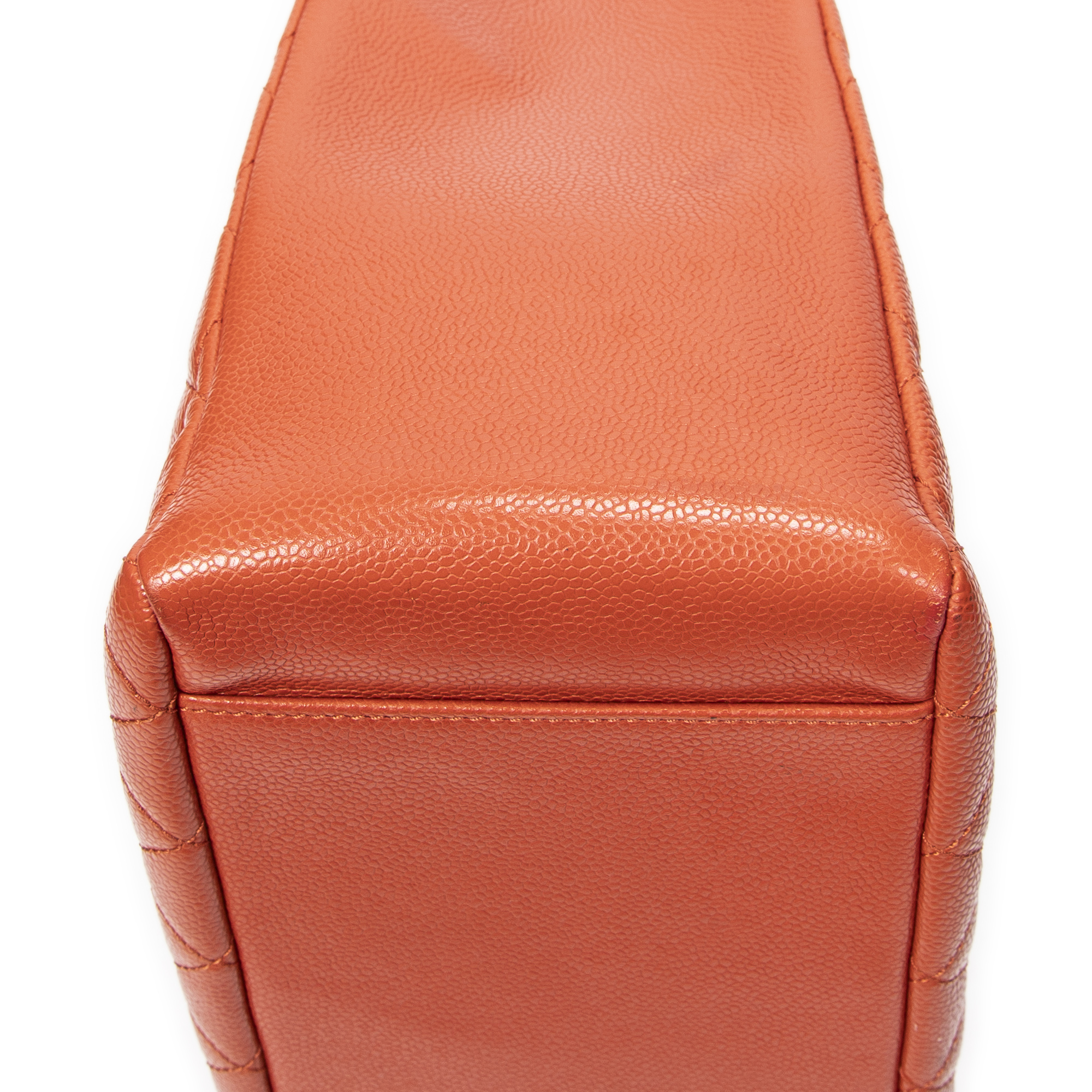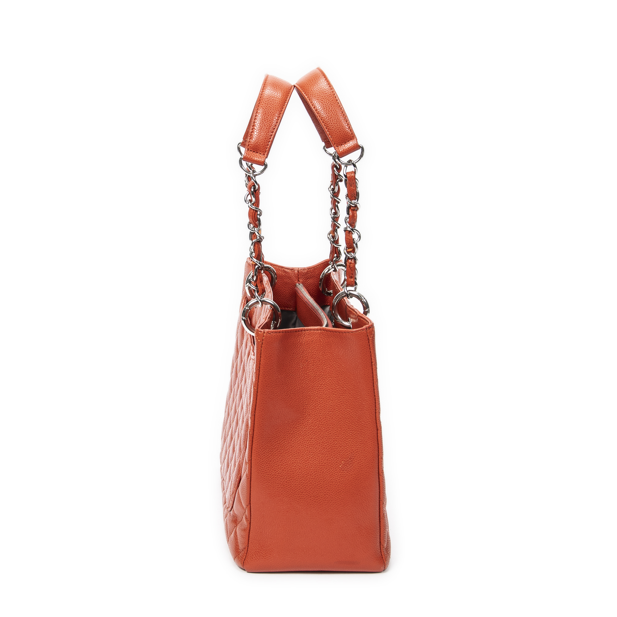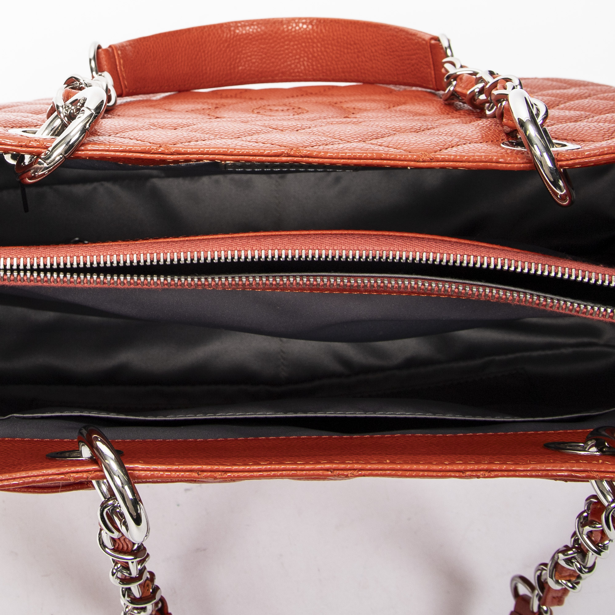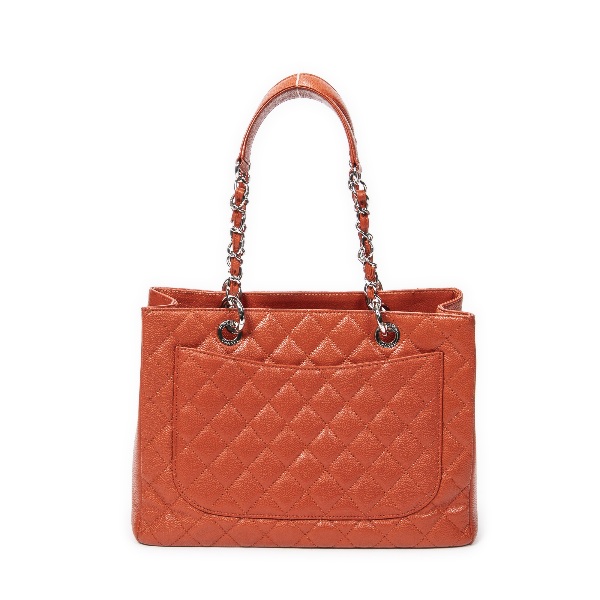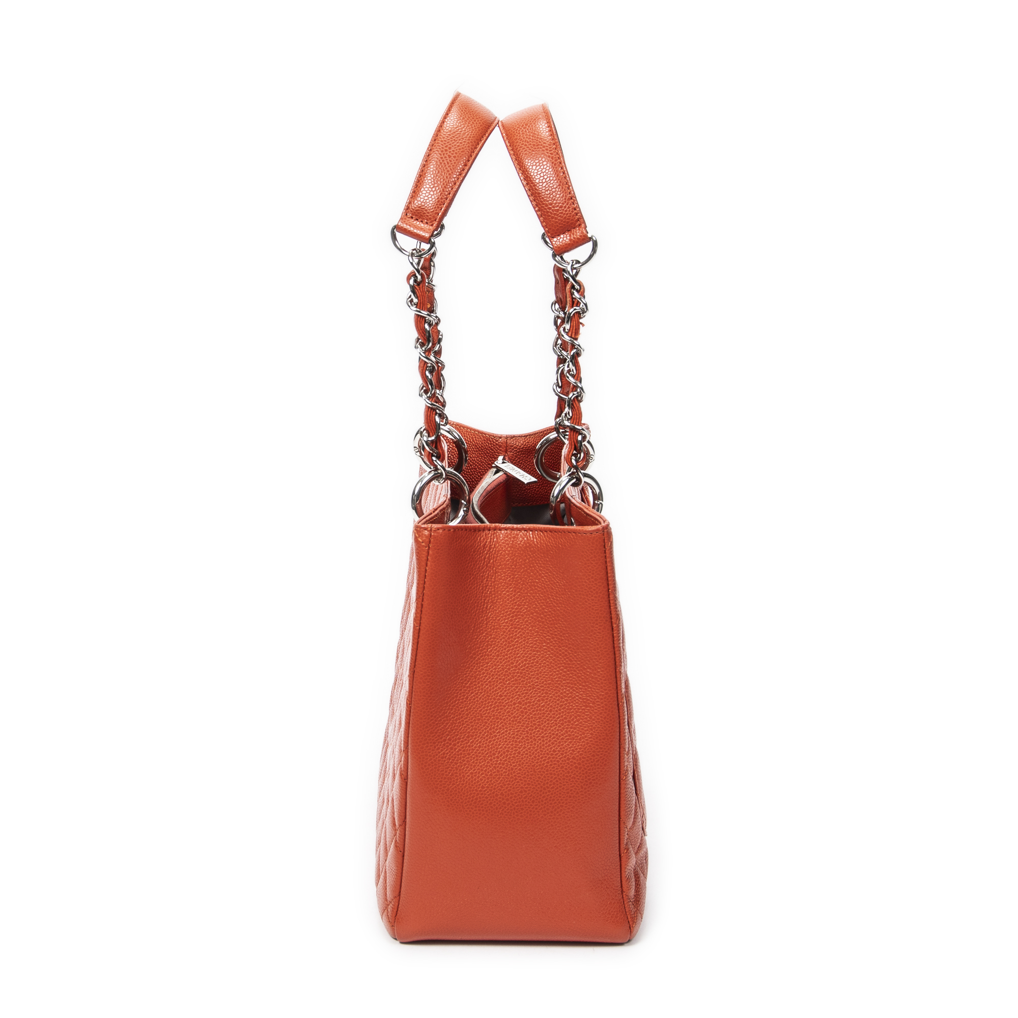 Chanel Sac à bandoulière Grand Shopping Tote en Orange et Argent. Le produit est en Excellent état (A).