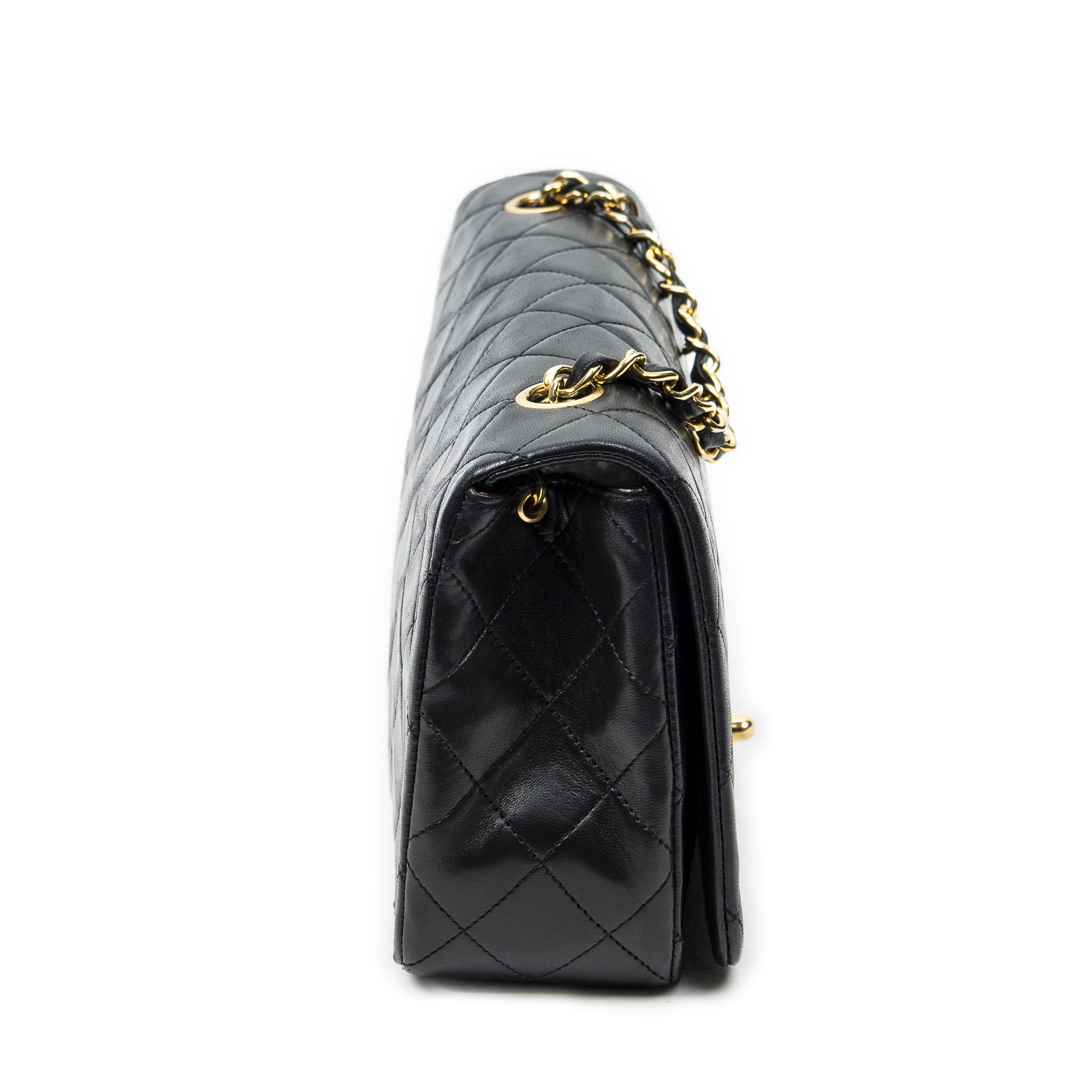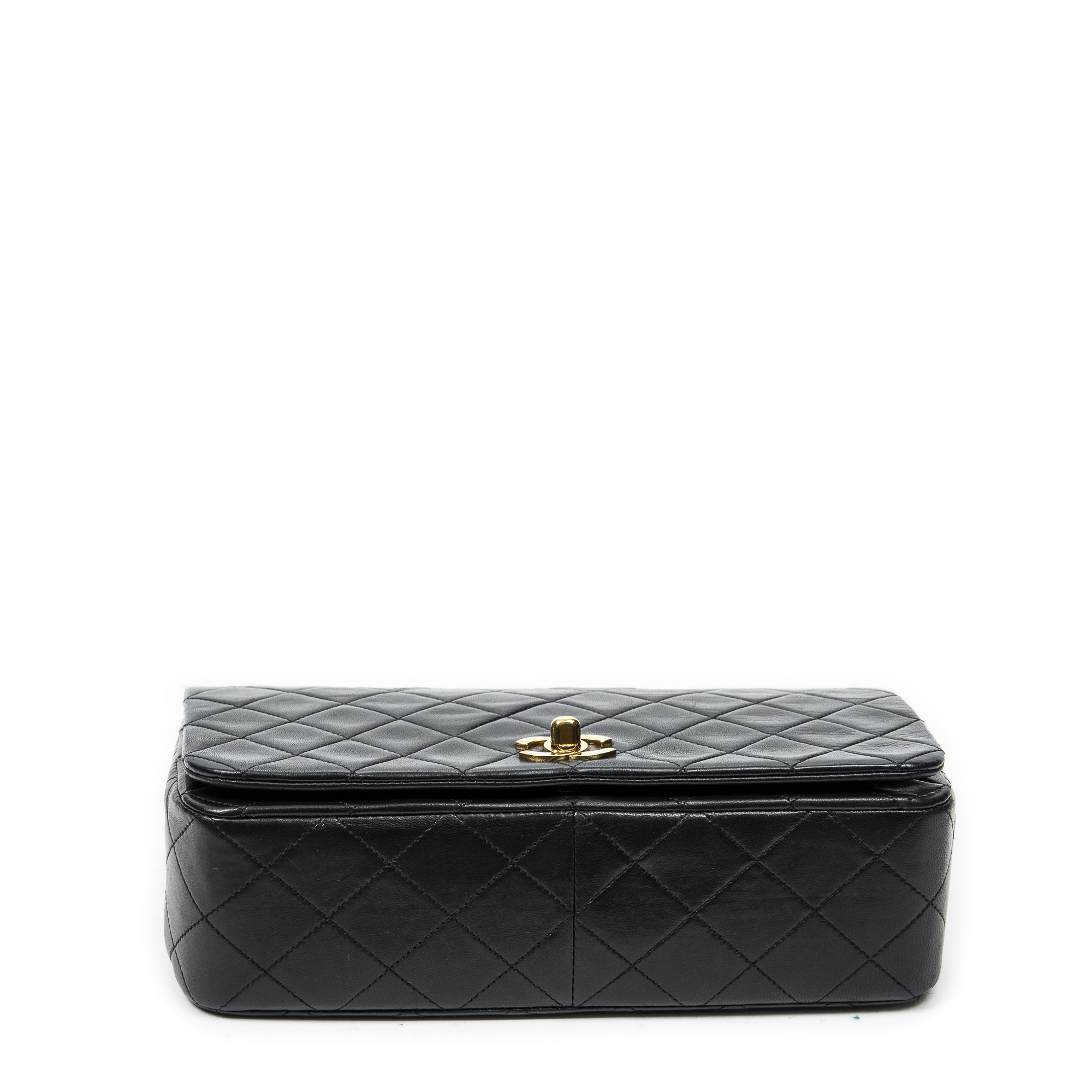 Chanel Sac à bandoulière Mademoiselle Full Flap en Noir et Gold. Le produit est en Excellent état (A).
