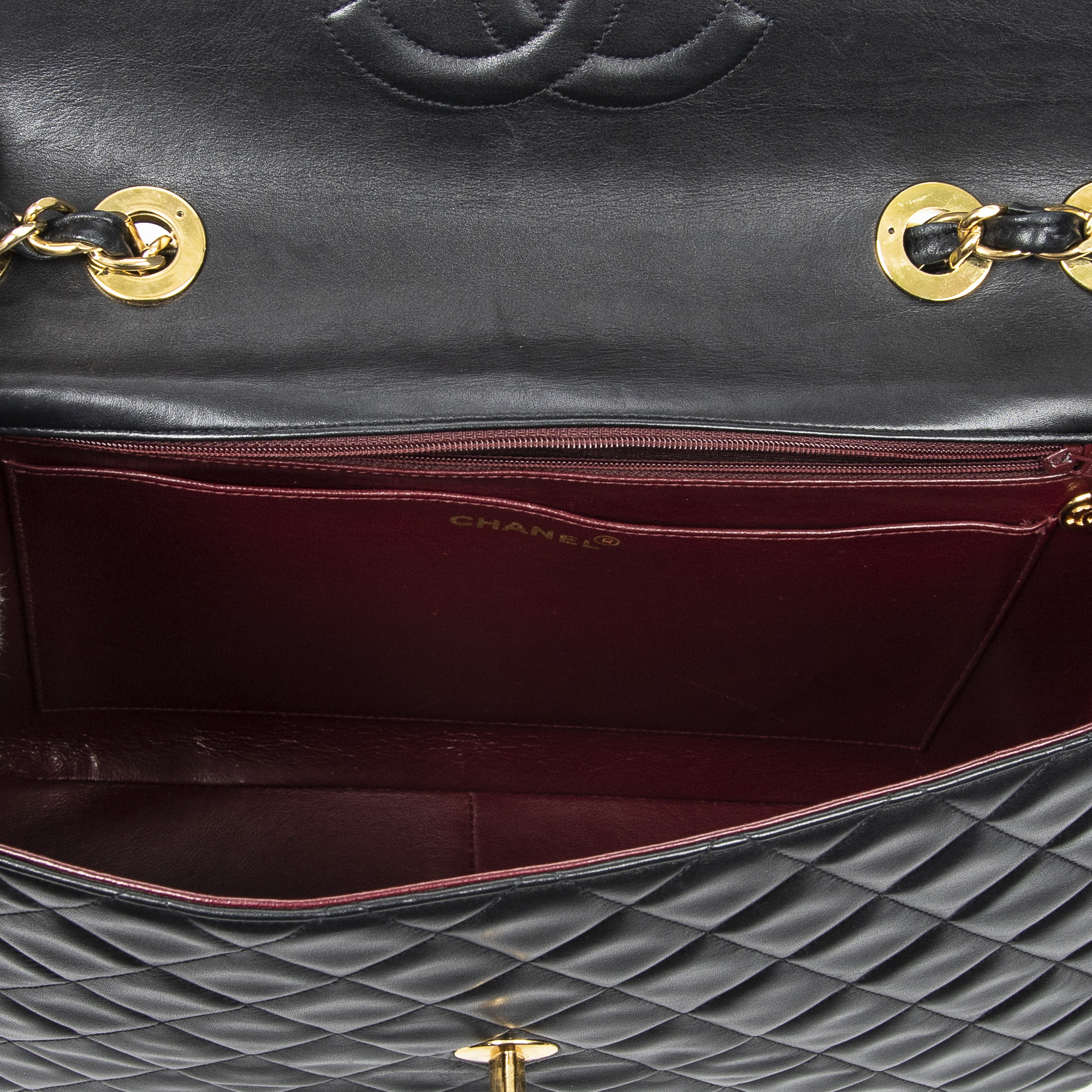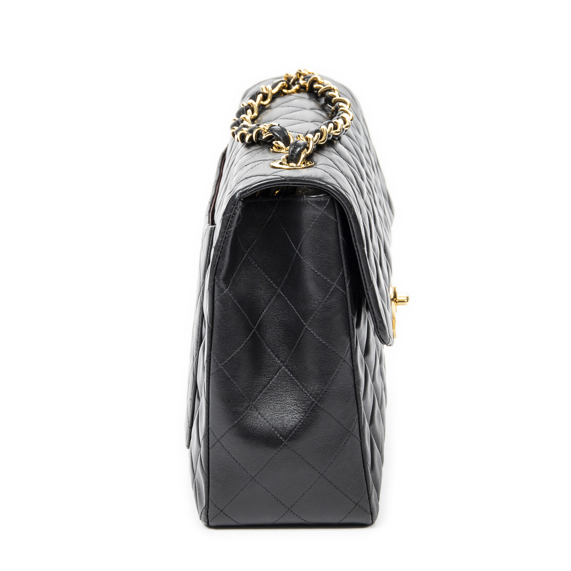 Chanel Sac à bandoulière Maxi Jumbo XL Flap en Noir et Or. Le produit est en Excellent état (A).