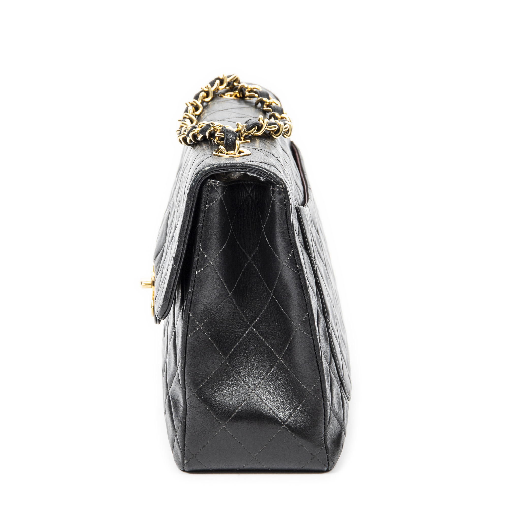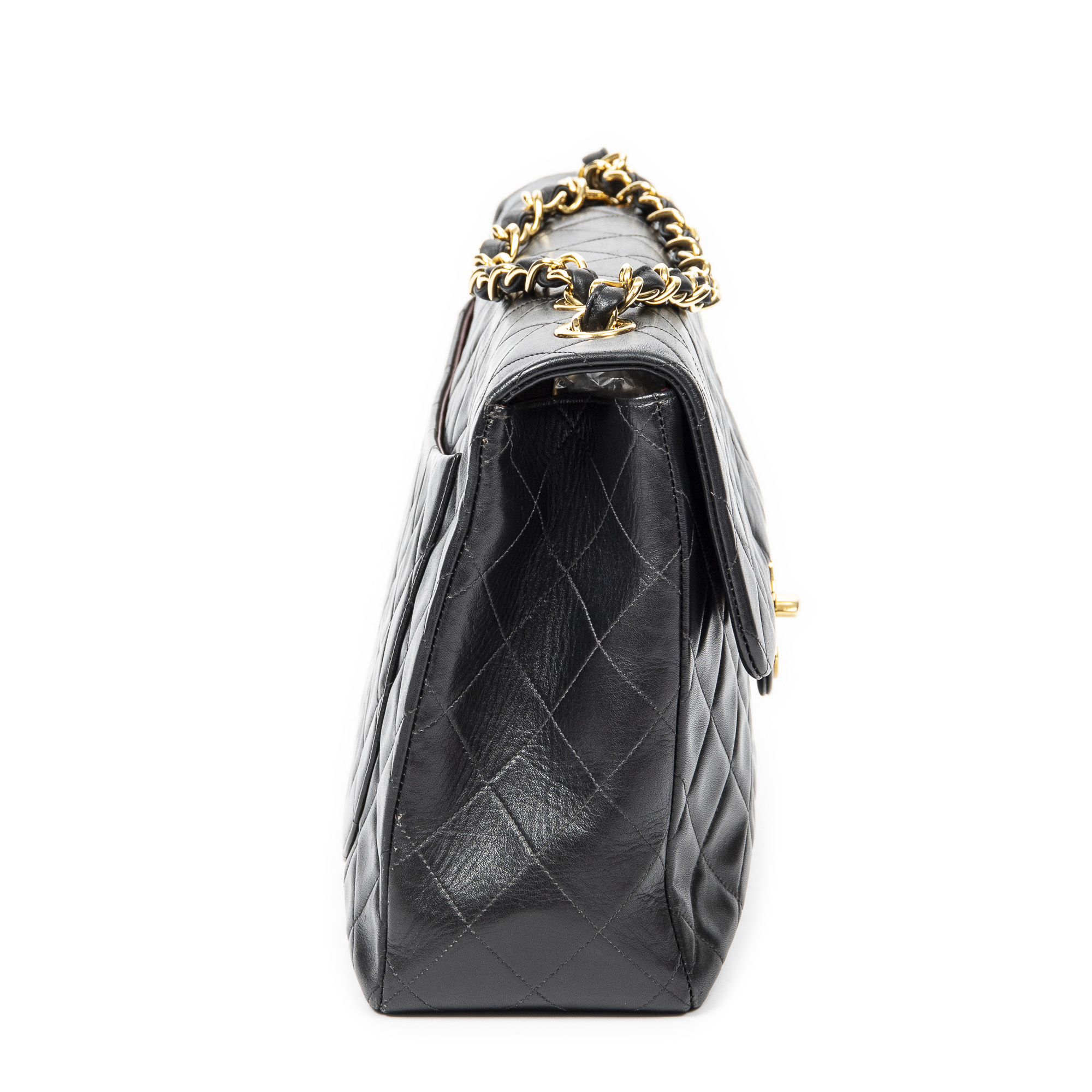 Chanel Sac à bandoulière Maxi Jumbo XL Flap en Noir et Or. Le produit est en Excellent état (A).