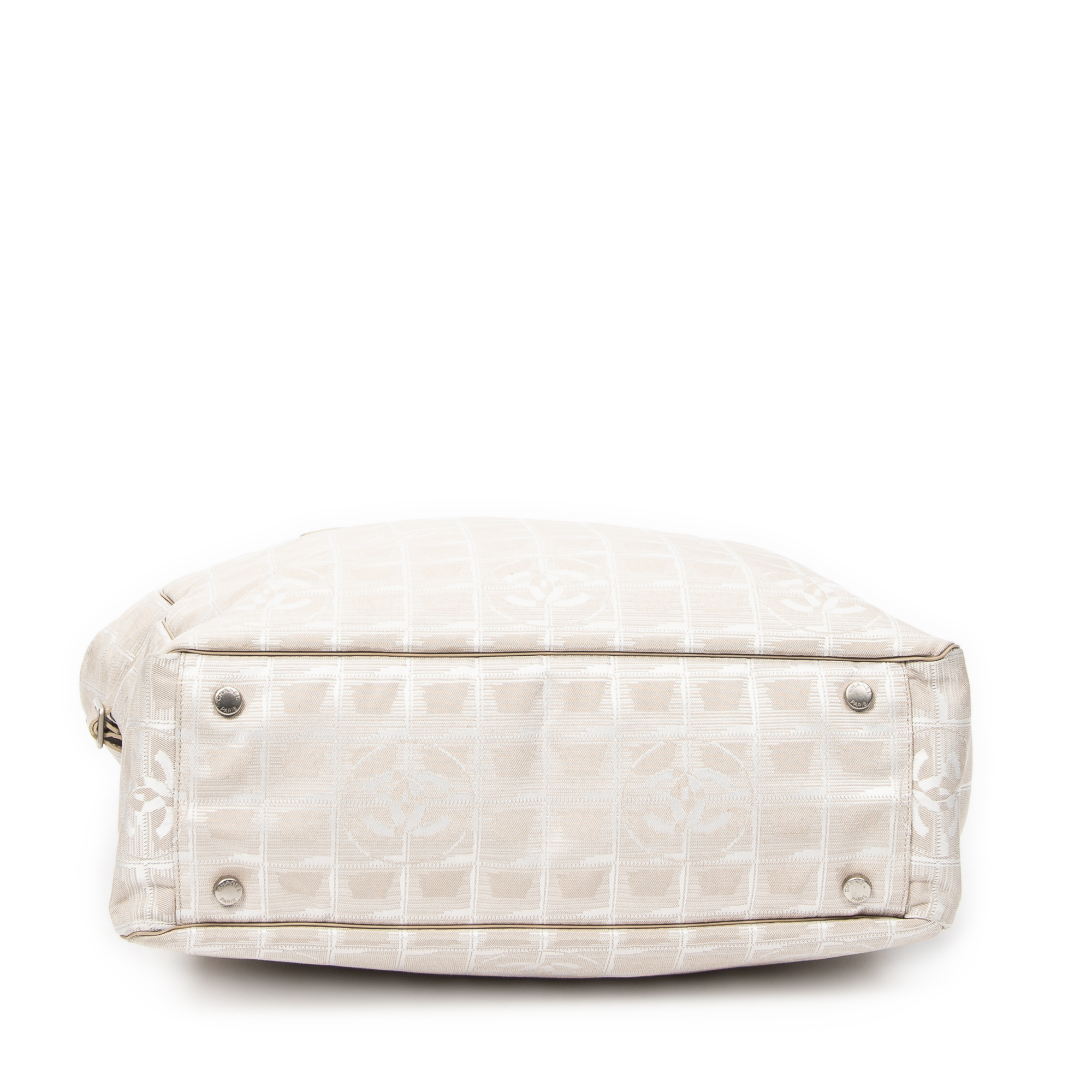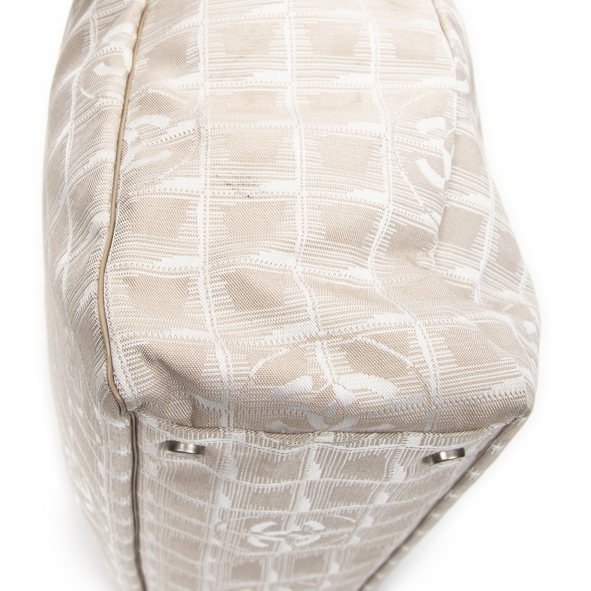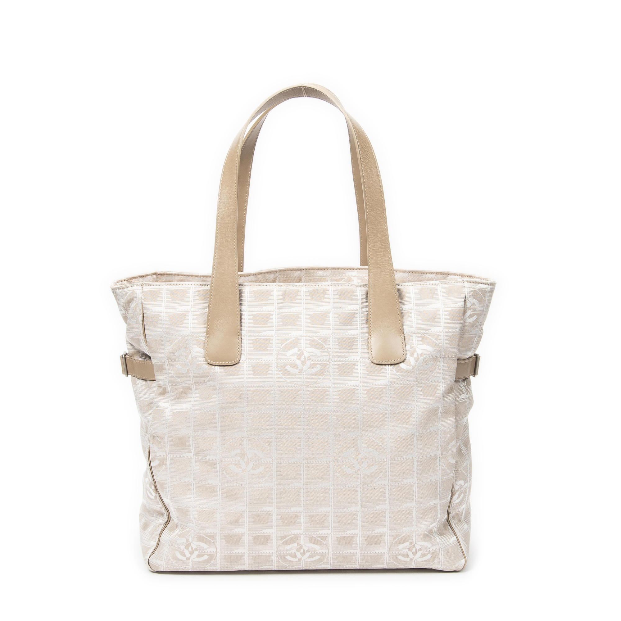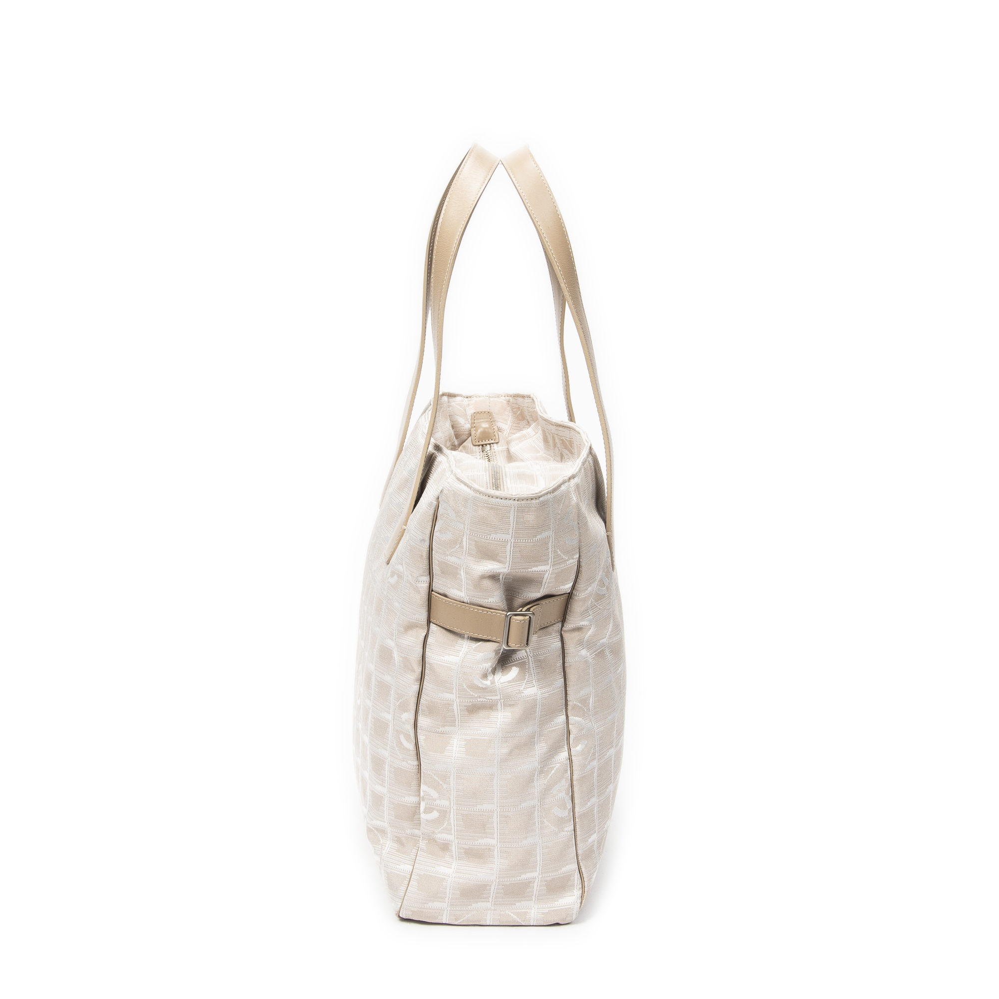Chanel Sac à bandoulière New Travel Line Shopping Tote en Beige et Argent. Le produit est en Excellent état (A).