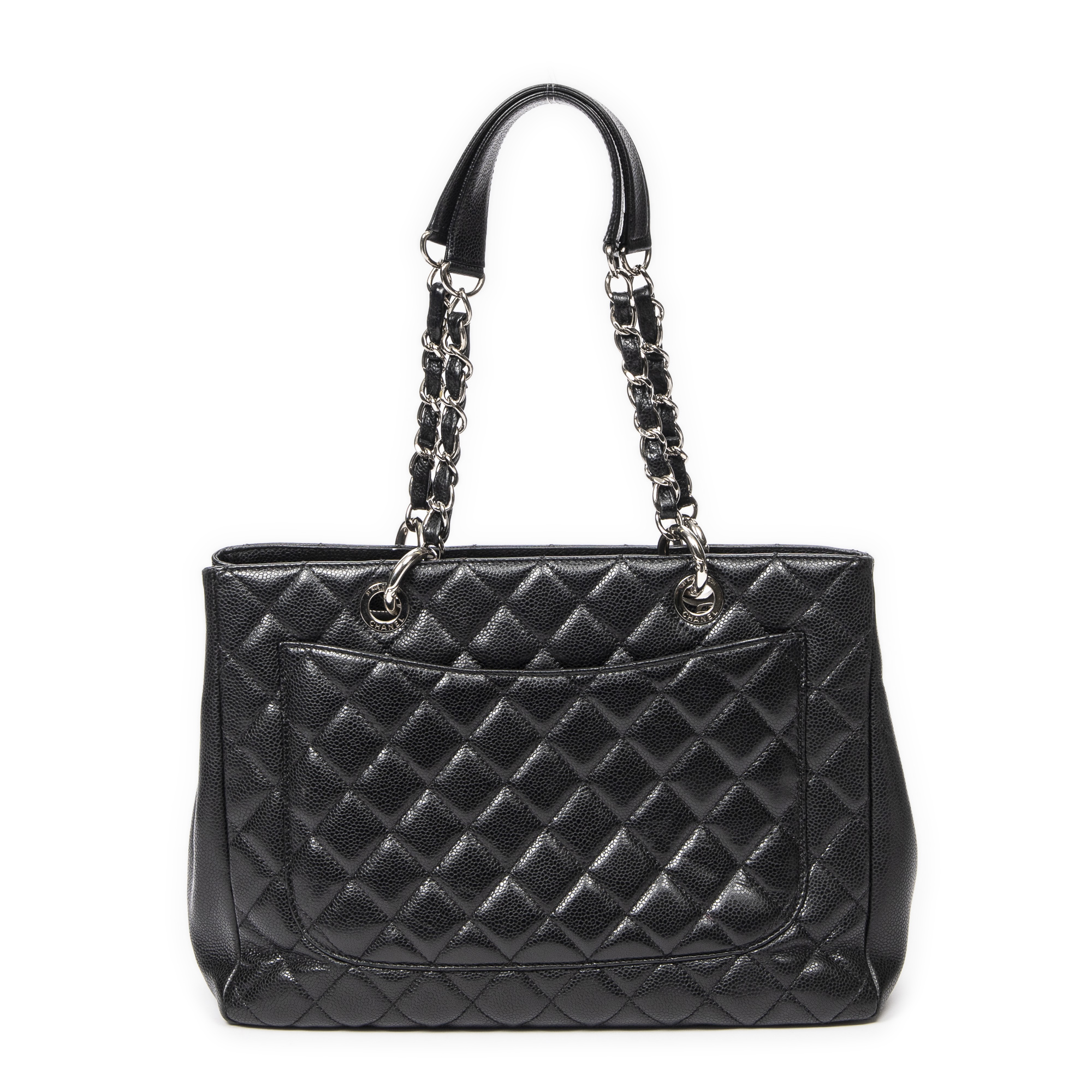 Chanel Sac à bandoulière Timeless Grand Shopping Tote en Noir et Argent. Le produit est en Excellent état (A).