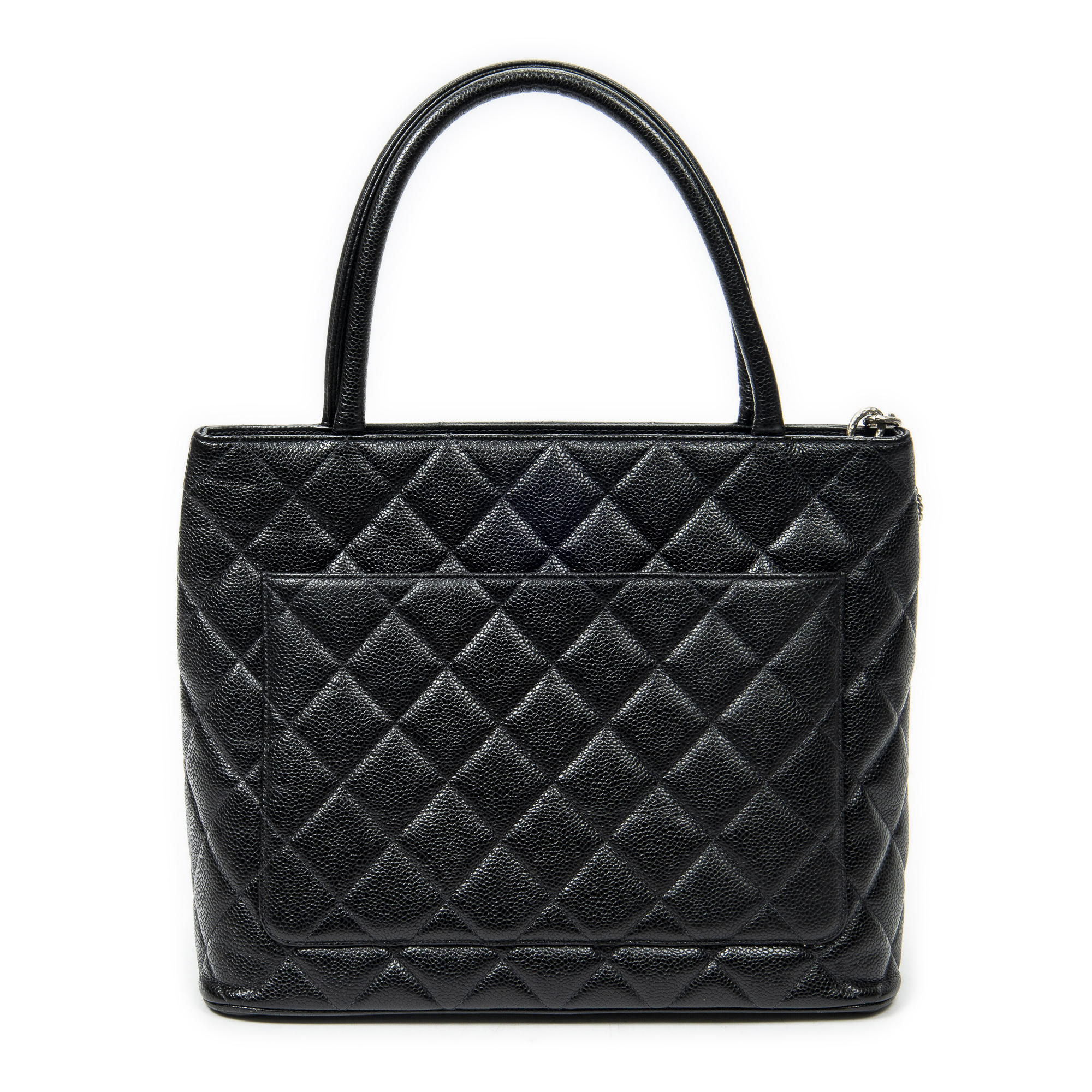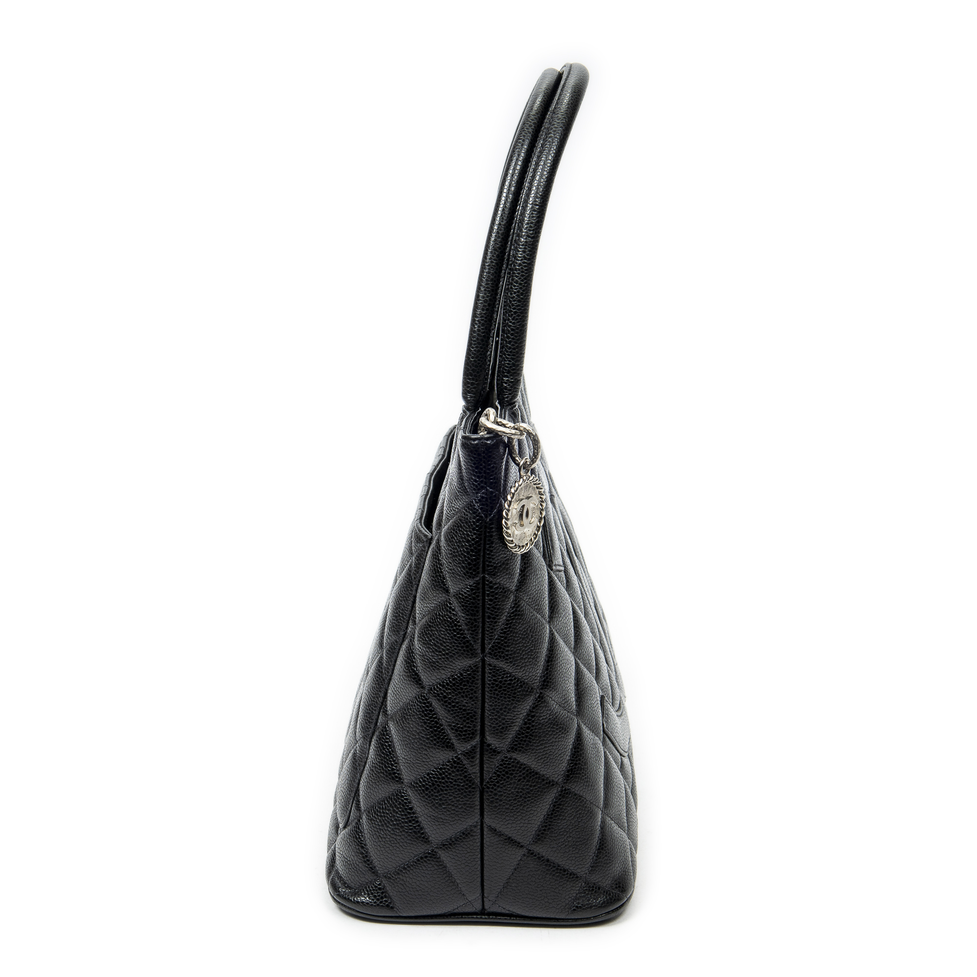 Chanel Sac à bandoulière Timeless Medallion Tote en Black et Argent. Le produit est en Excellent état (A).