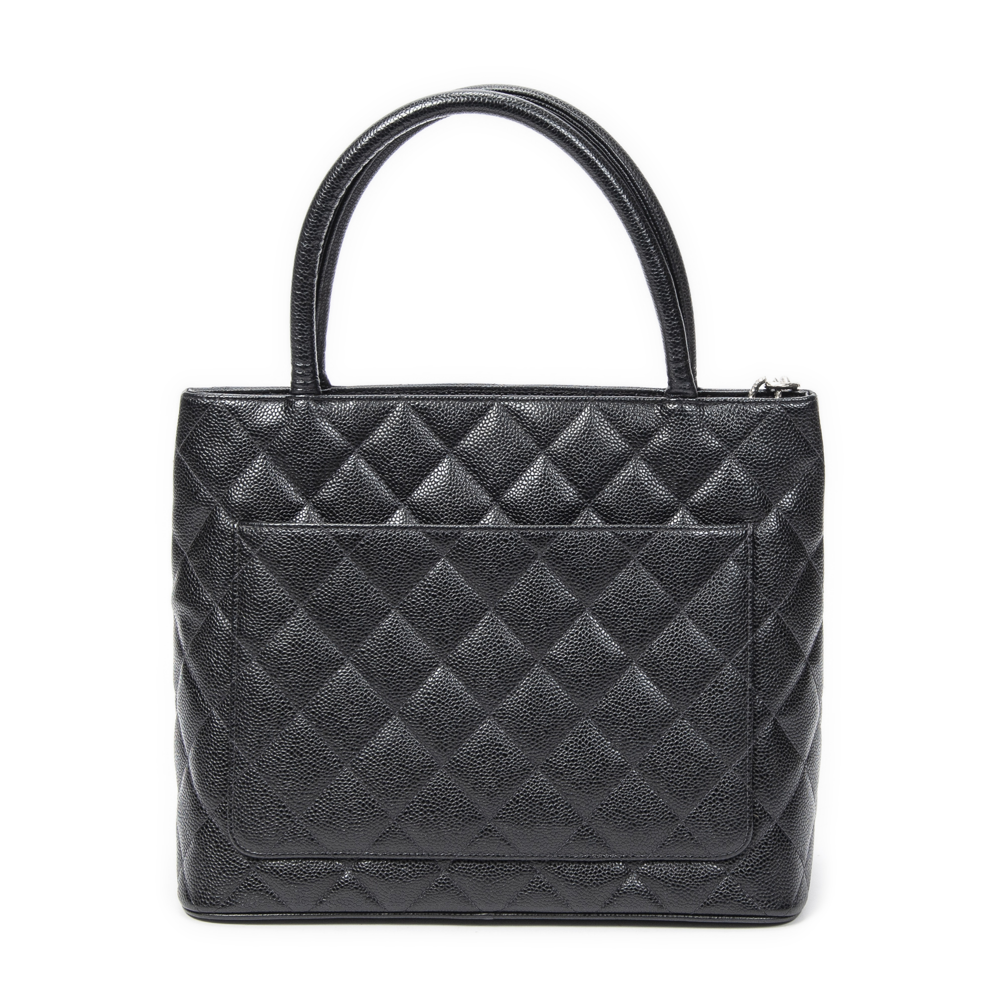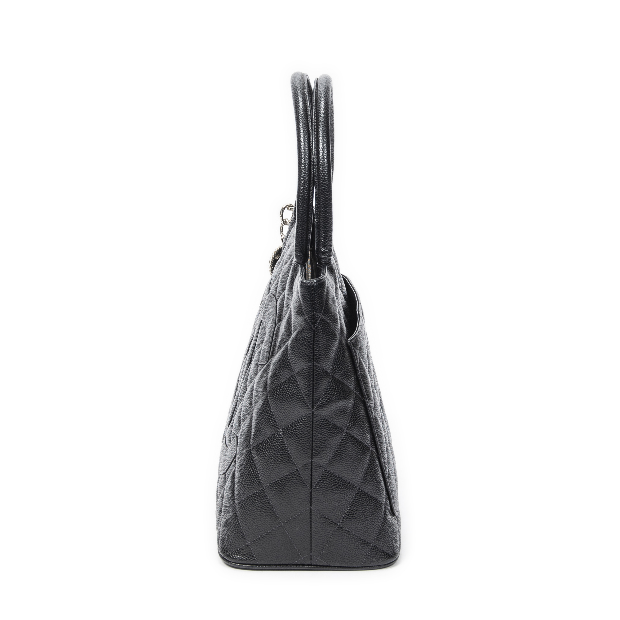 Chanel Sac à bandoulière Timeless Medallion Tote en Black et Argent. Le produit est en Parfait état (AA).