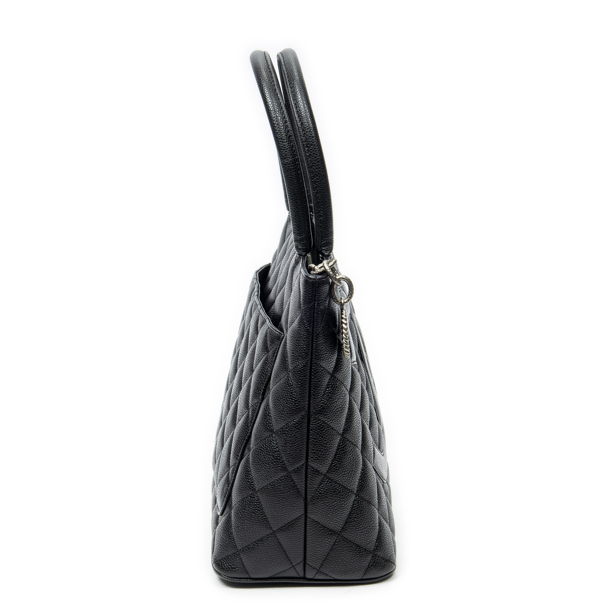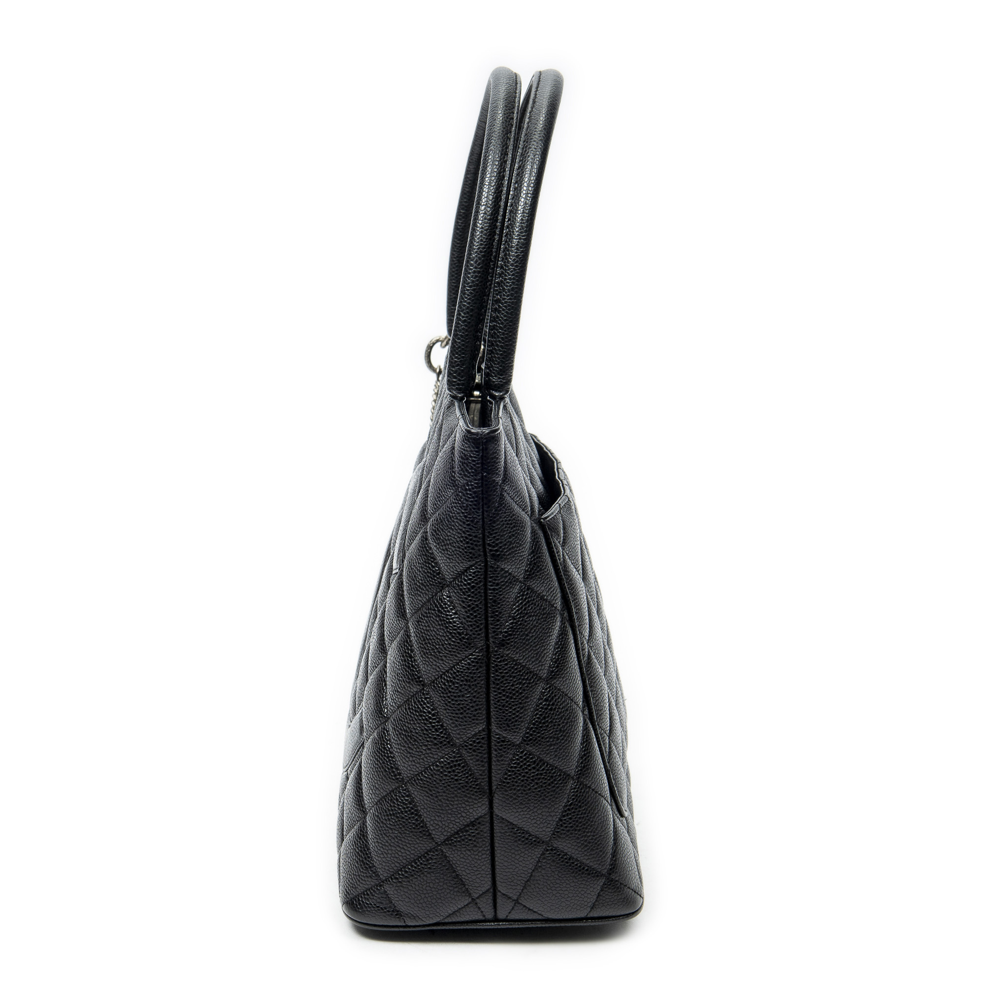 Chanel Sac à bandoulière Timeless Medallion Tote en Black et Argent. Le produit est en Excellent état (A).
