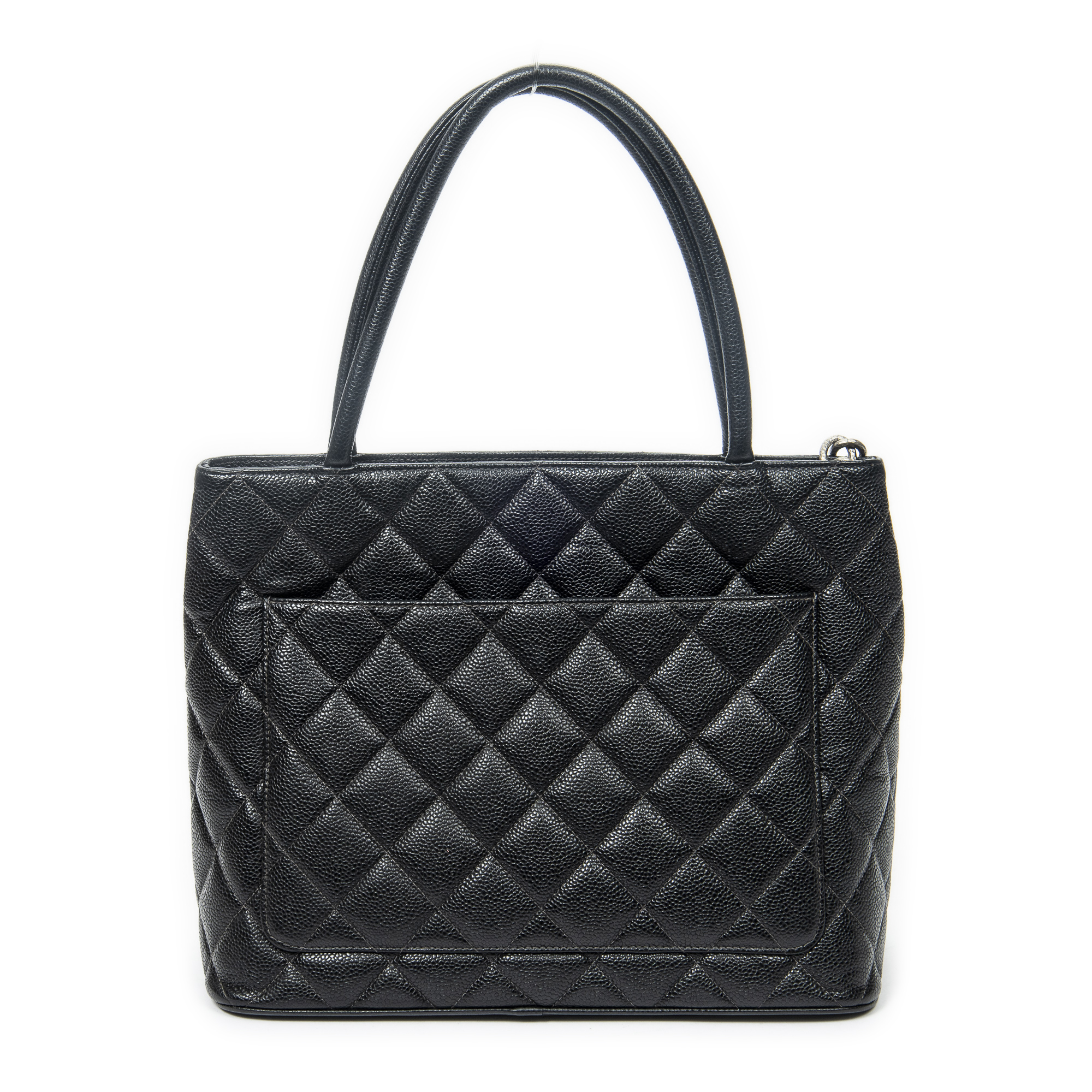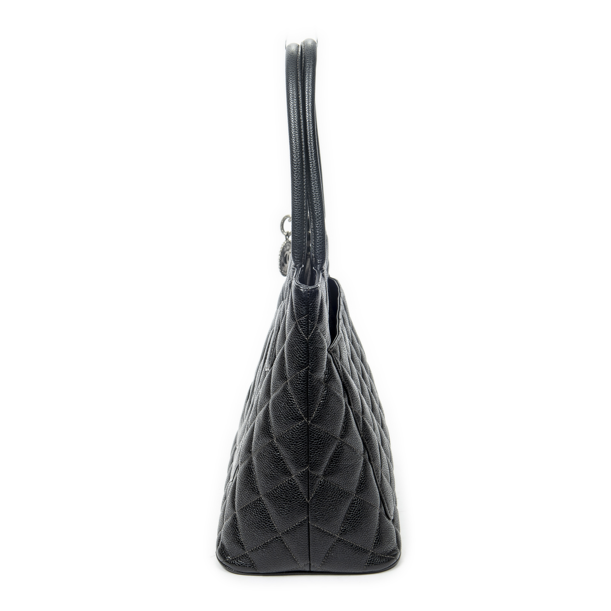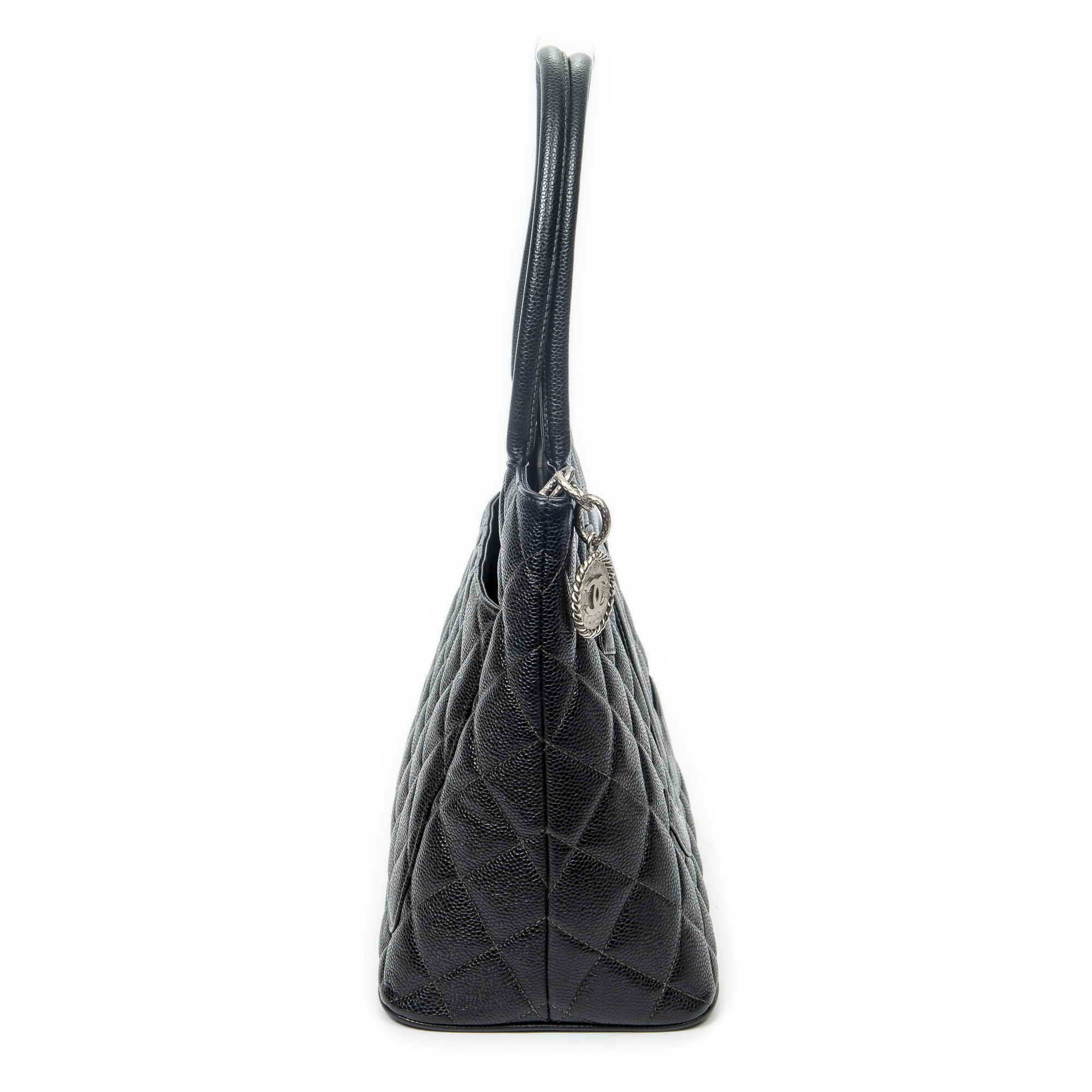 Chanel Sac à bandoulière Timeless Medallion Tote en Black et Argent. Le produit est en Excellent état (A).