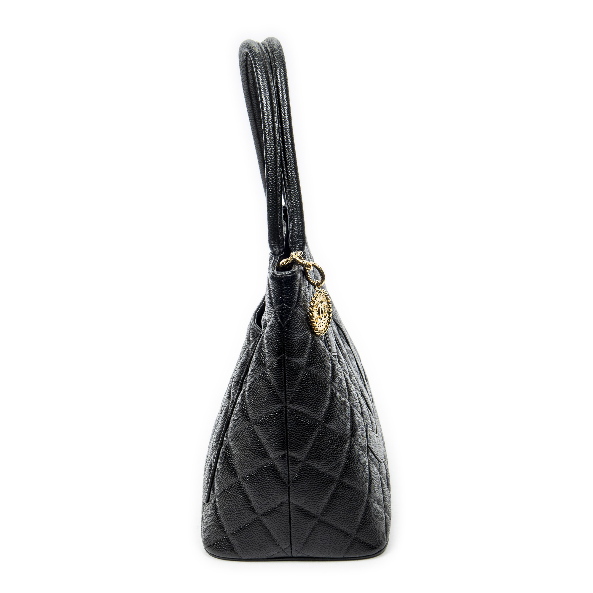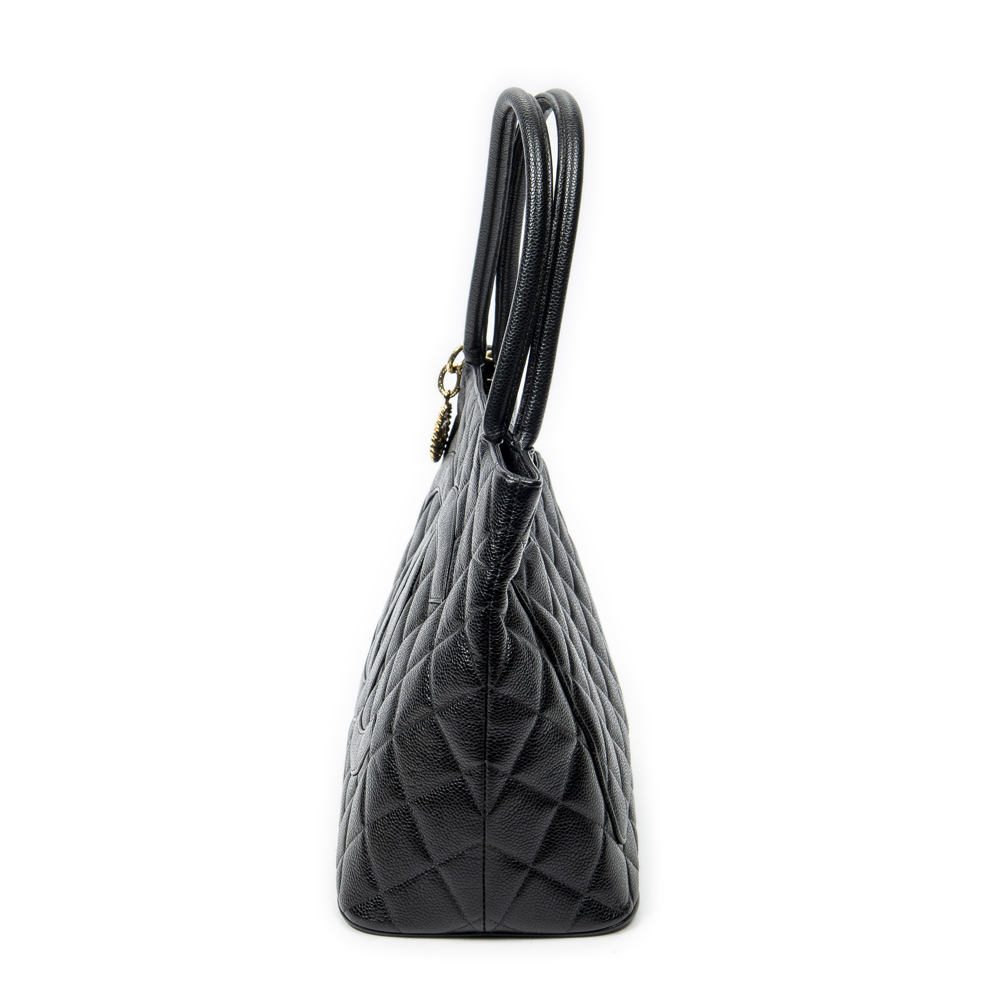 Chanel Sac à bandoulière Timeless Medallion Tote en Noir et Gold. Le produit est en Excellent état (A).