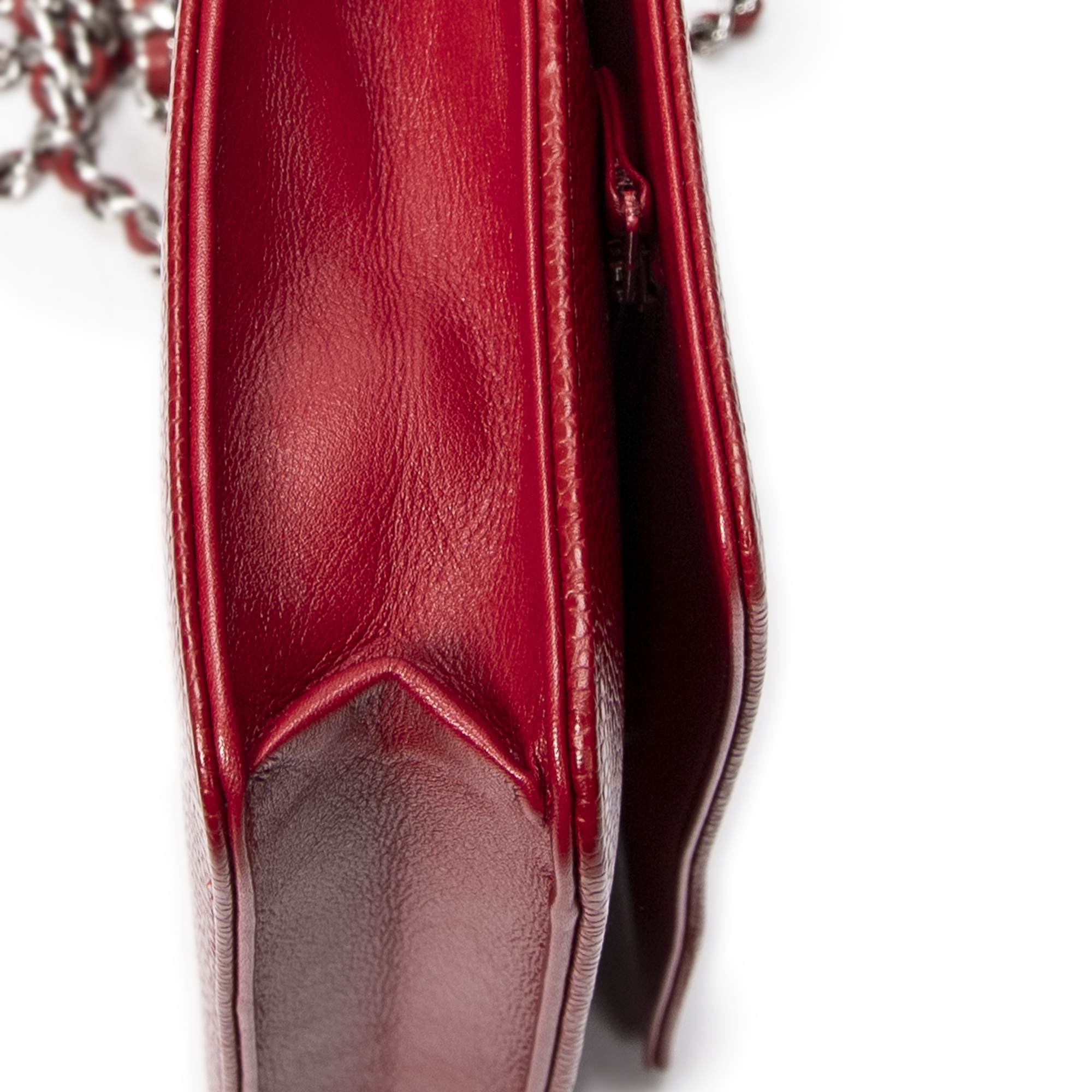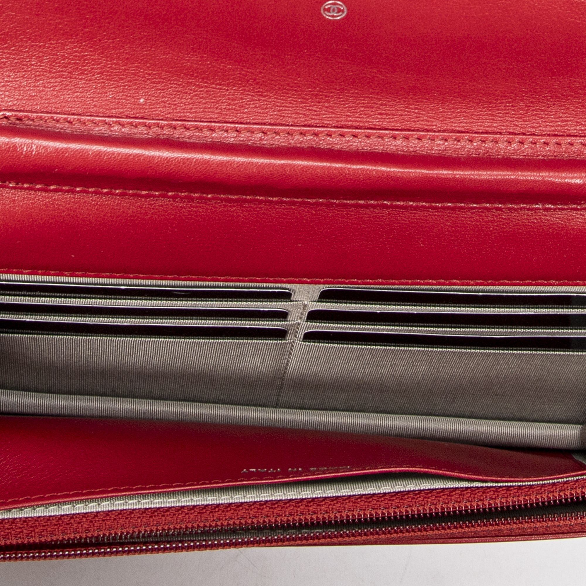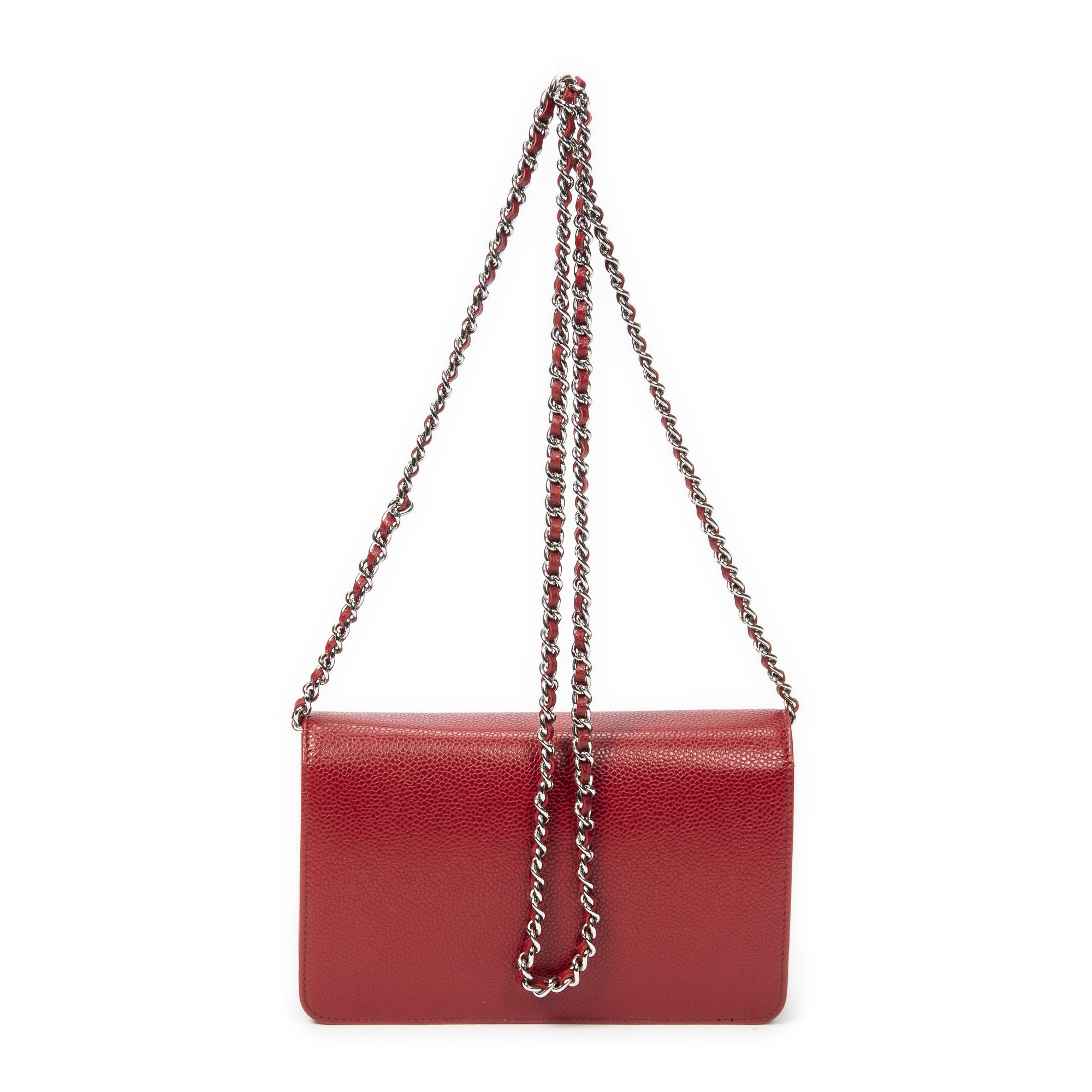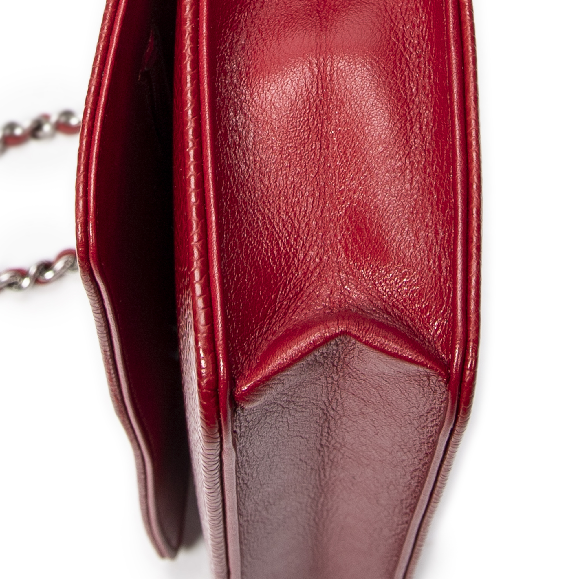 Chanel Sac à bandoulière Timeless Wallet on Chain en Rouge et Argent. Le produit est en Parfait état (AA).
