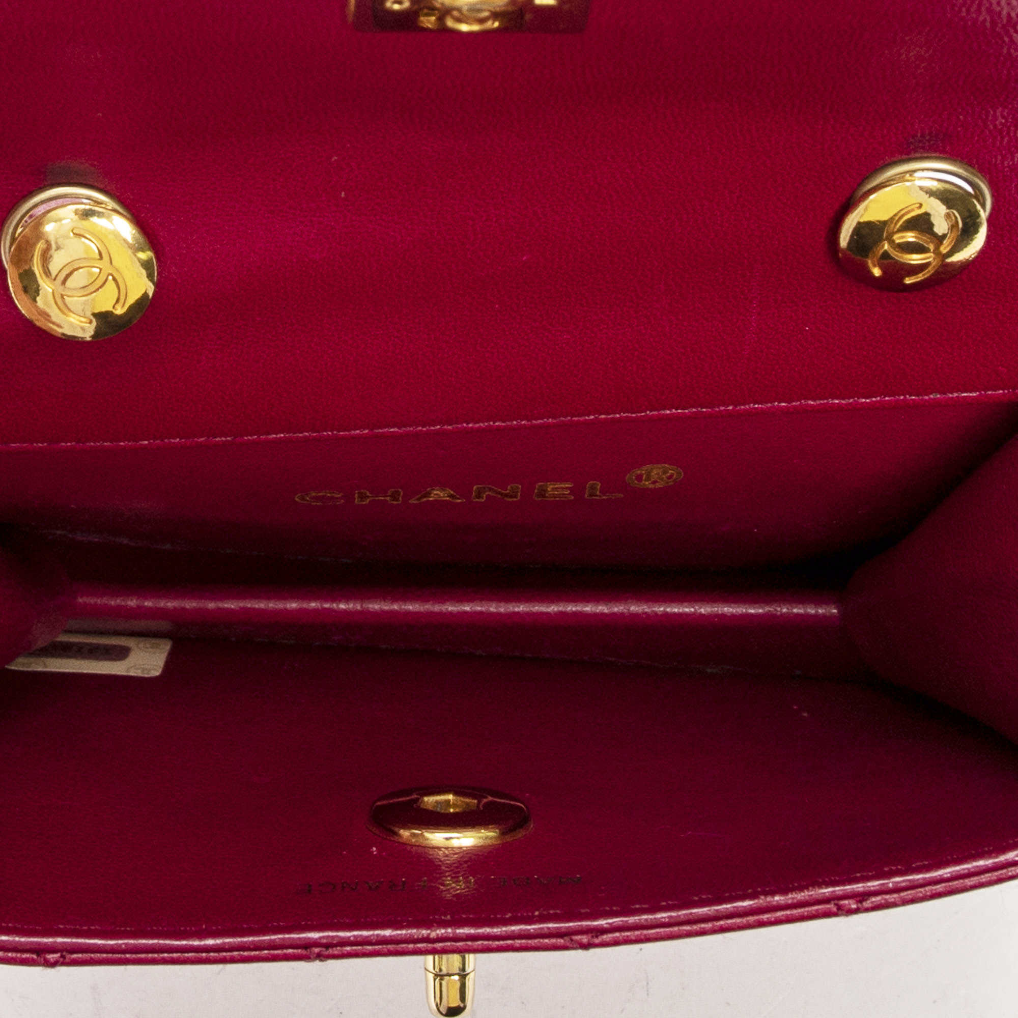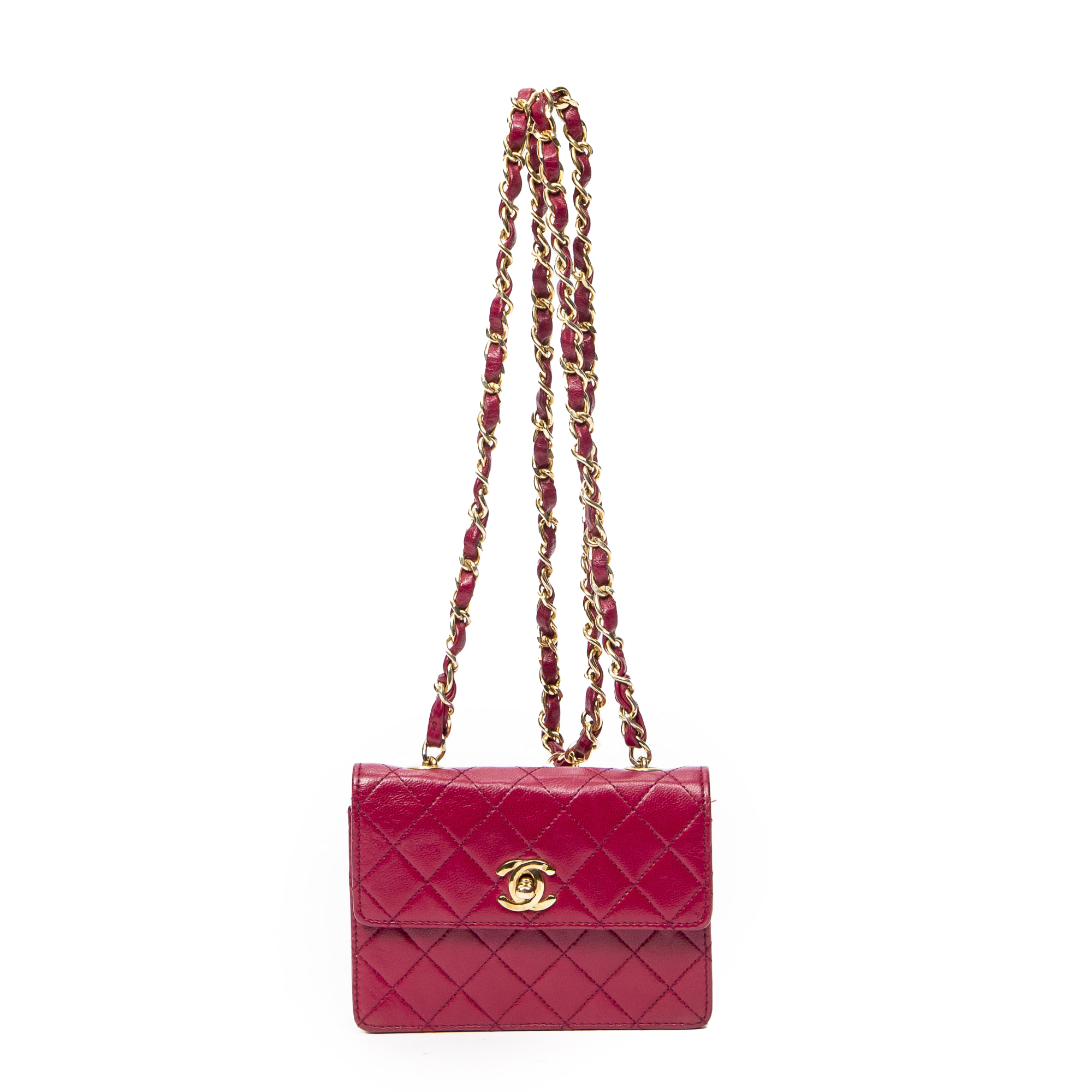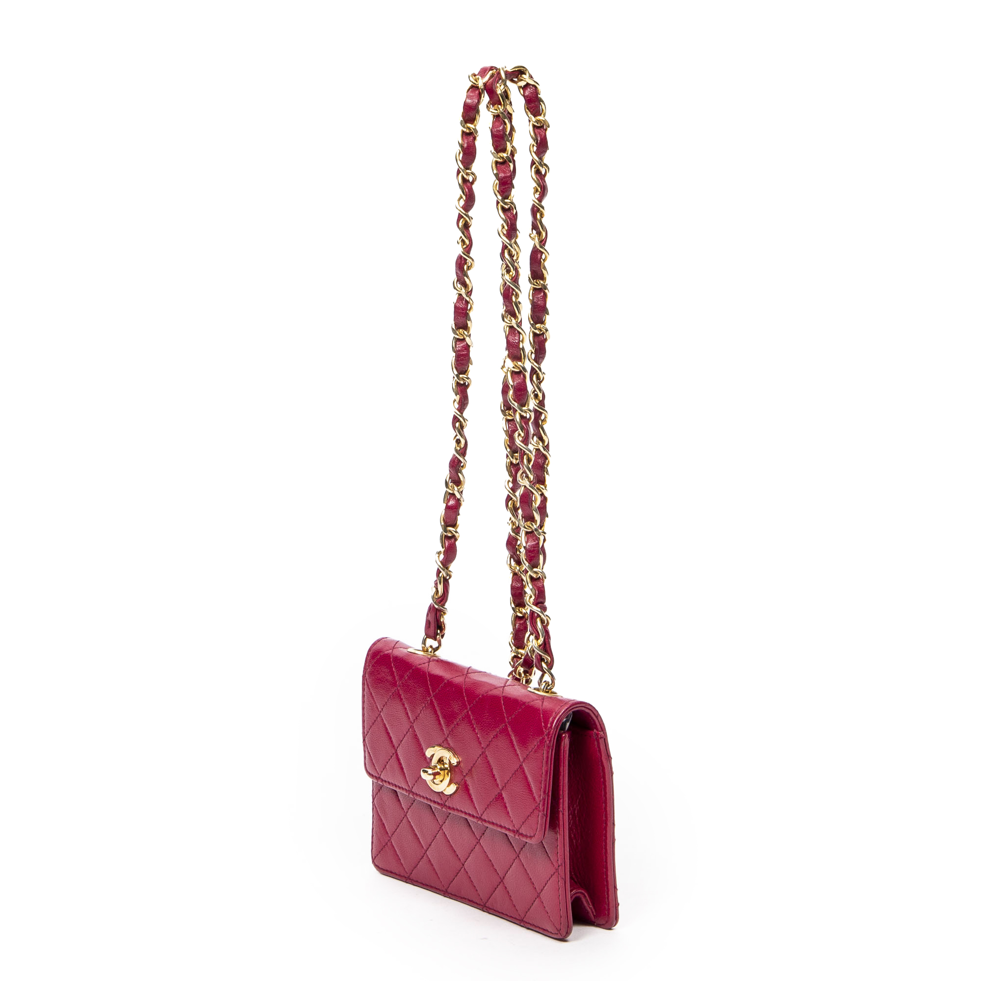 Chanel Sac à bandoulière Vintage Micro CC Flap en Rouge et Or. Le produit est en Excellent état (A).
