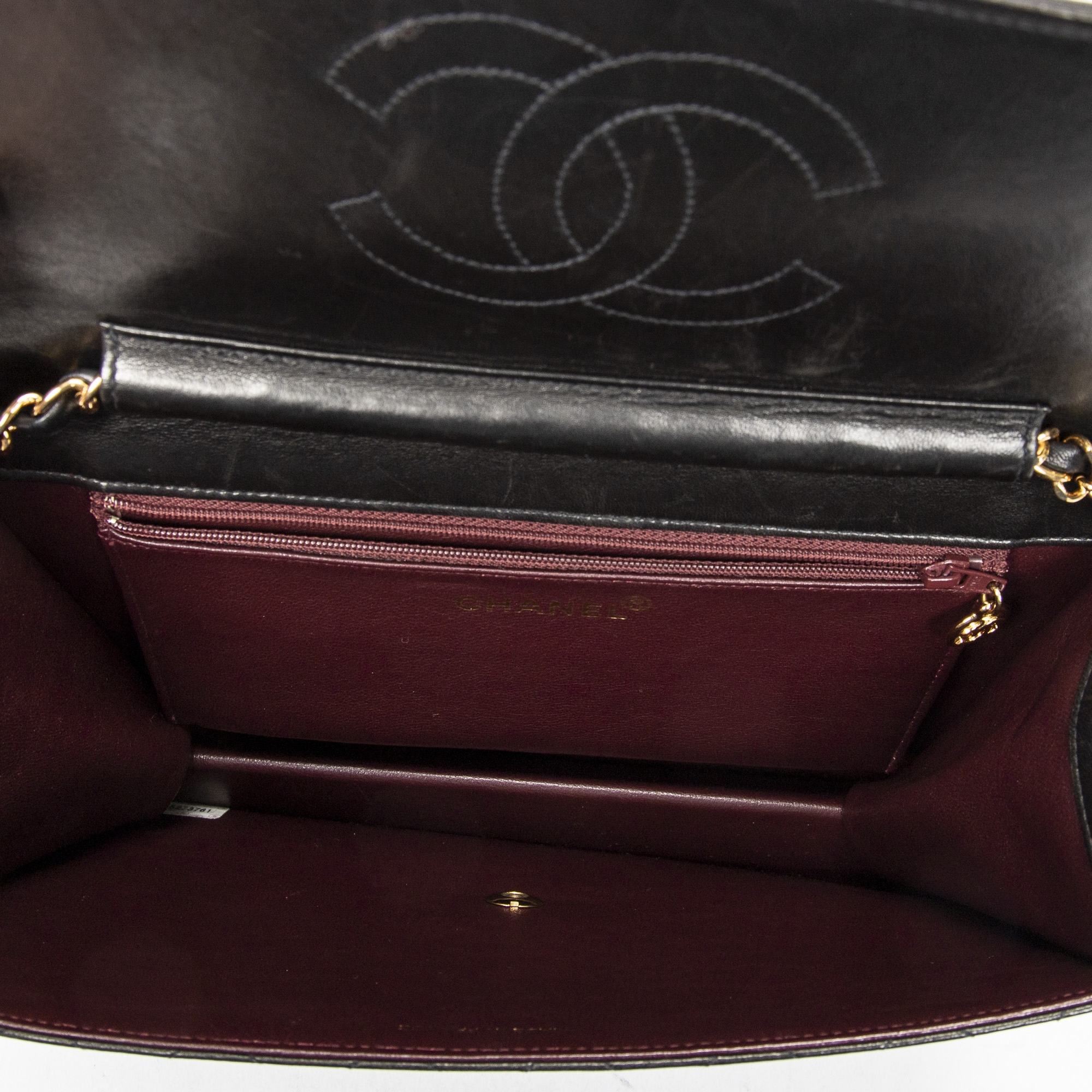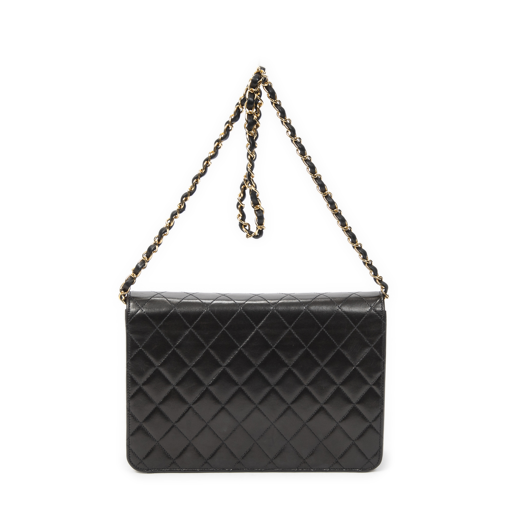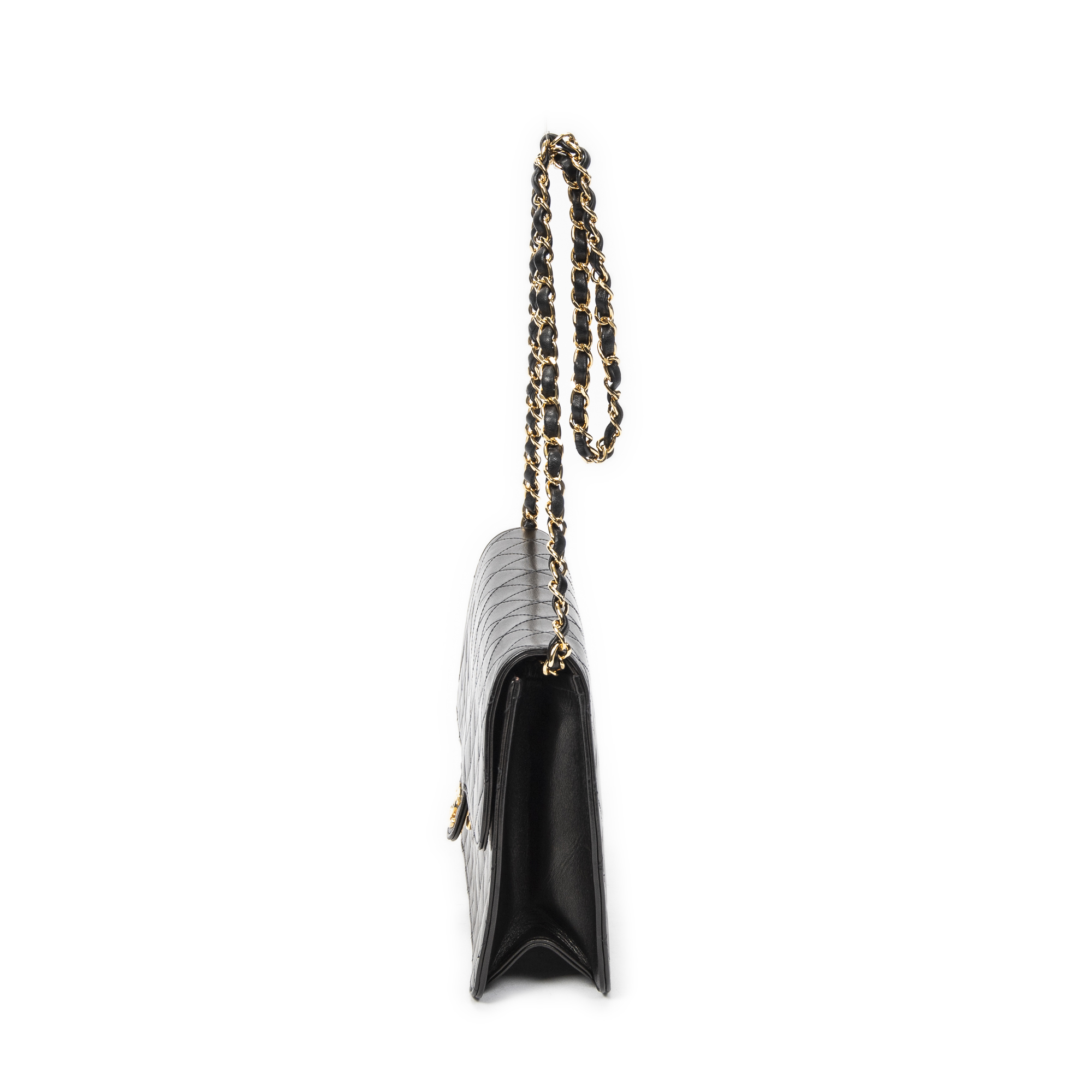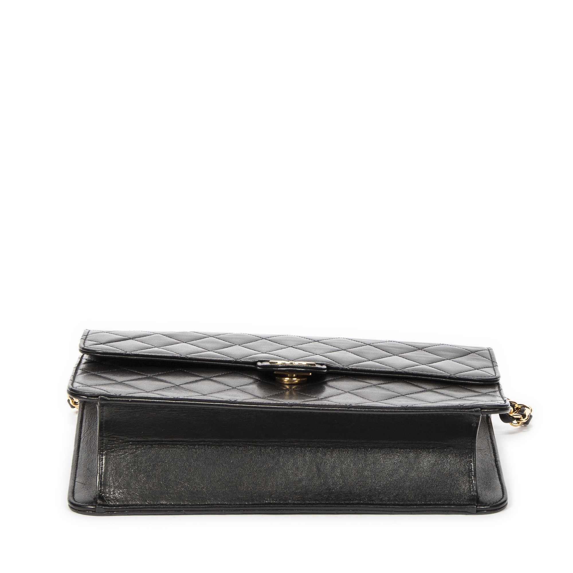 Chanel Sac à bandoulière Vintage Push Lock Straight Flap en Black et Gold. Le produit est en Excellent état (A).