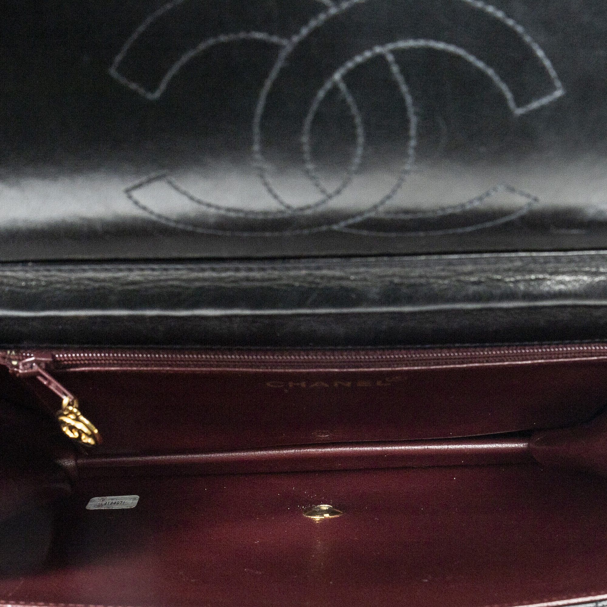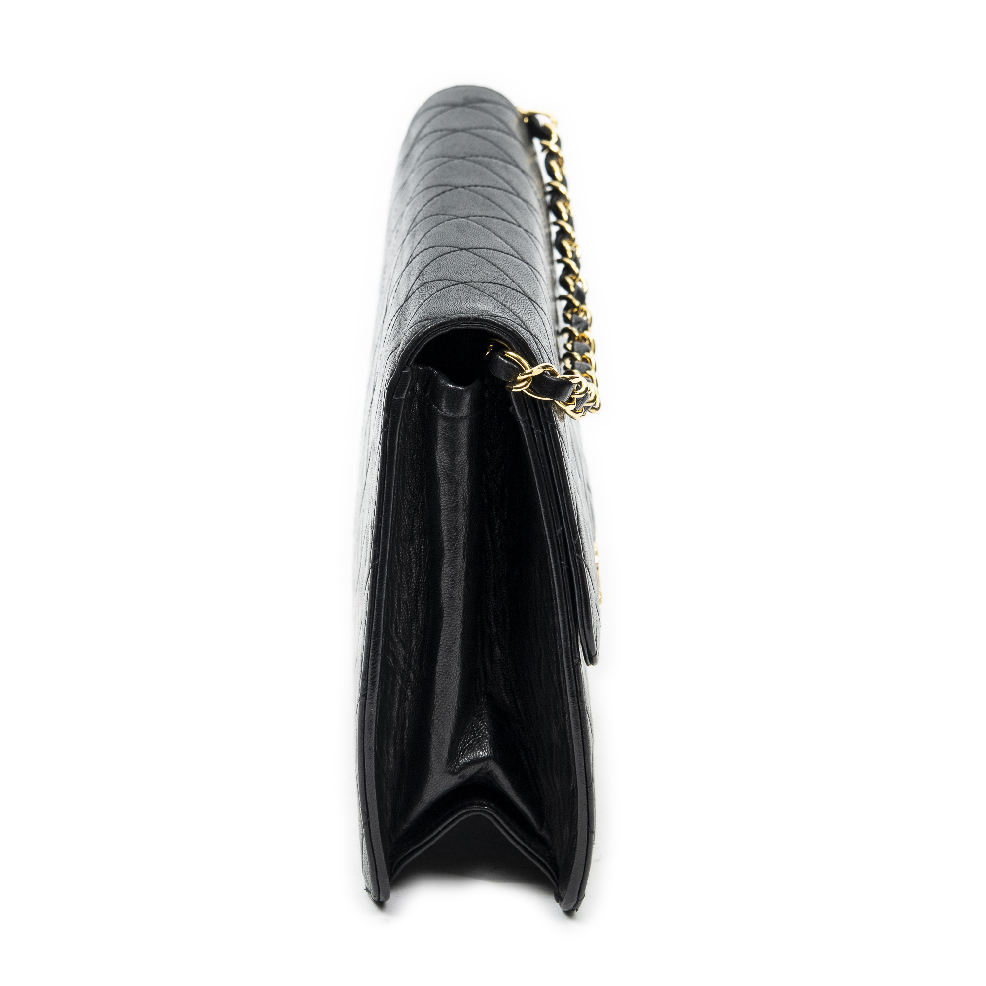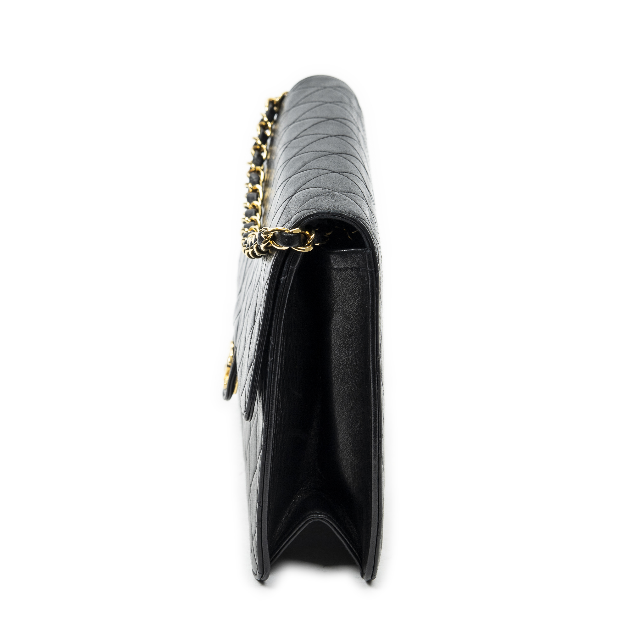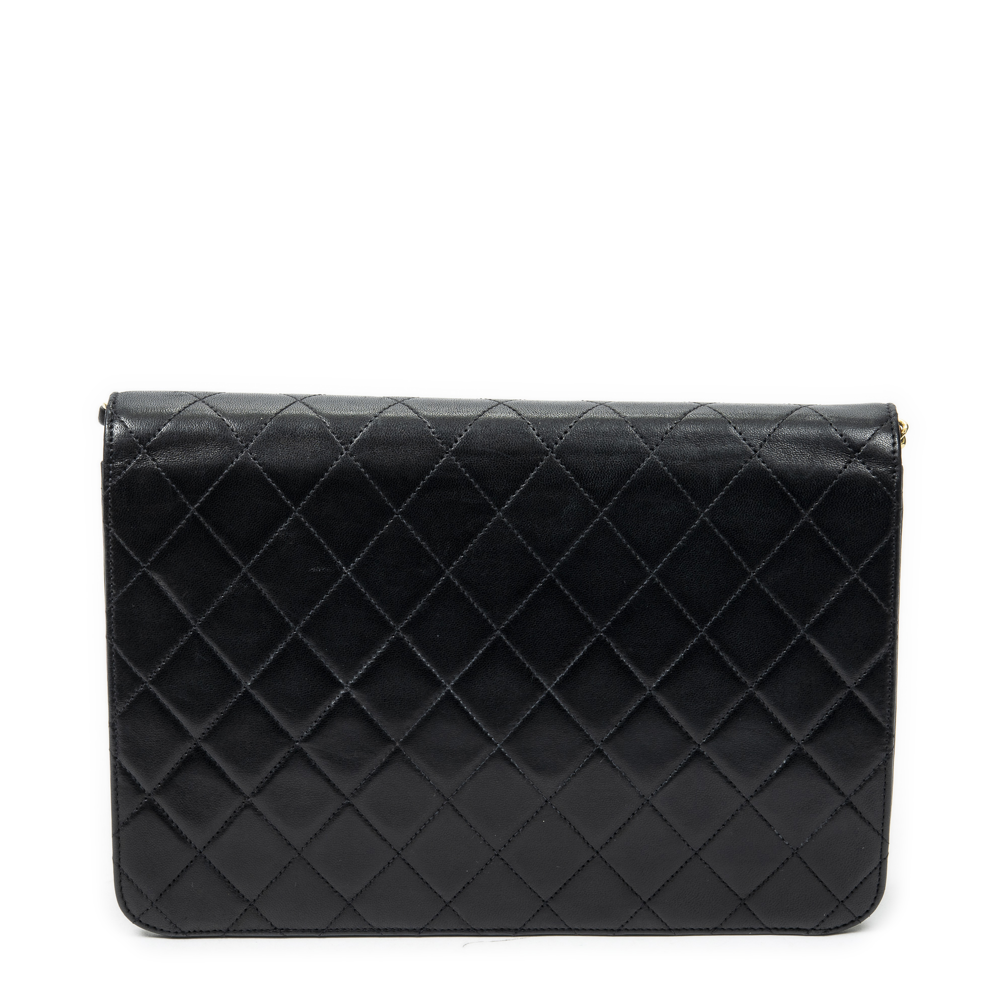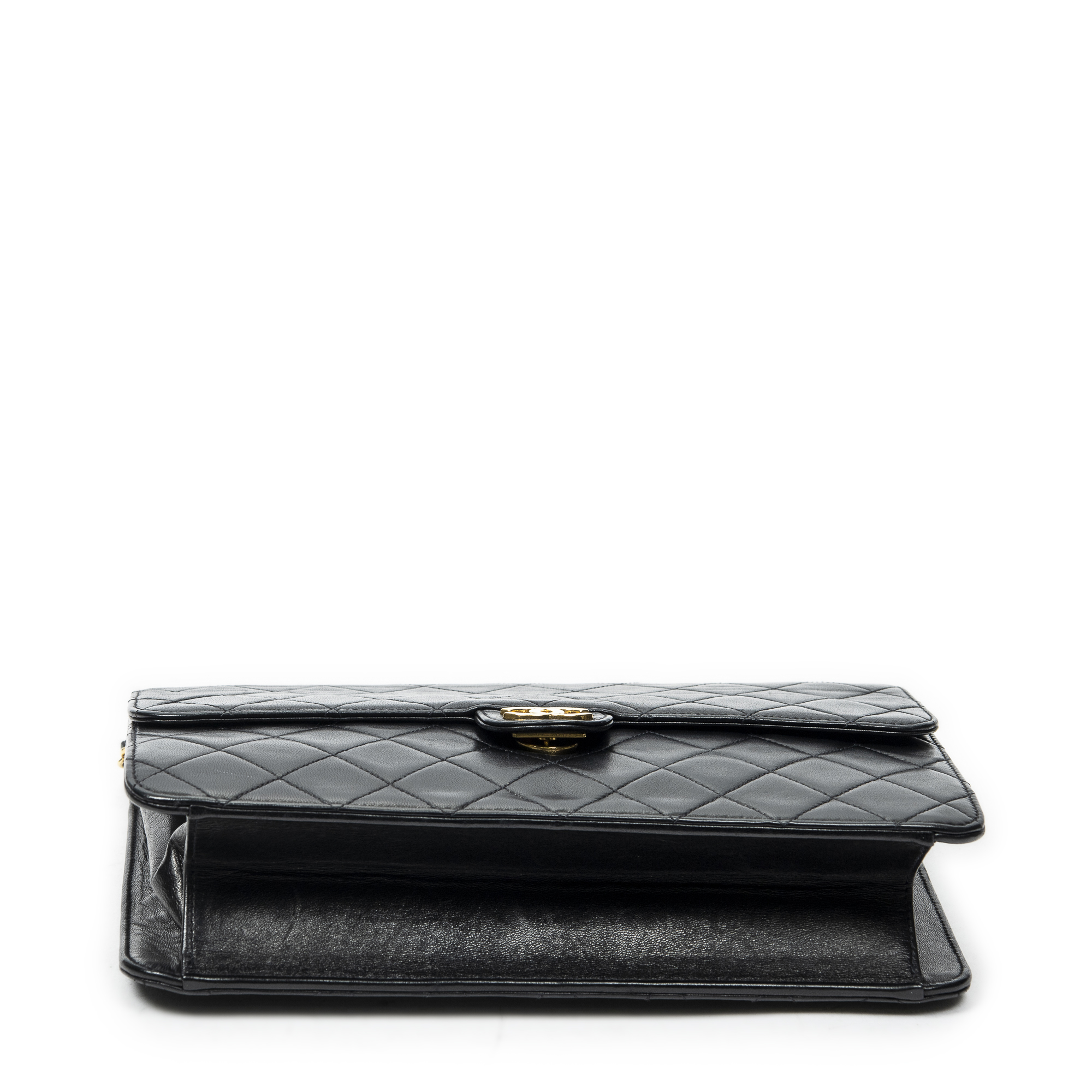 Chanel Sac à bandoulière Vintage Push Lock Straight Flap en Black et Gold. Le produit est en Excellent état (A).