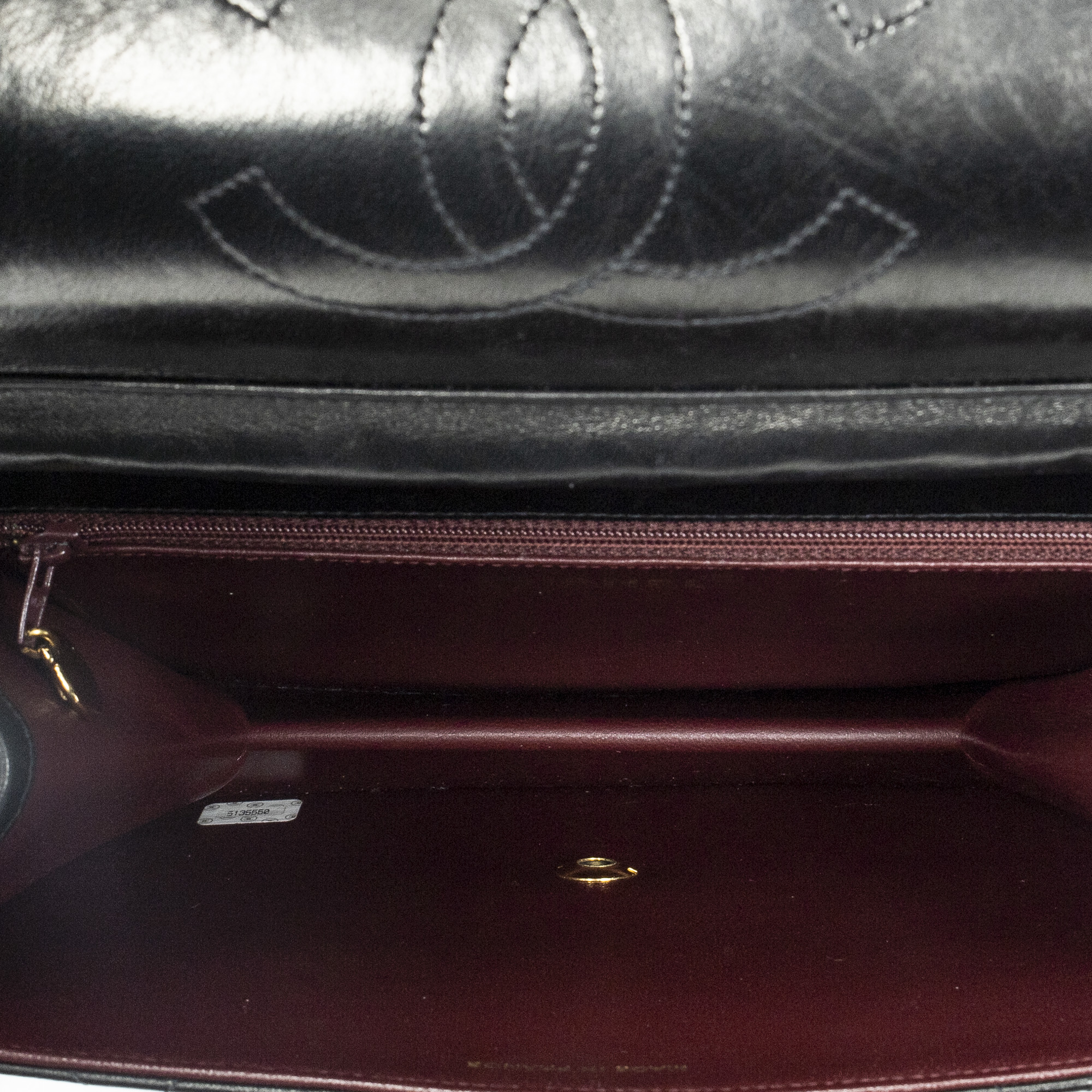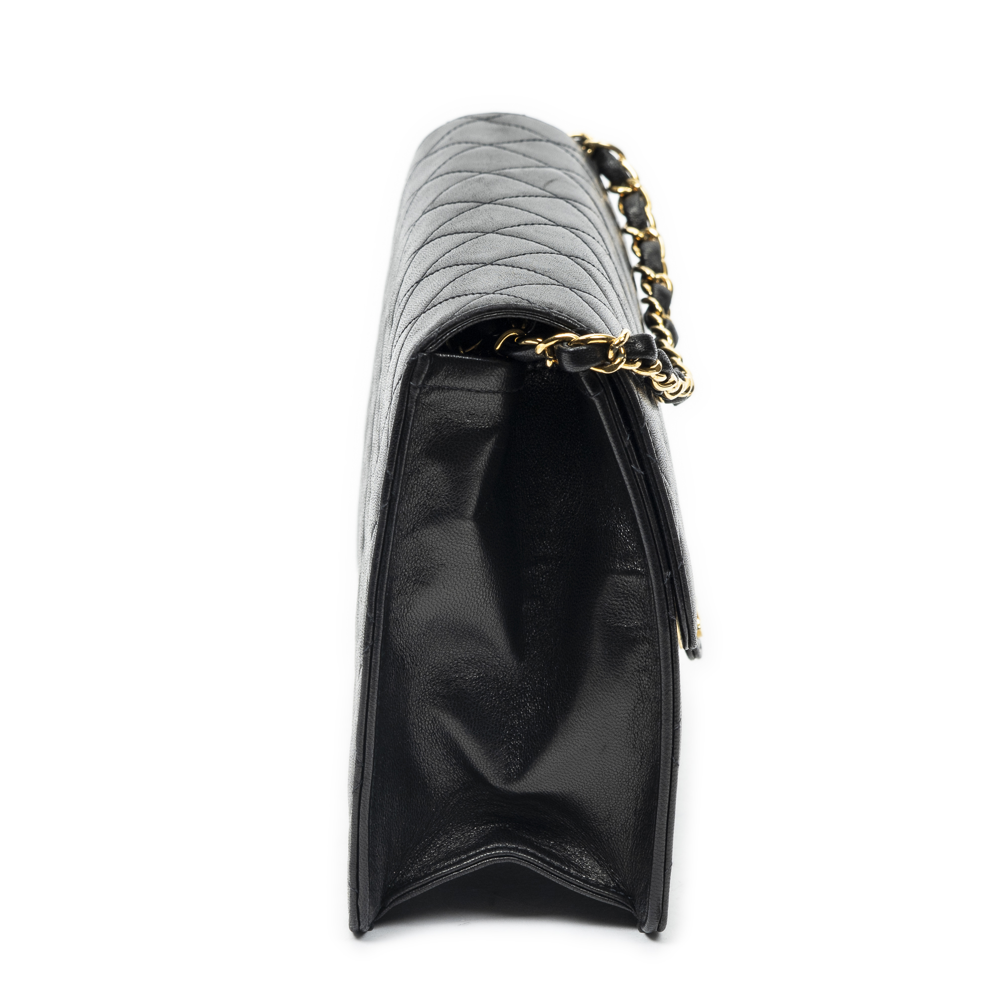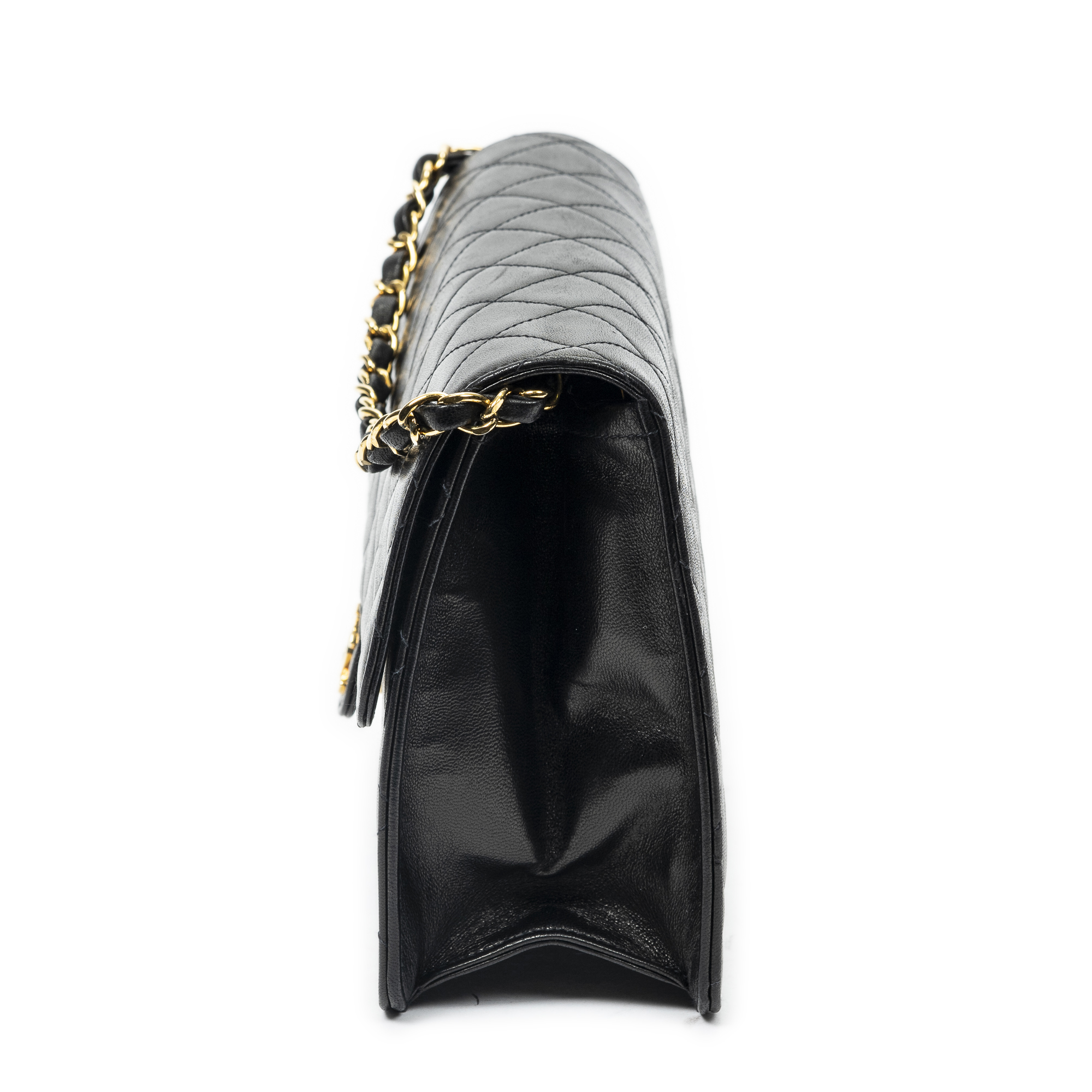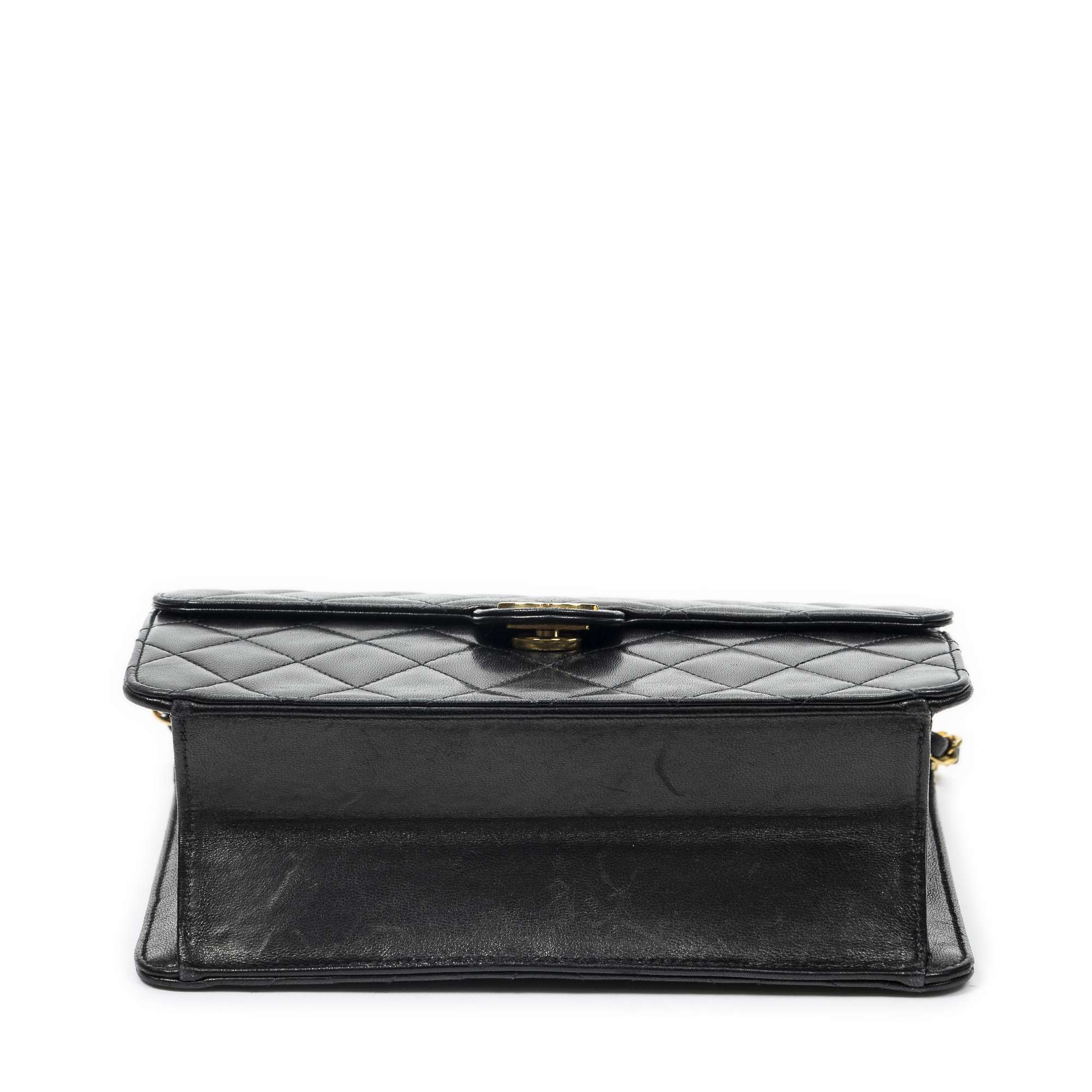 Chanel Sac à bandoulière Vintage Push Lock Straight Flap en Black et Gold. Le produit est en Excellent état (A).