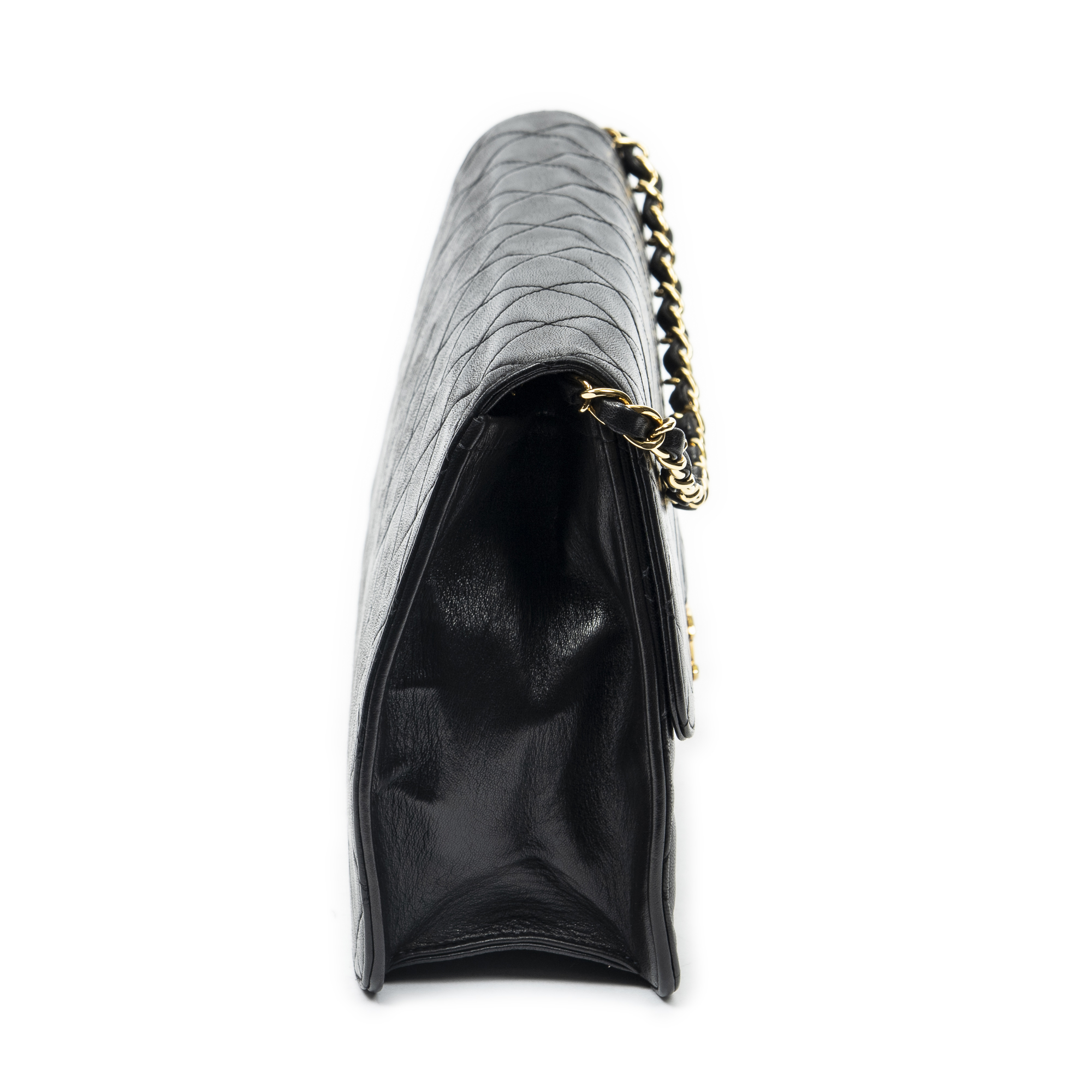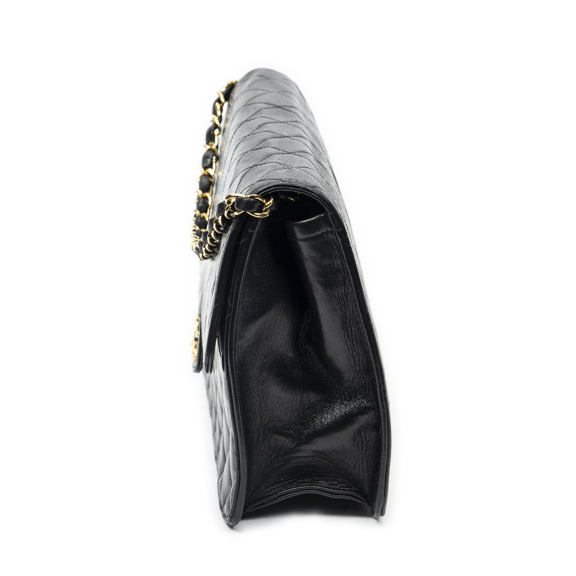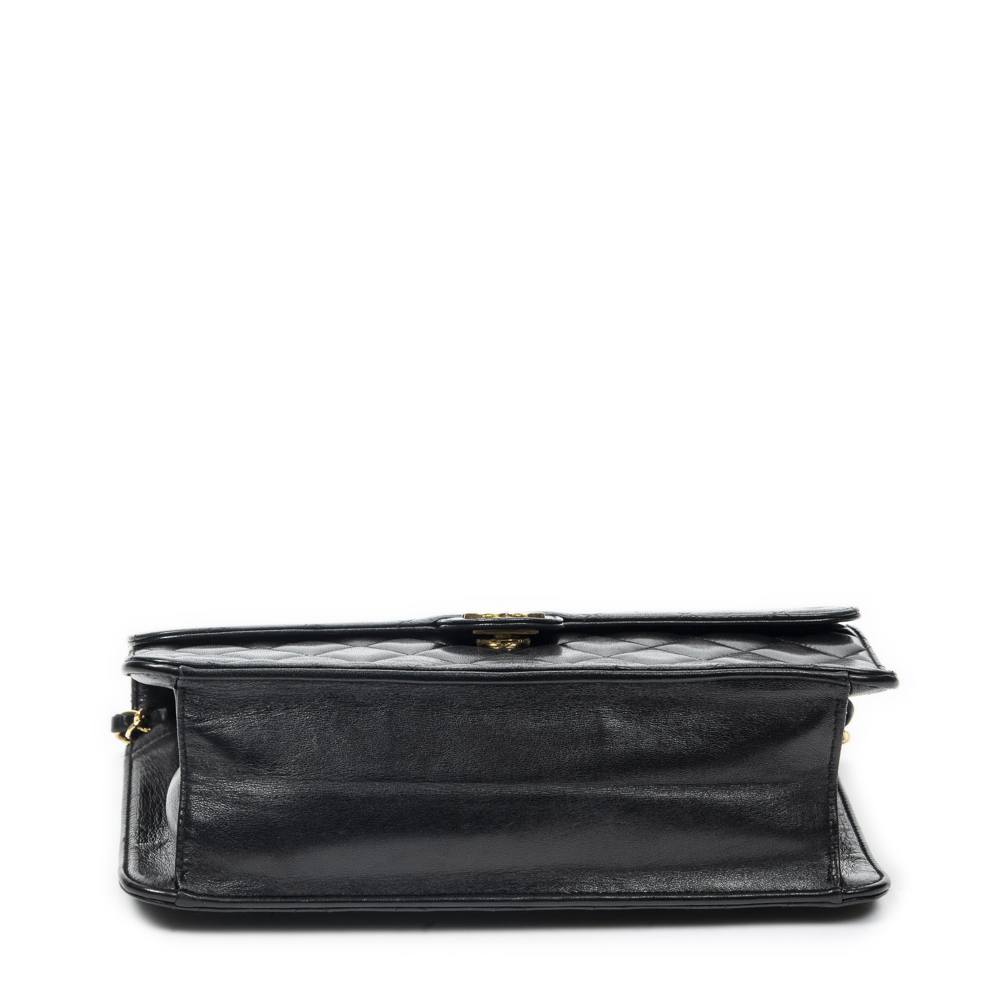 Chanel Sac à bandoulière Vintage Push Lock Straight Flap en Black et Gold. Le produit est en Excellent état (A).