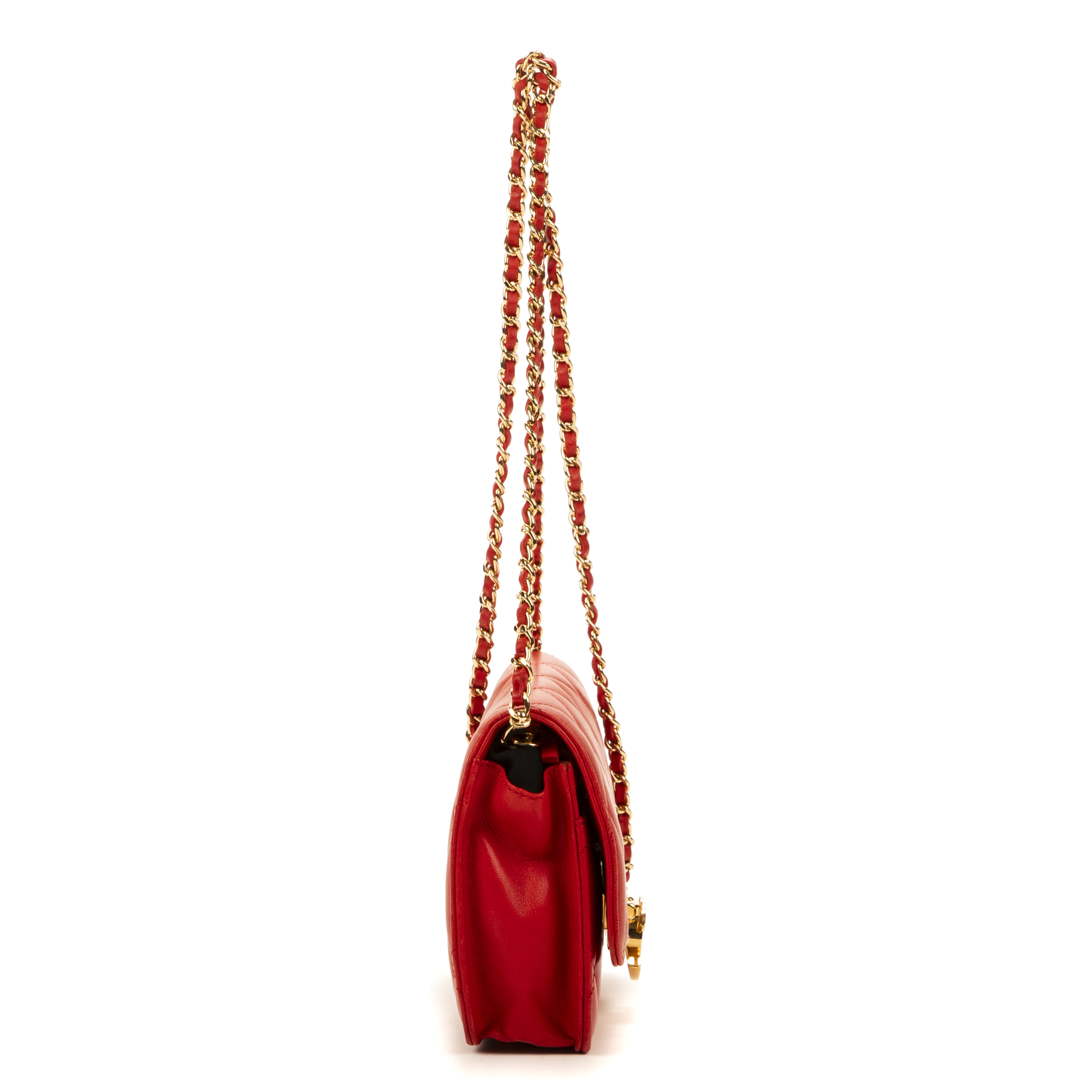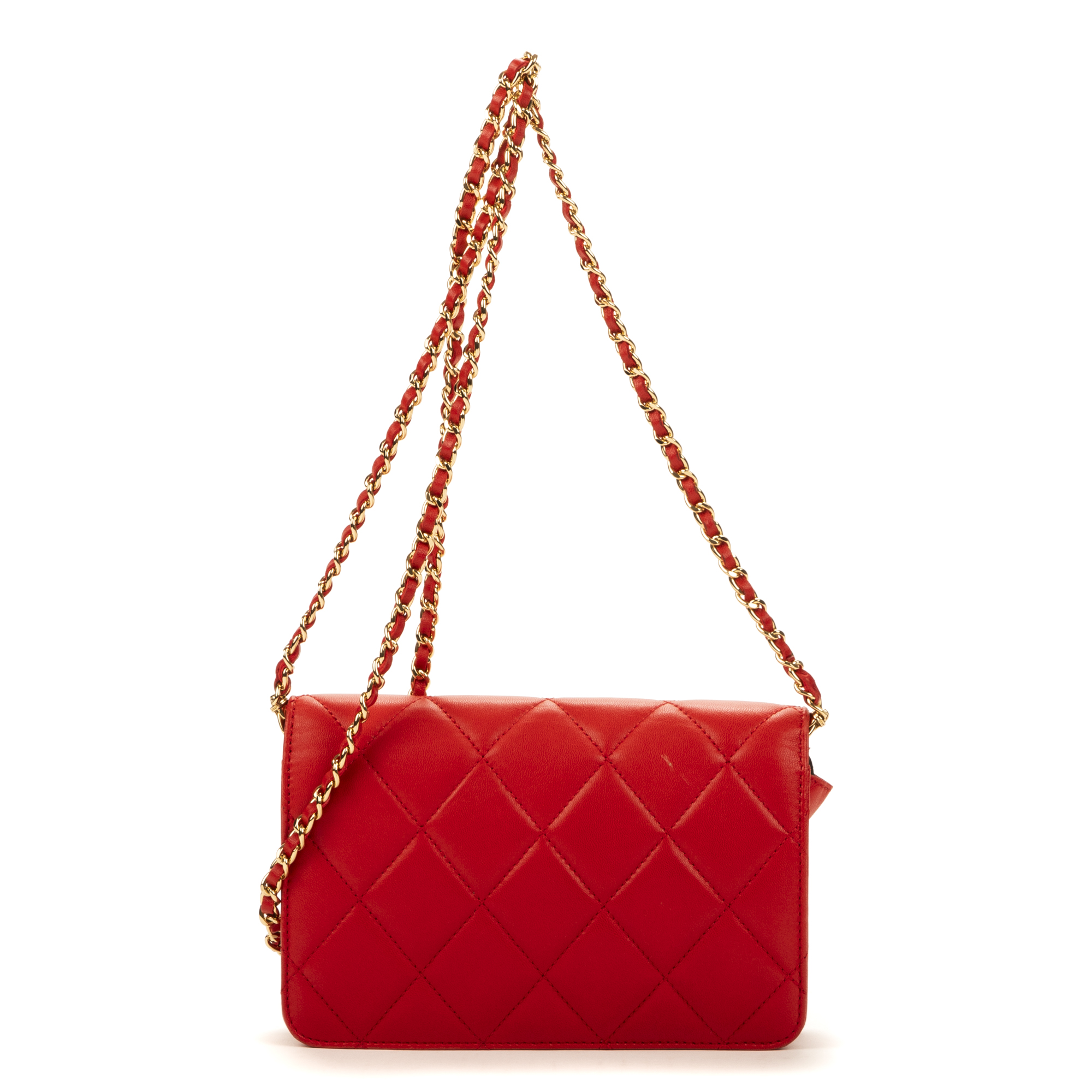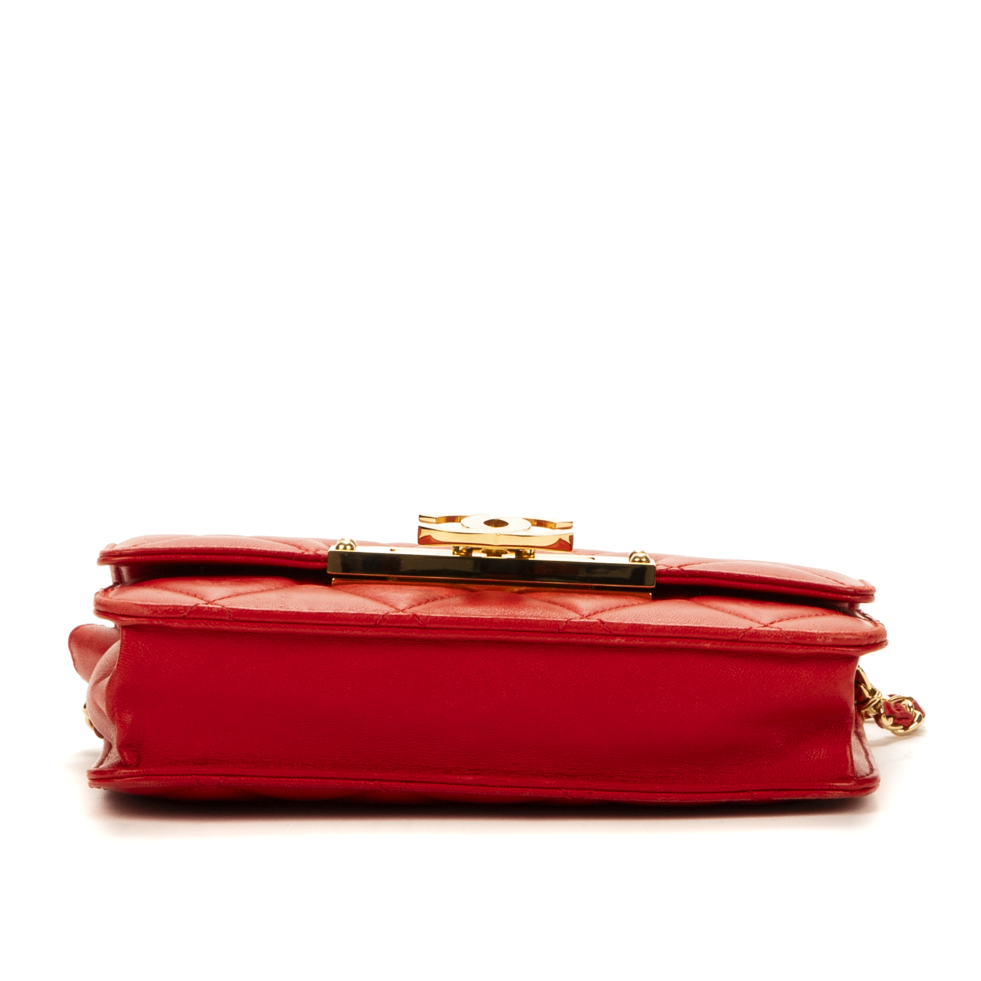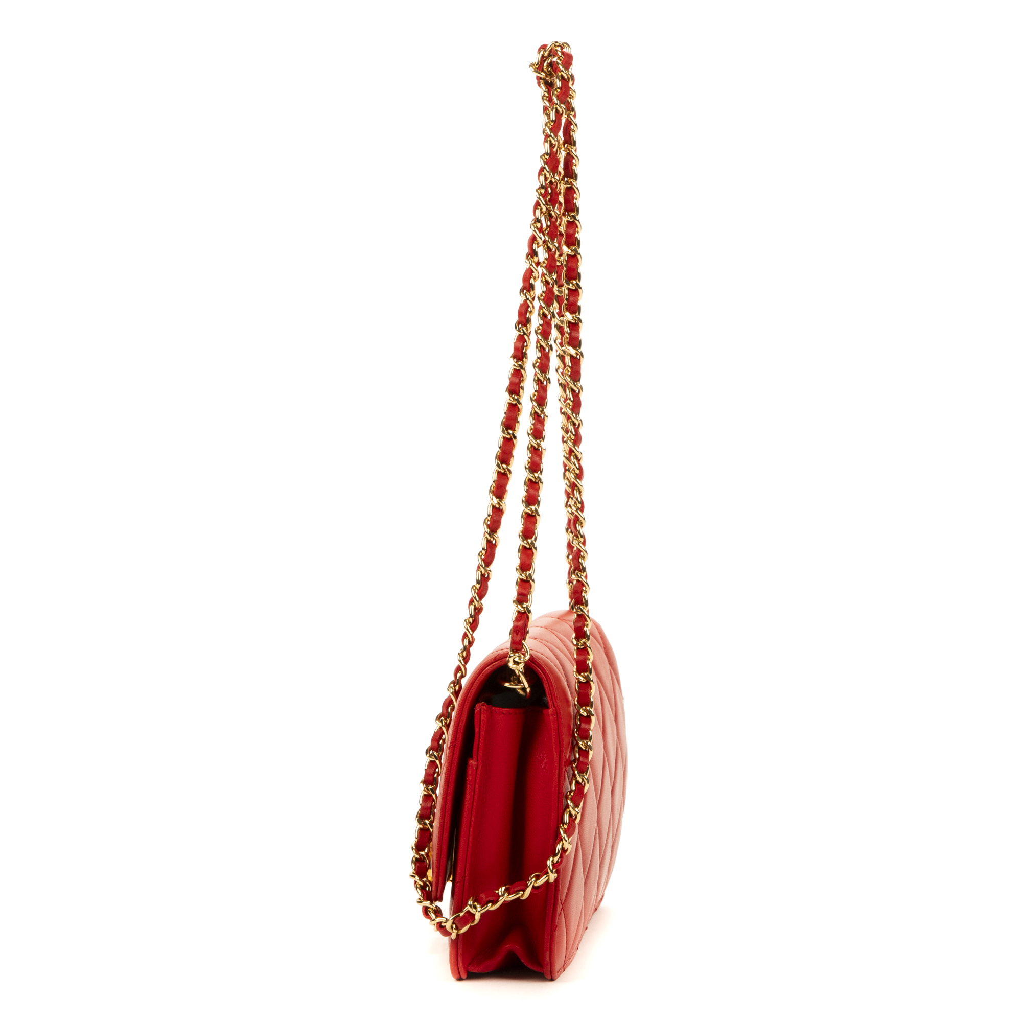 Chanel sac à bandoulière WOC CC en Du cuir de veau Red et or. Le produit est en Excellent état (A).