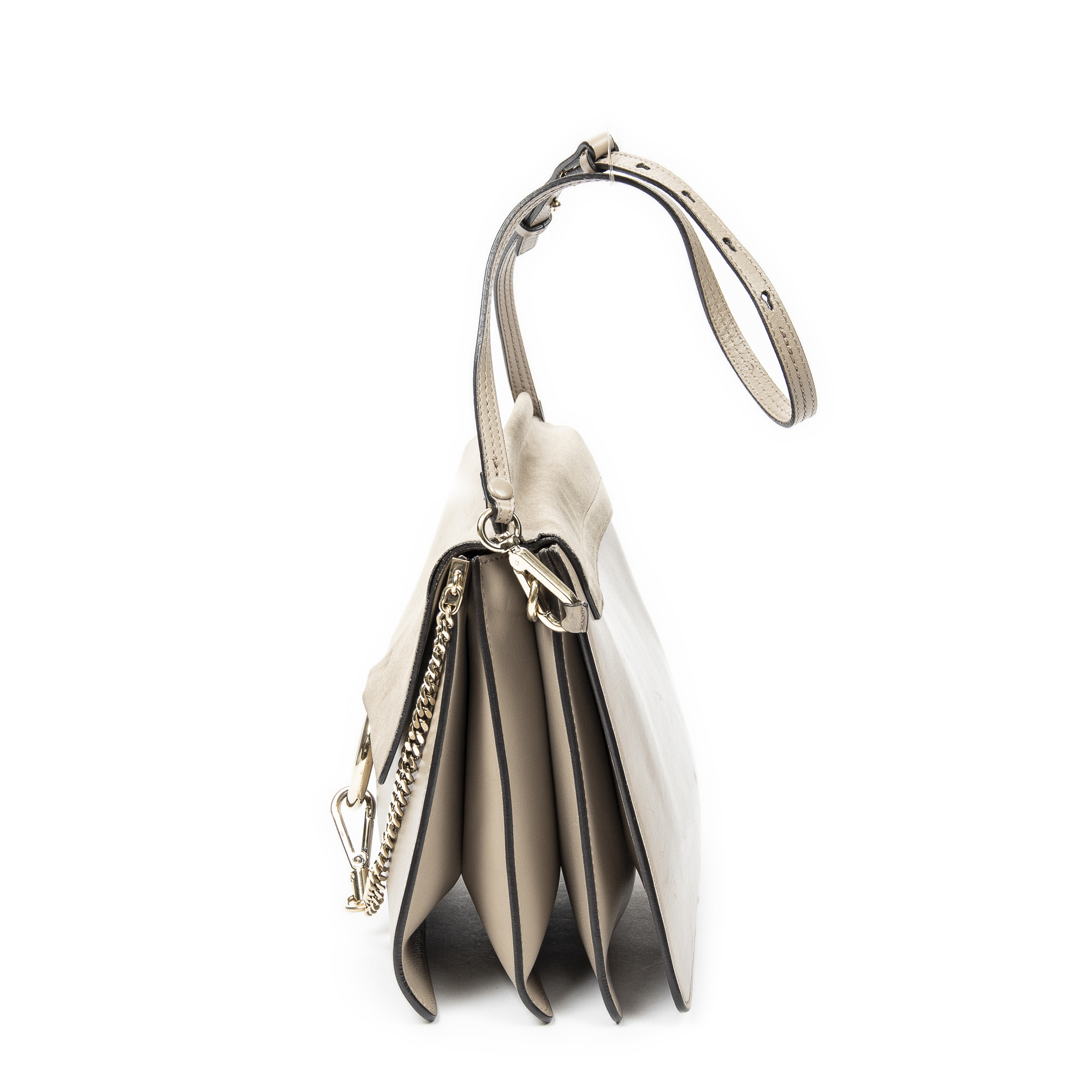 Chloé Sac à bandoulière Medium Faye en Du cuir de veau Gris et Or. Le produit est en Très Bon état (AB).