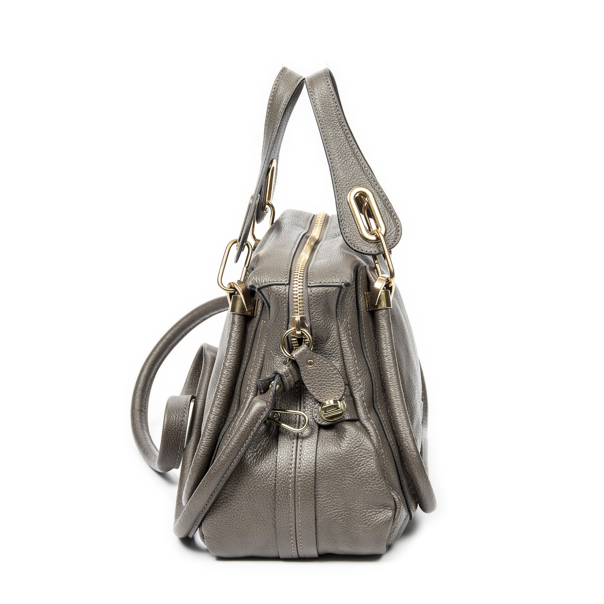 Chloé Sac à bandoulière Medium Paraty en Grey et Gold. Le produit est en Excellent état (A).