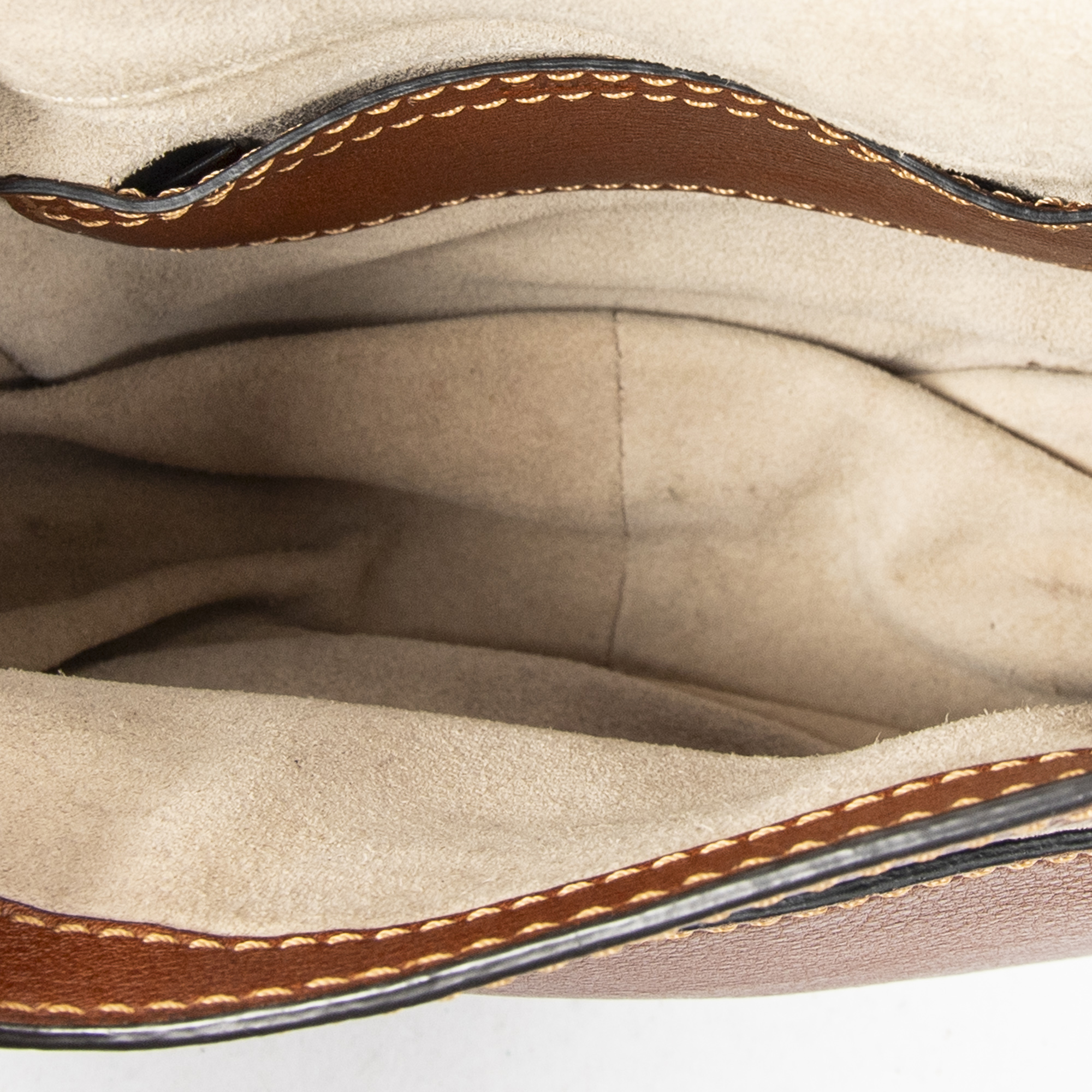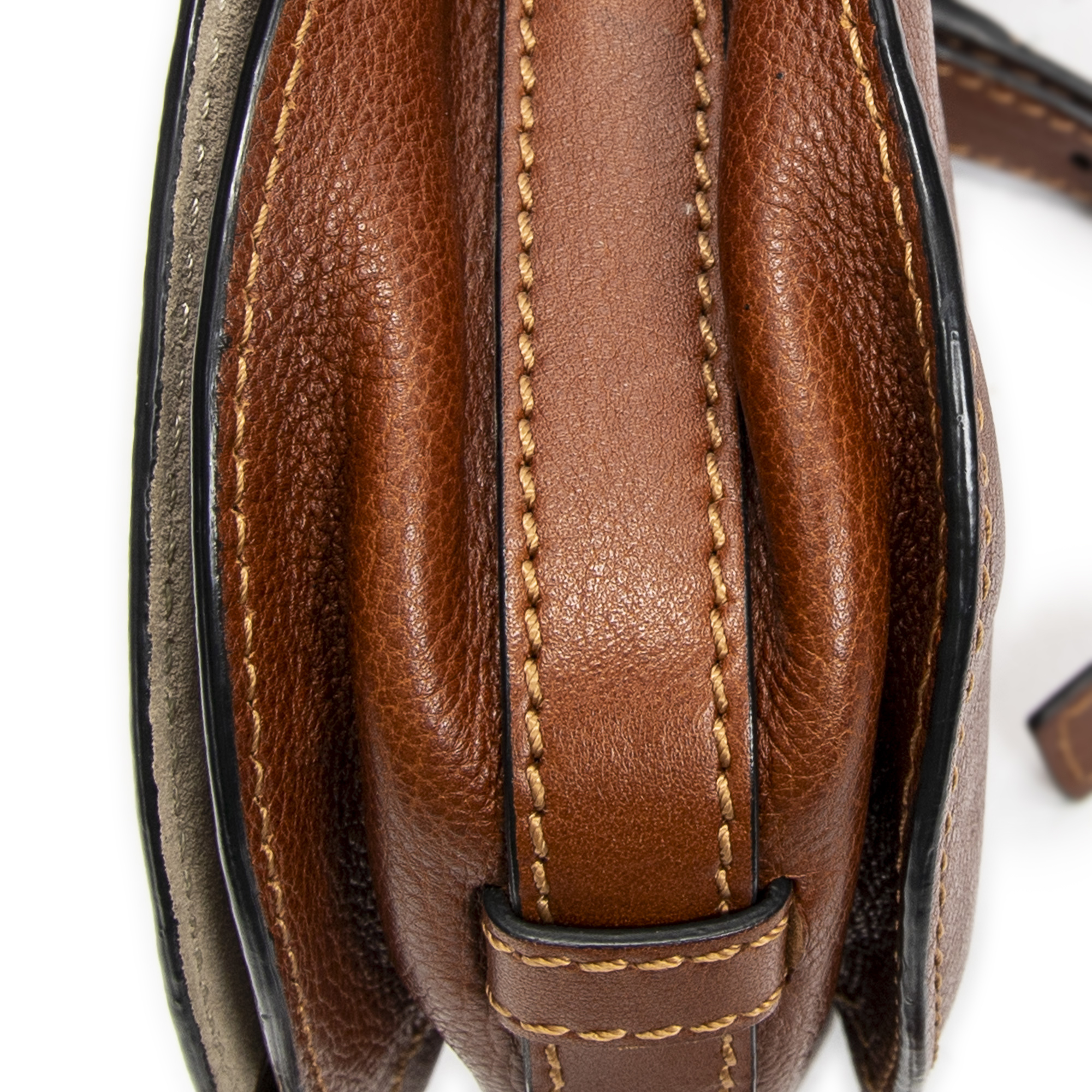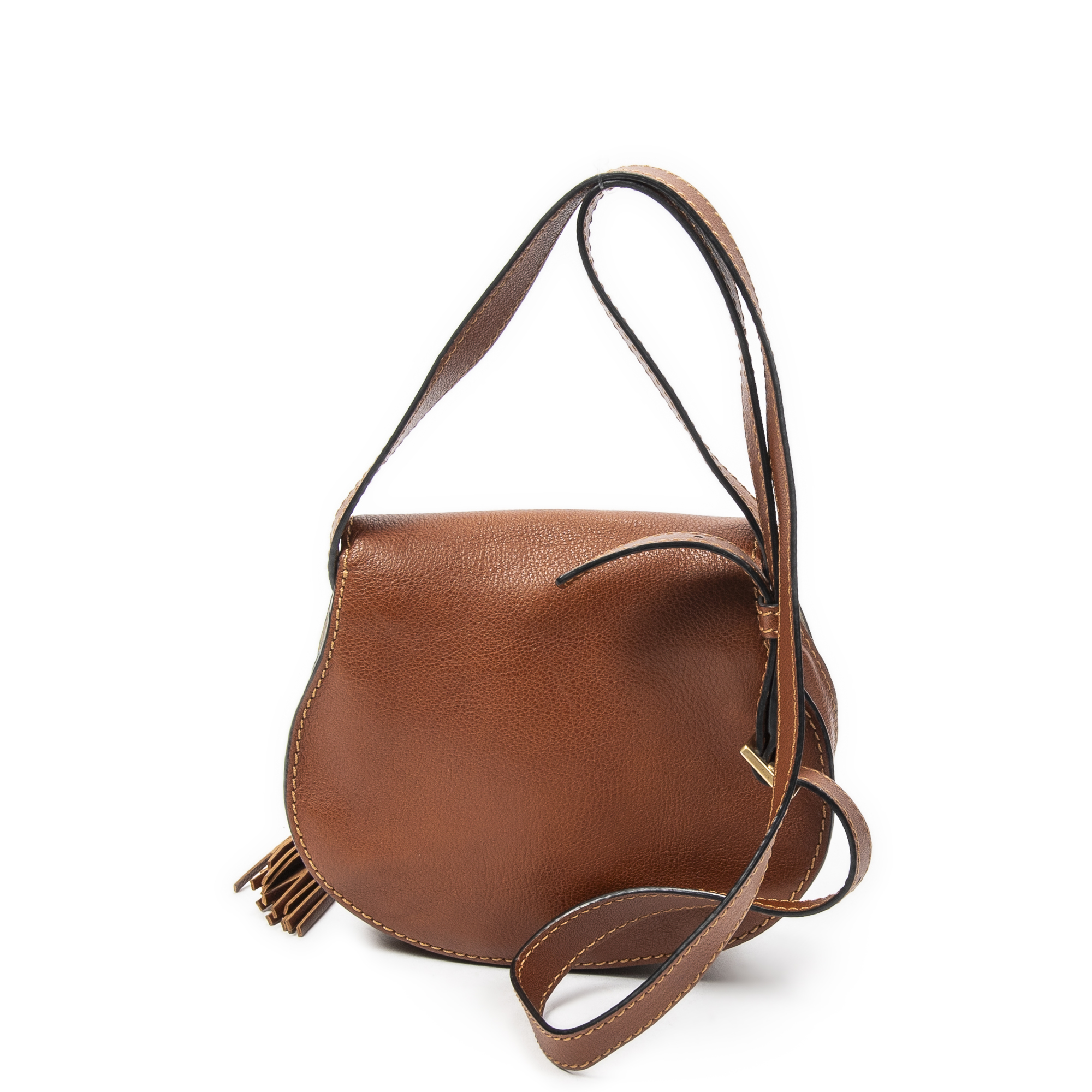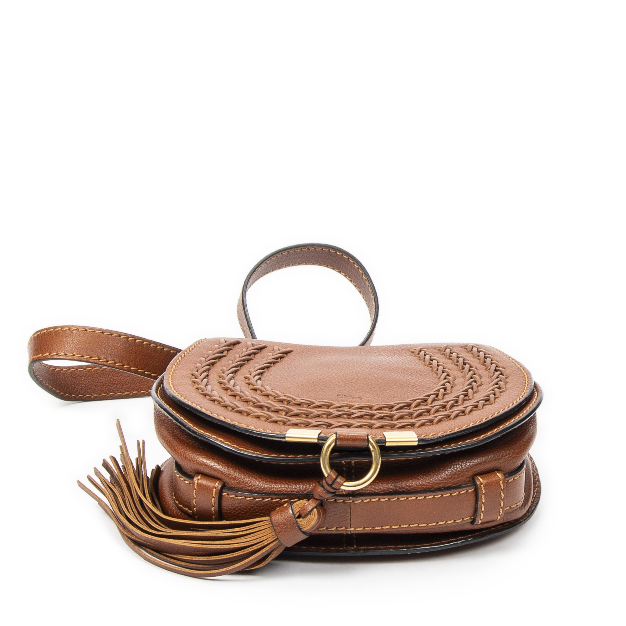 Chloé Sac à bandoulière Mini Marcie Saddle Tassel Crossbody en Tan et Gold. Le produit est en Excellent état (A).