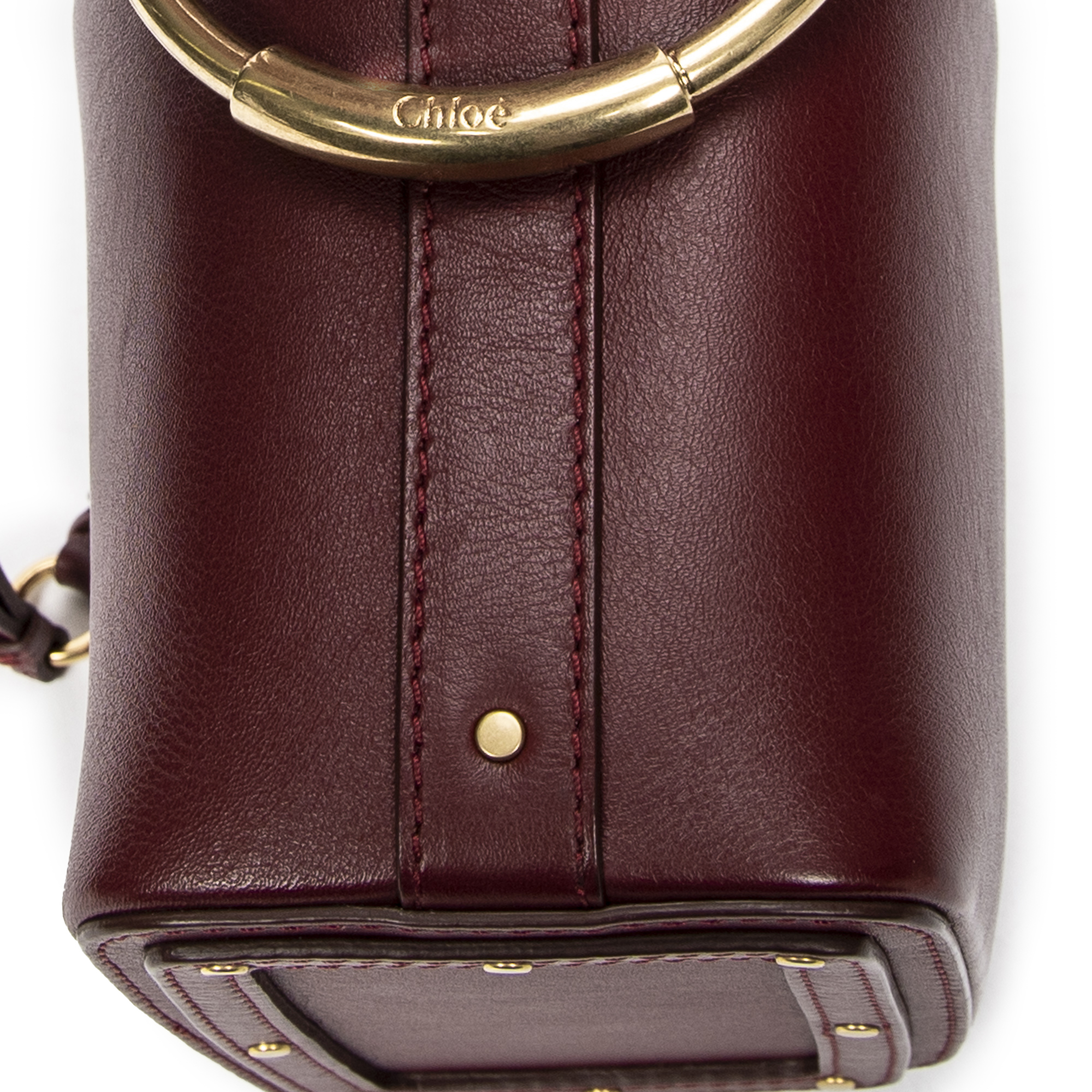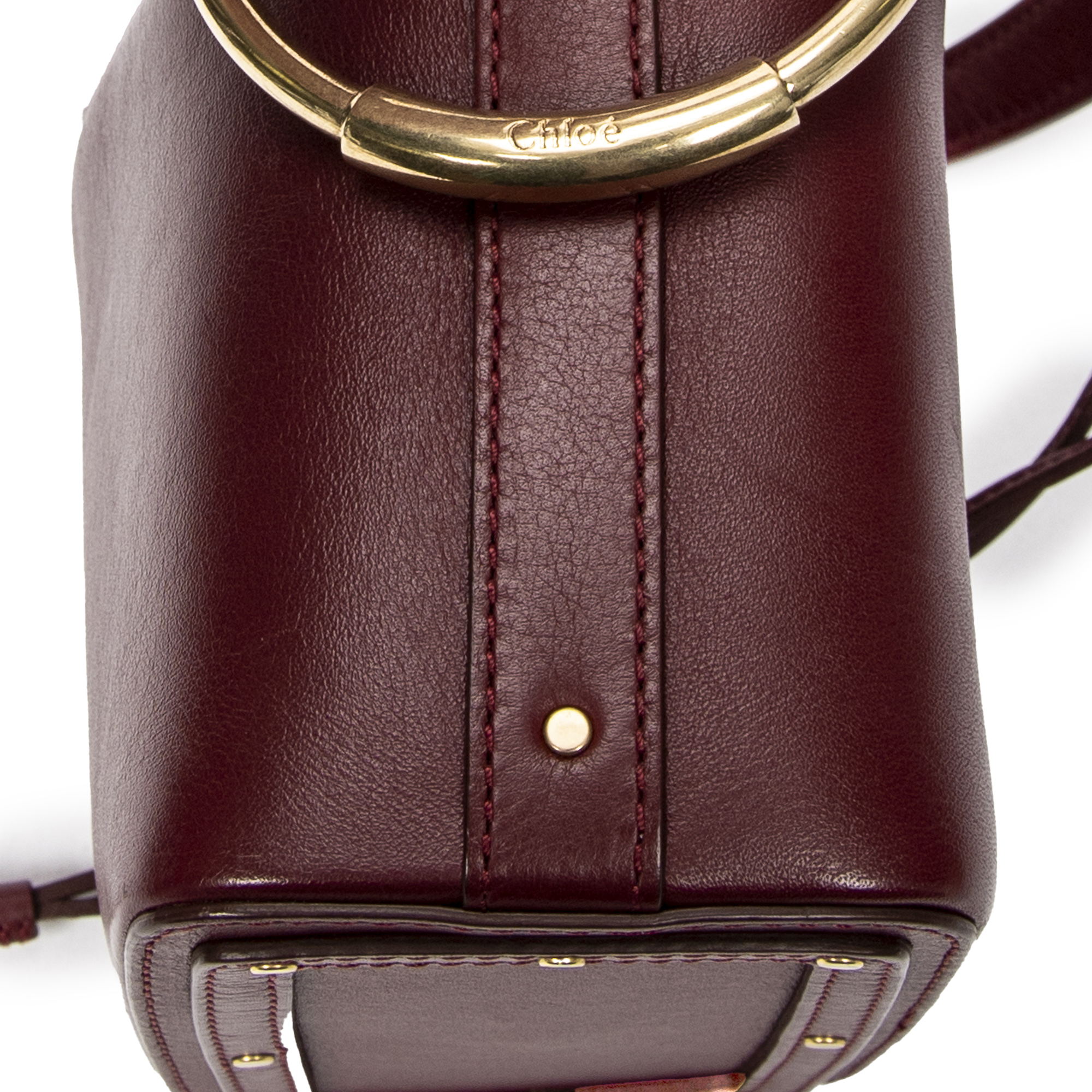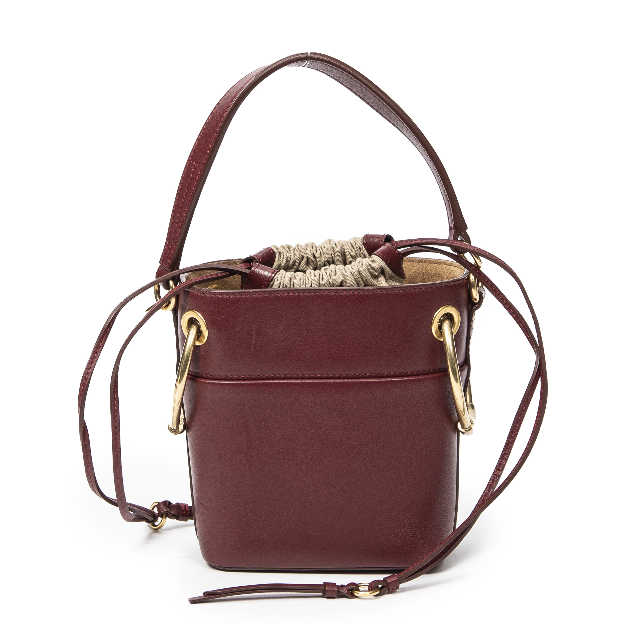 Chloé Sac à bandoulière Mini Roy Bucket en Du cuir de veau Bourgogne et Gold. Le produit est en Excellent état (A).