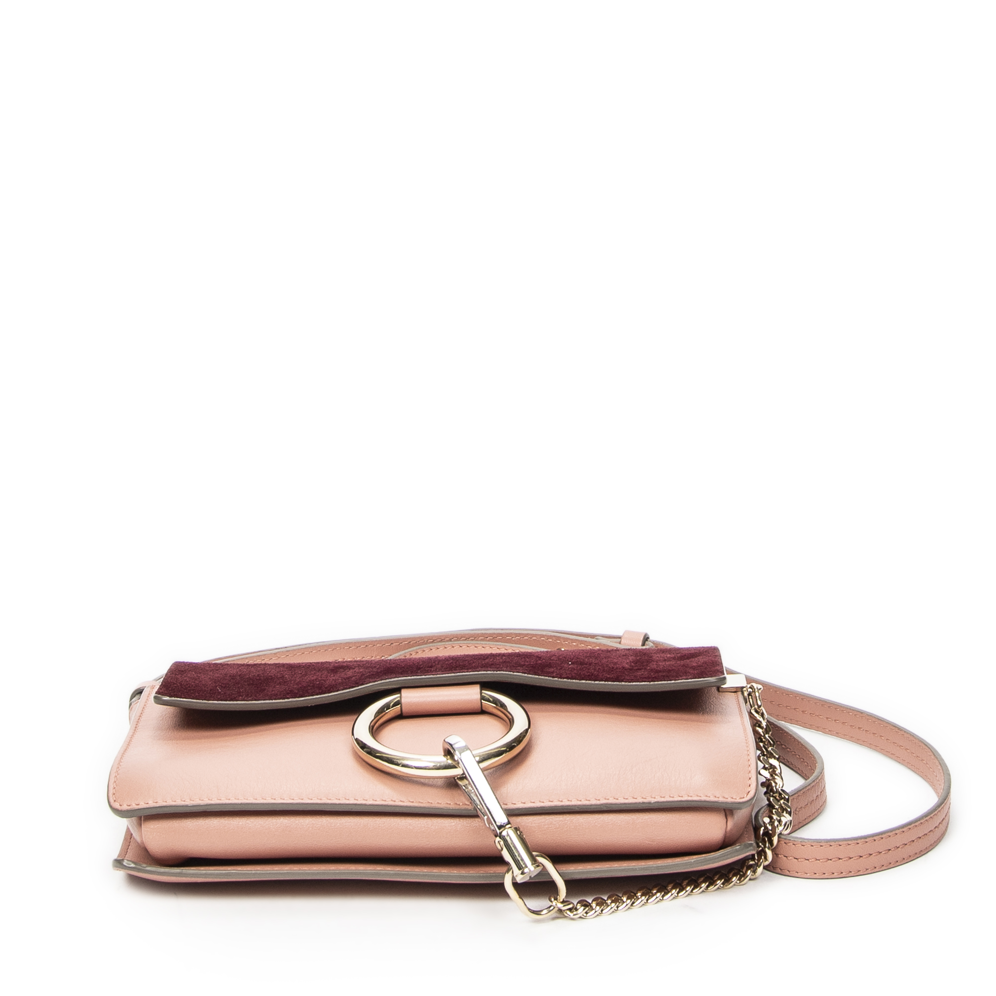 Chloé Sac à bandoulière Small Faye en Du cuir de veau Rose/Marron et Gold. Le produit est en Excellent état (A).