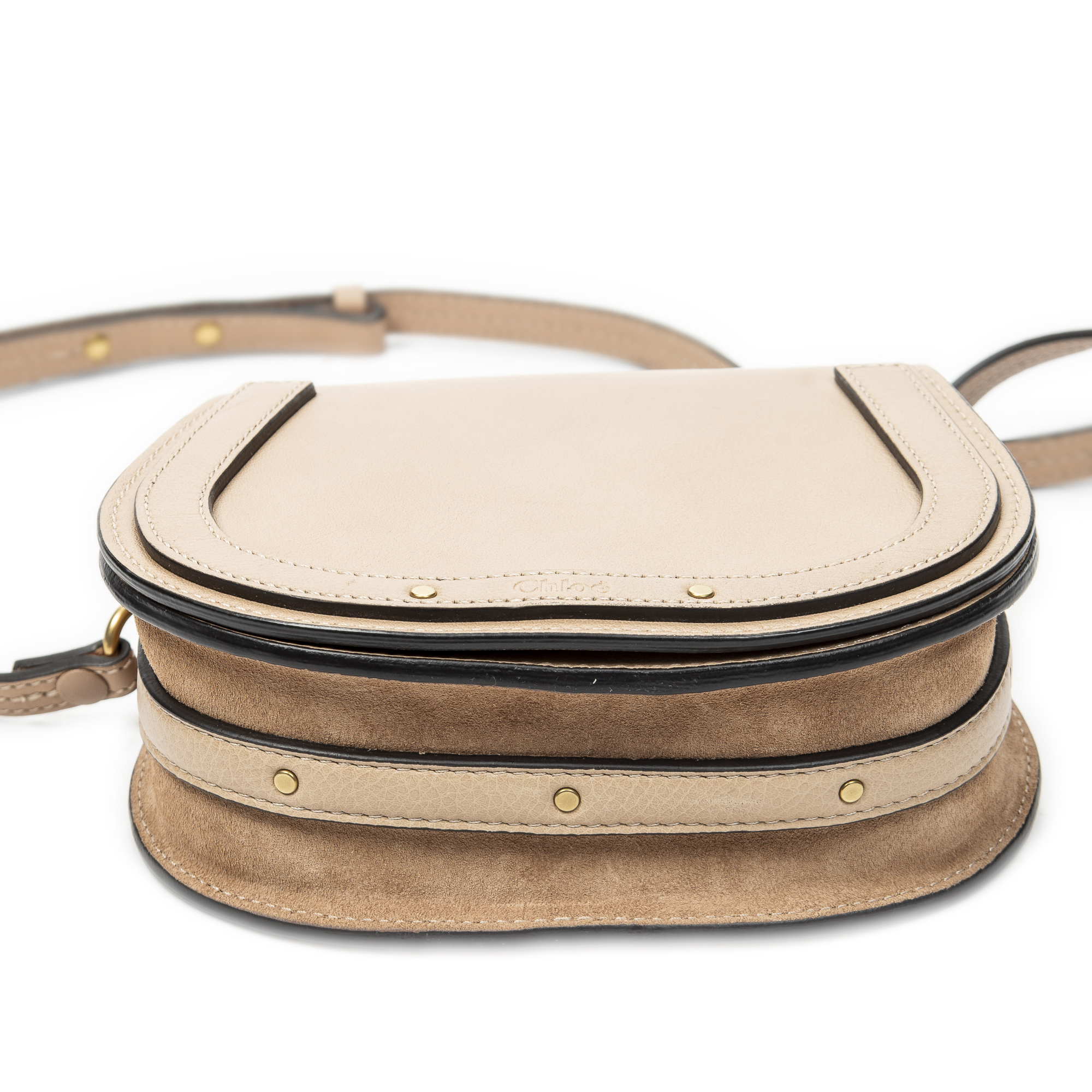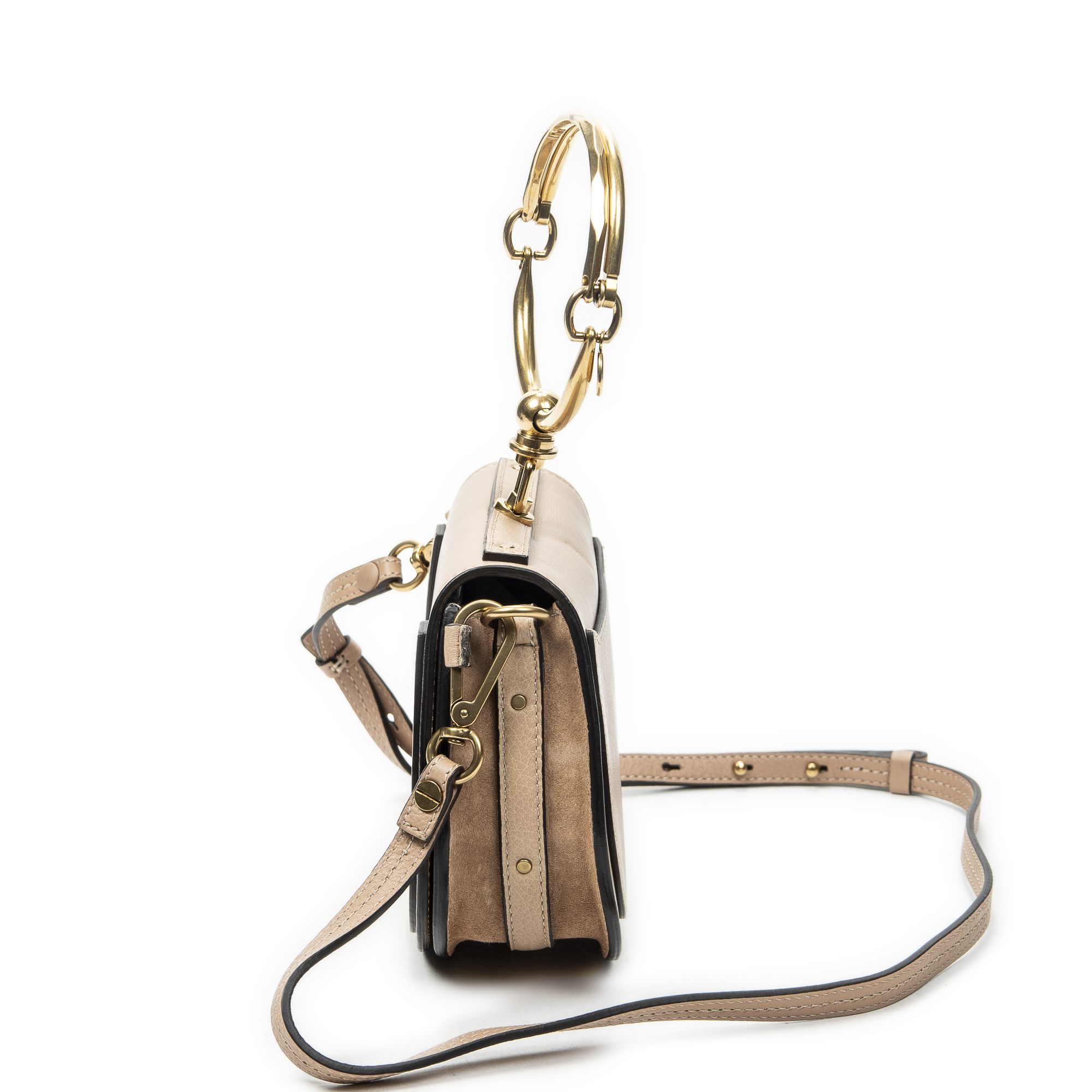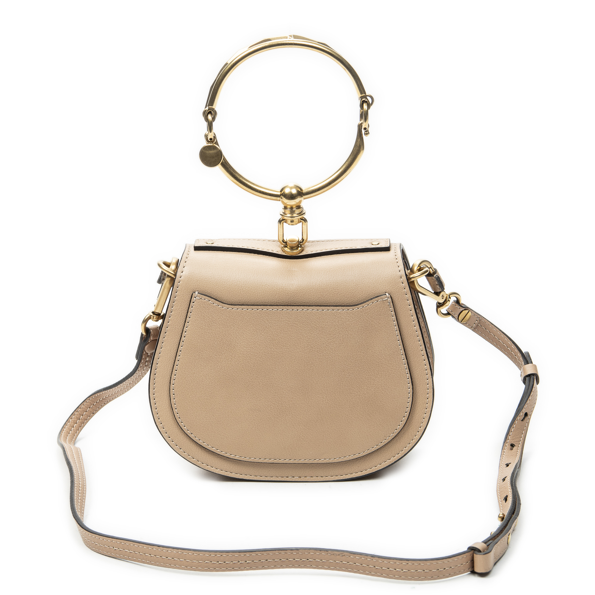 Chloé sac à bandoulière Small Nile Bracelet Bag en Du cuir de veau beige et or. Le produit est en Excellent état (A).