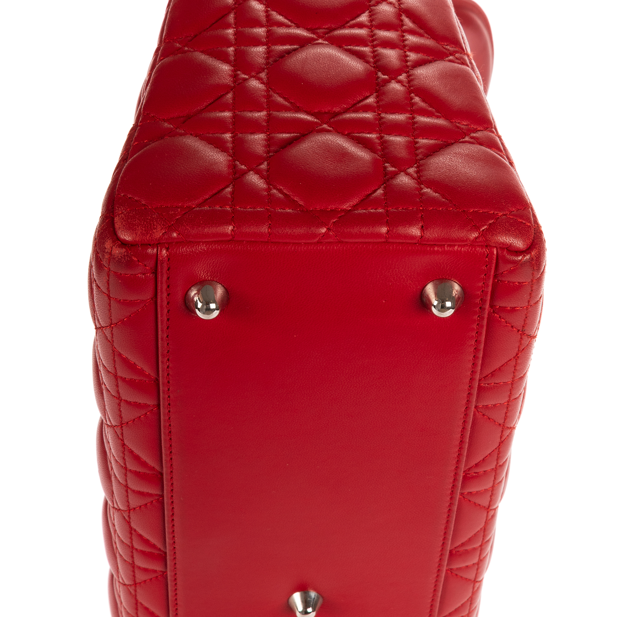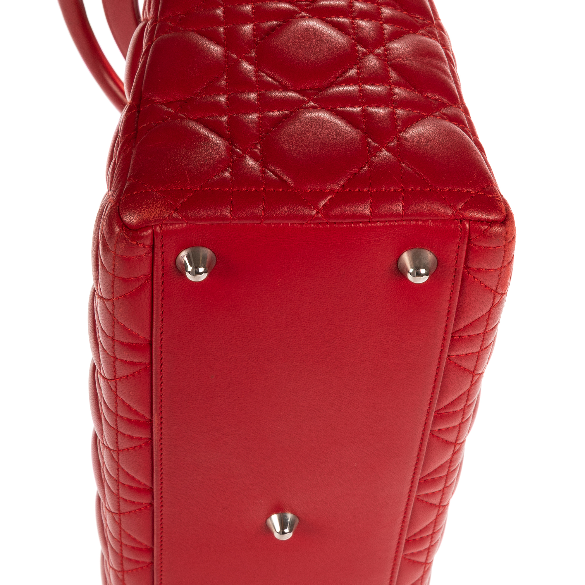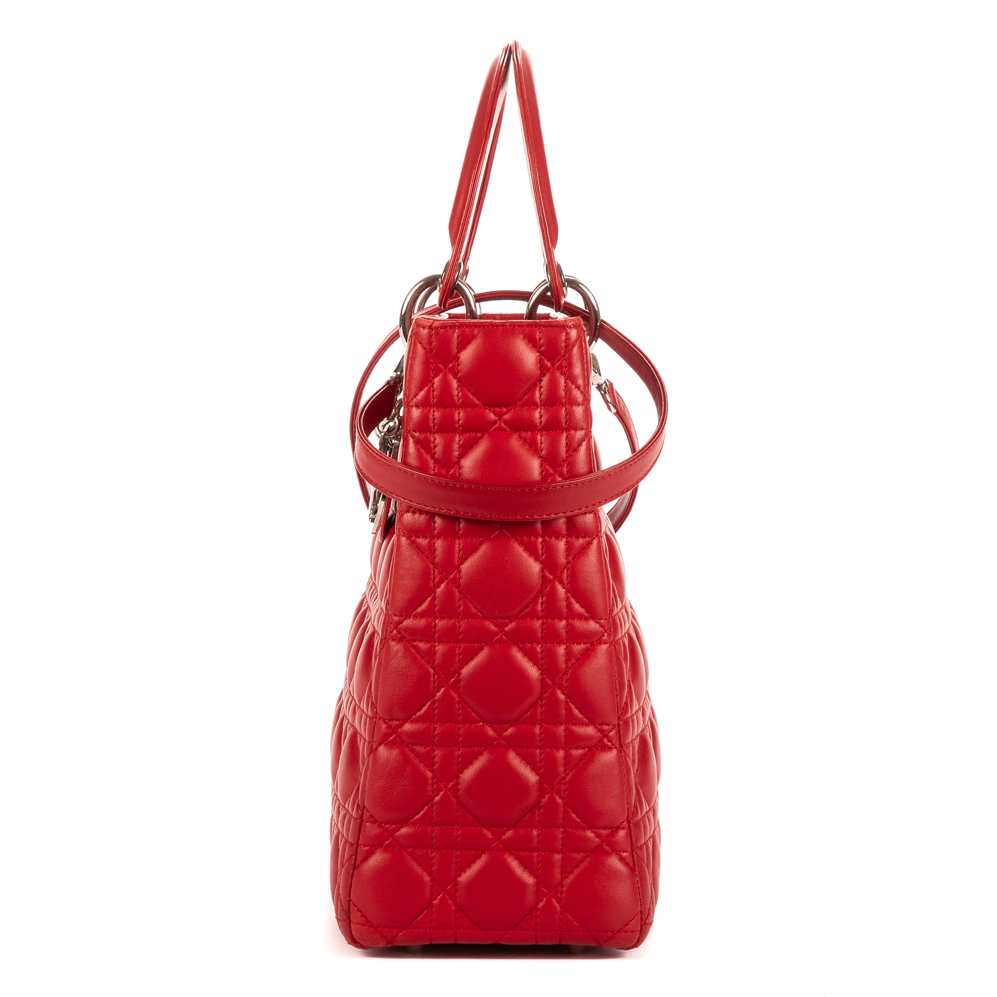 Christian Dior Sac à bandoulière Lady Dior Large en Rouge et Argent. Le produit est en Parfait état (AA).