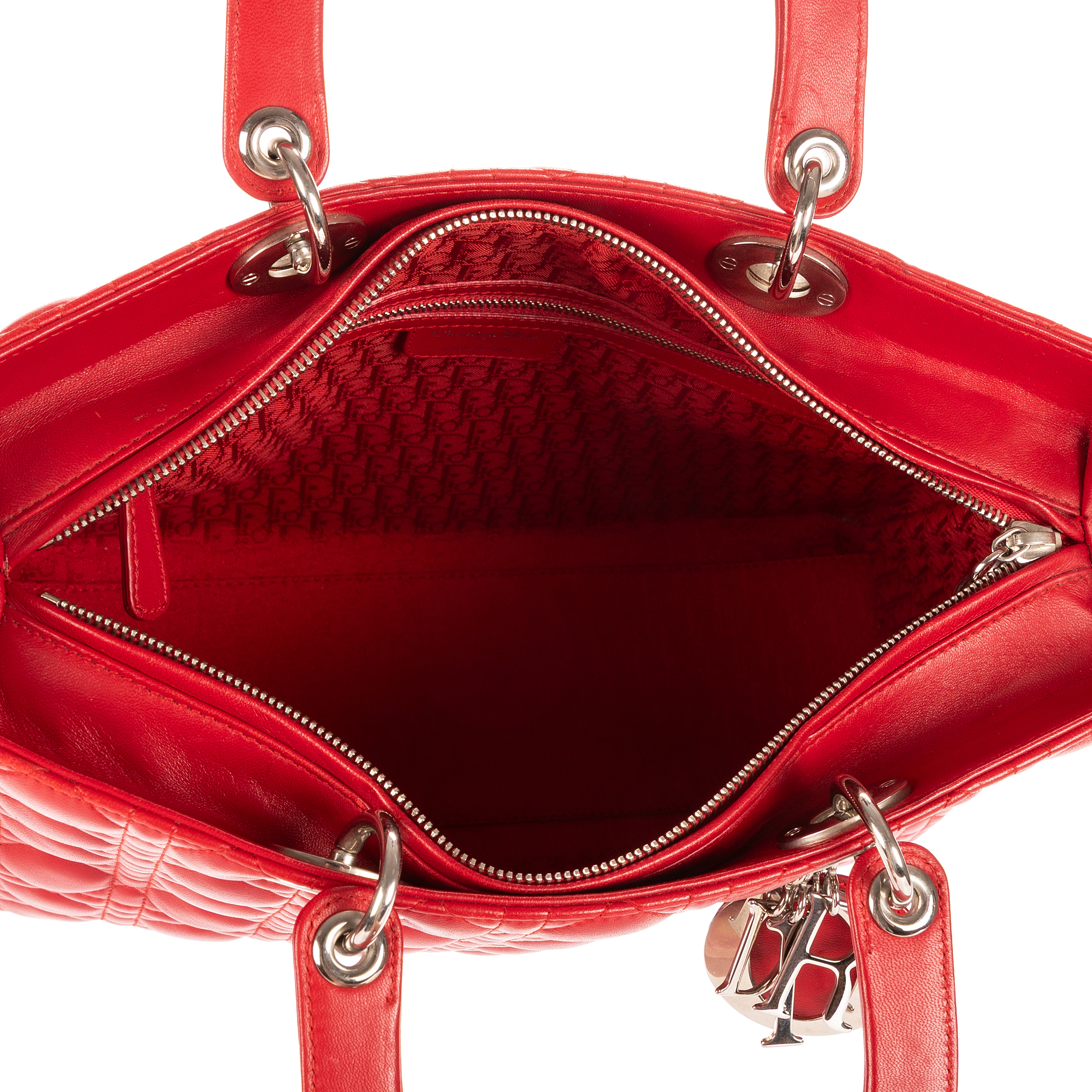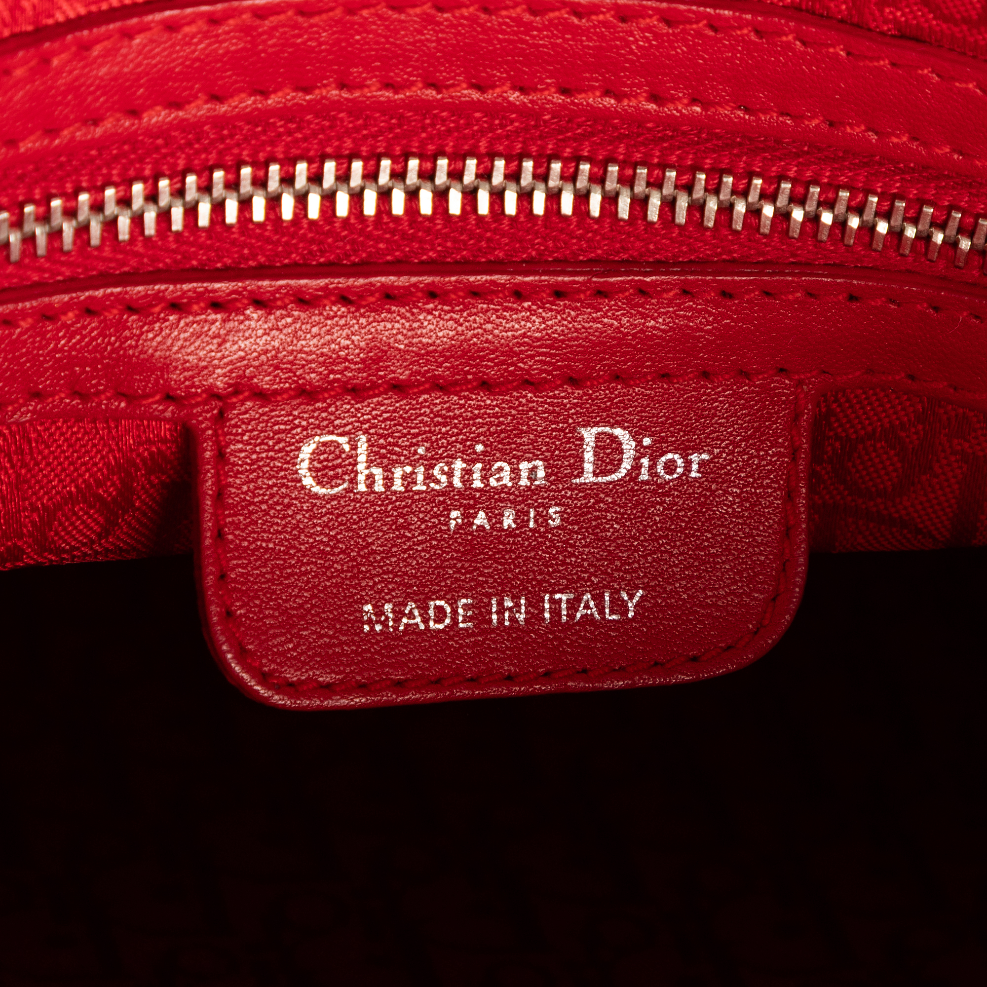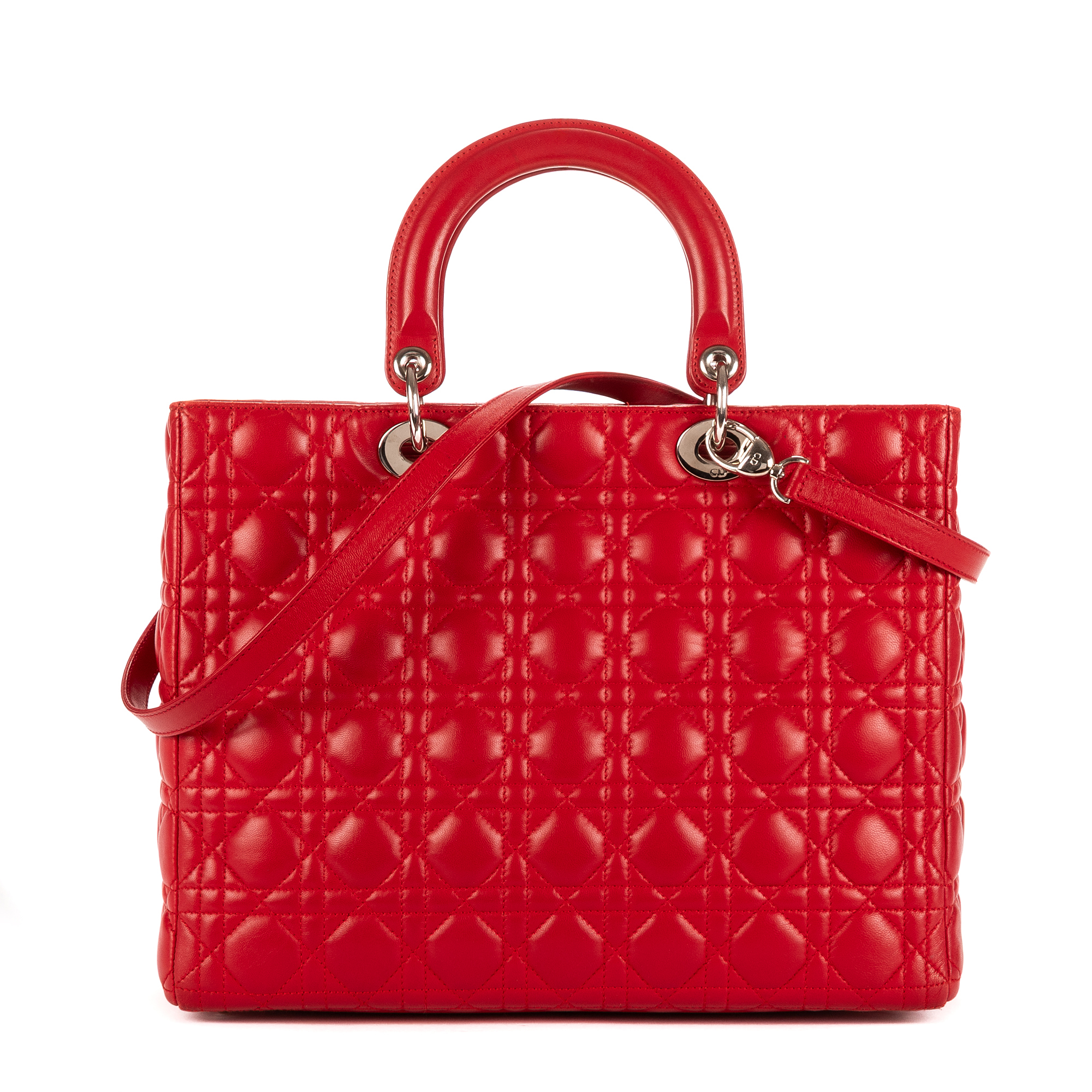 Christian Dior Sac à bandoulière Lady Dior Large en Rouge et Argent. Le produit est en Parfait état (AA).