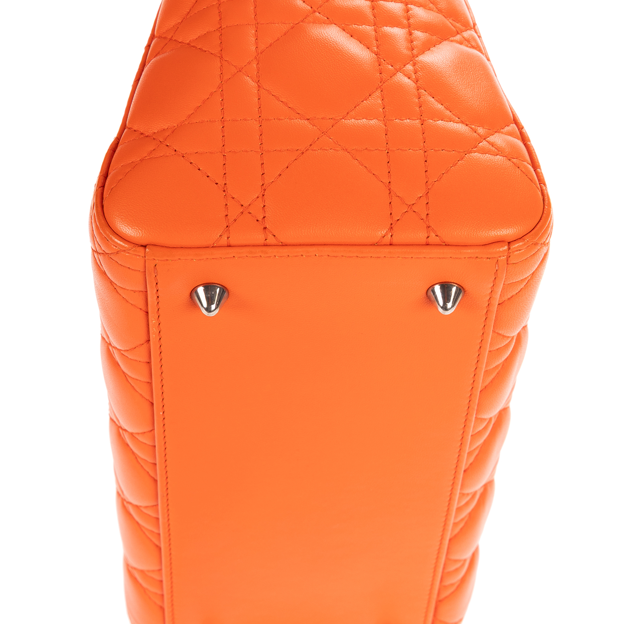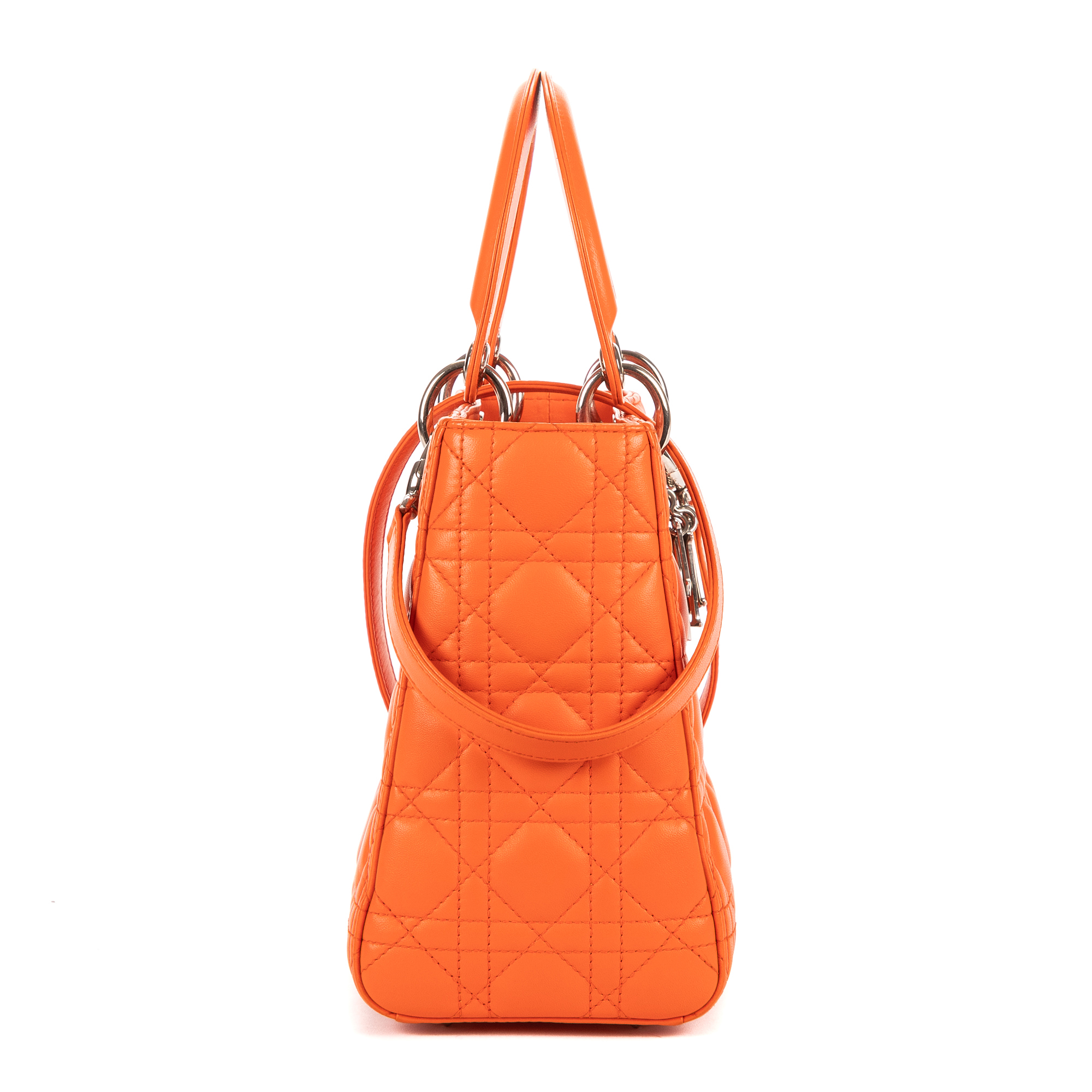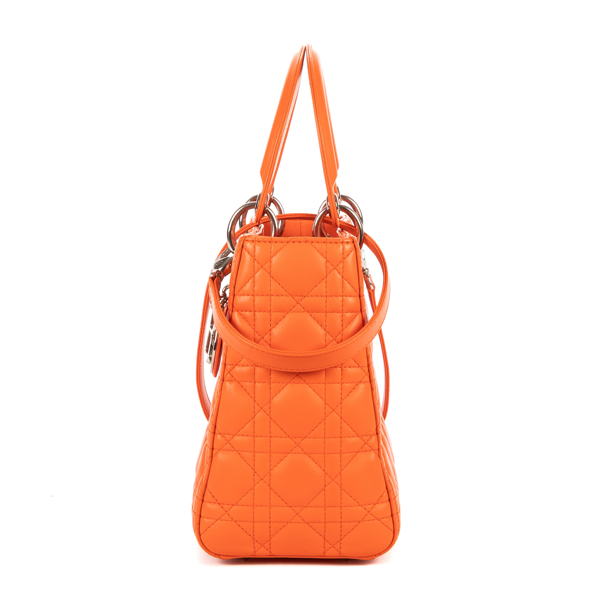 Christian Dior Sac à bandoulière Lady Dior Medium en Orange et Argent. Le produit est en Parfait état (AA).