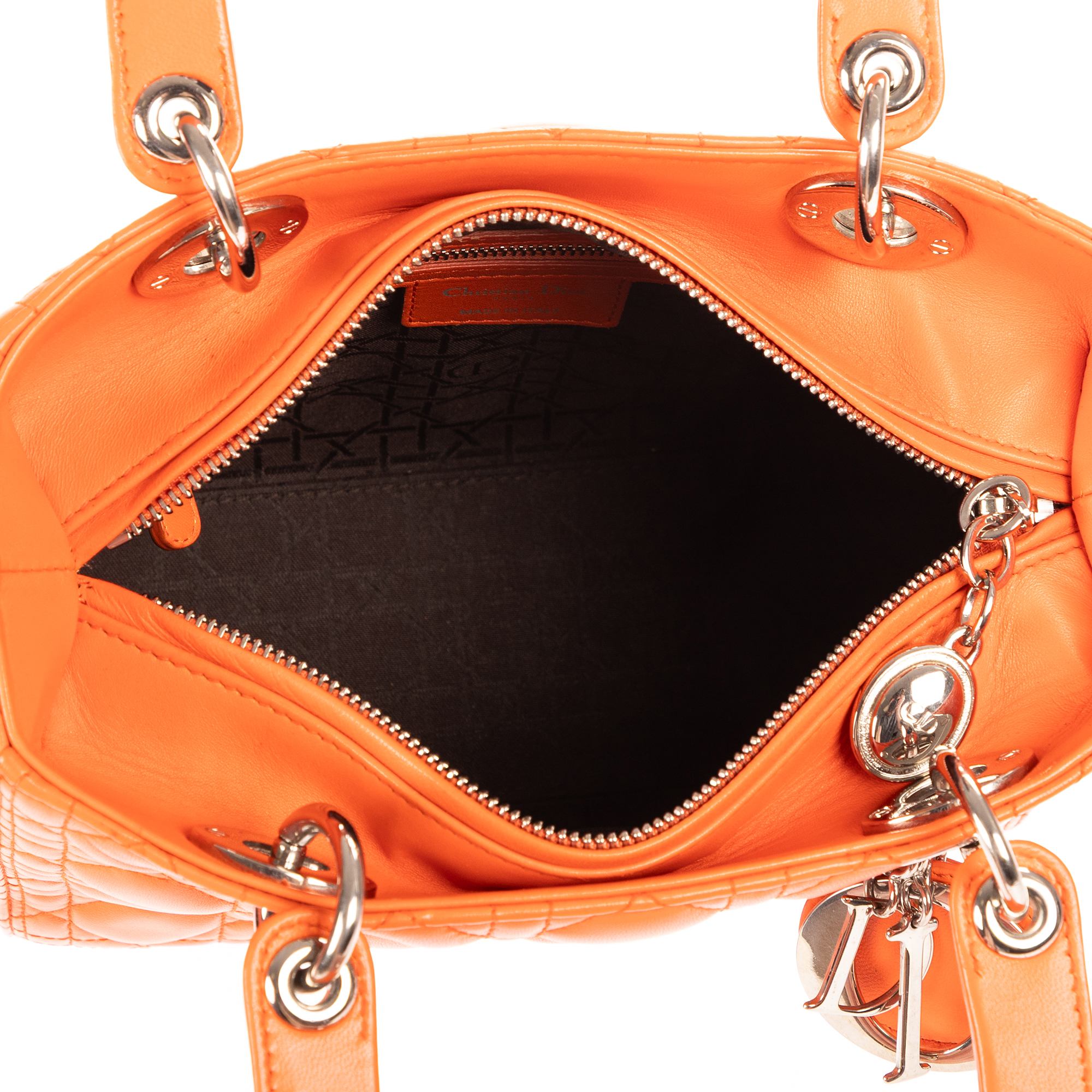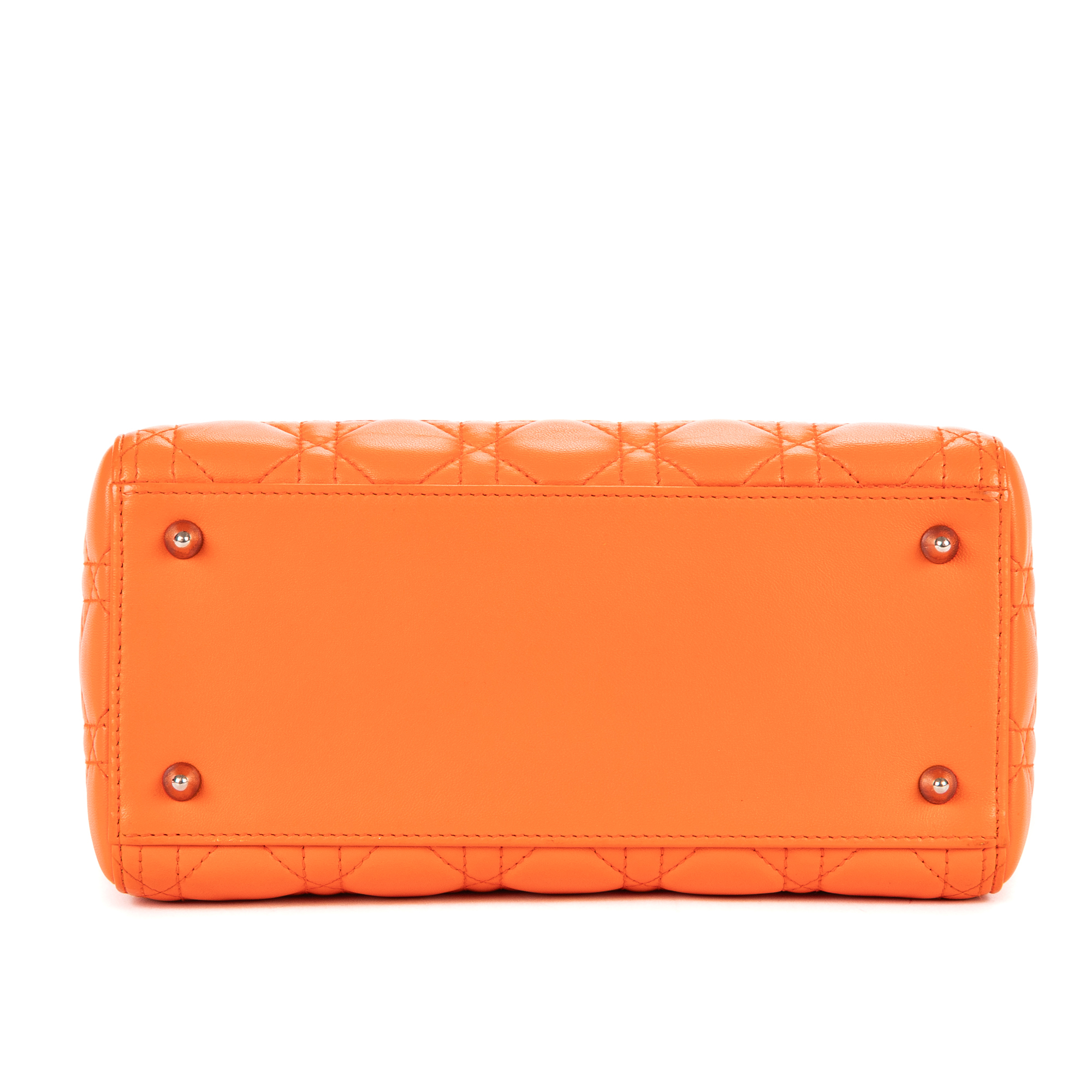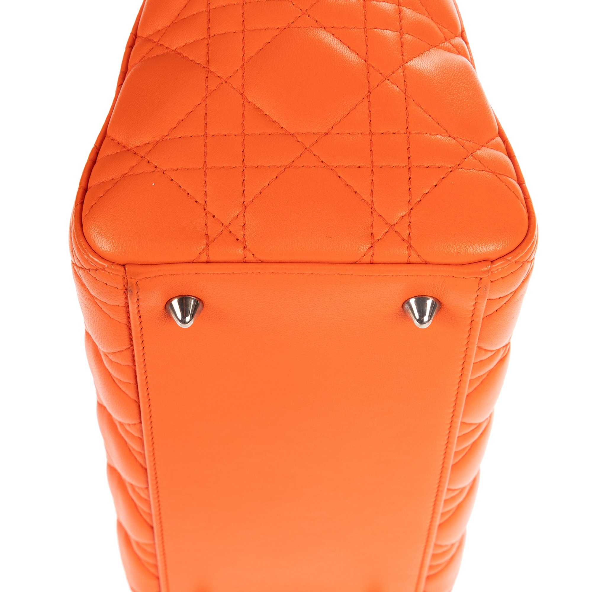 Christian Dior Sac à bandoulière Lady Dior Medium en Orange et Argent. Le produit est en Parfait état (AA).