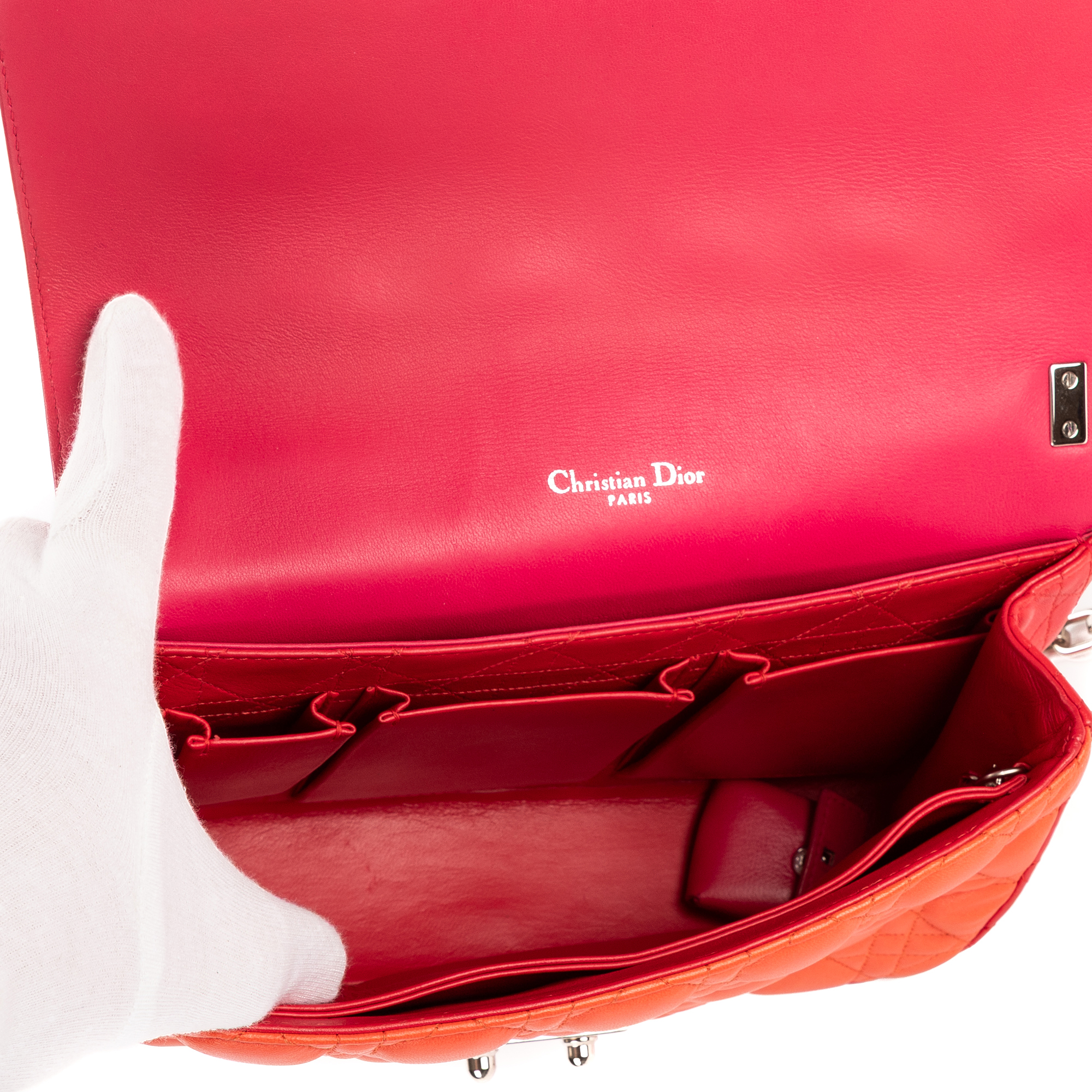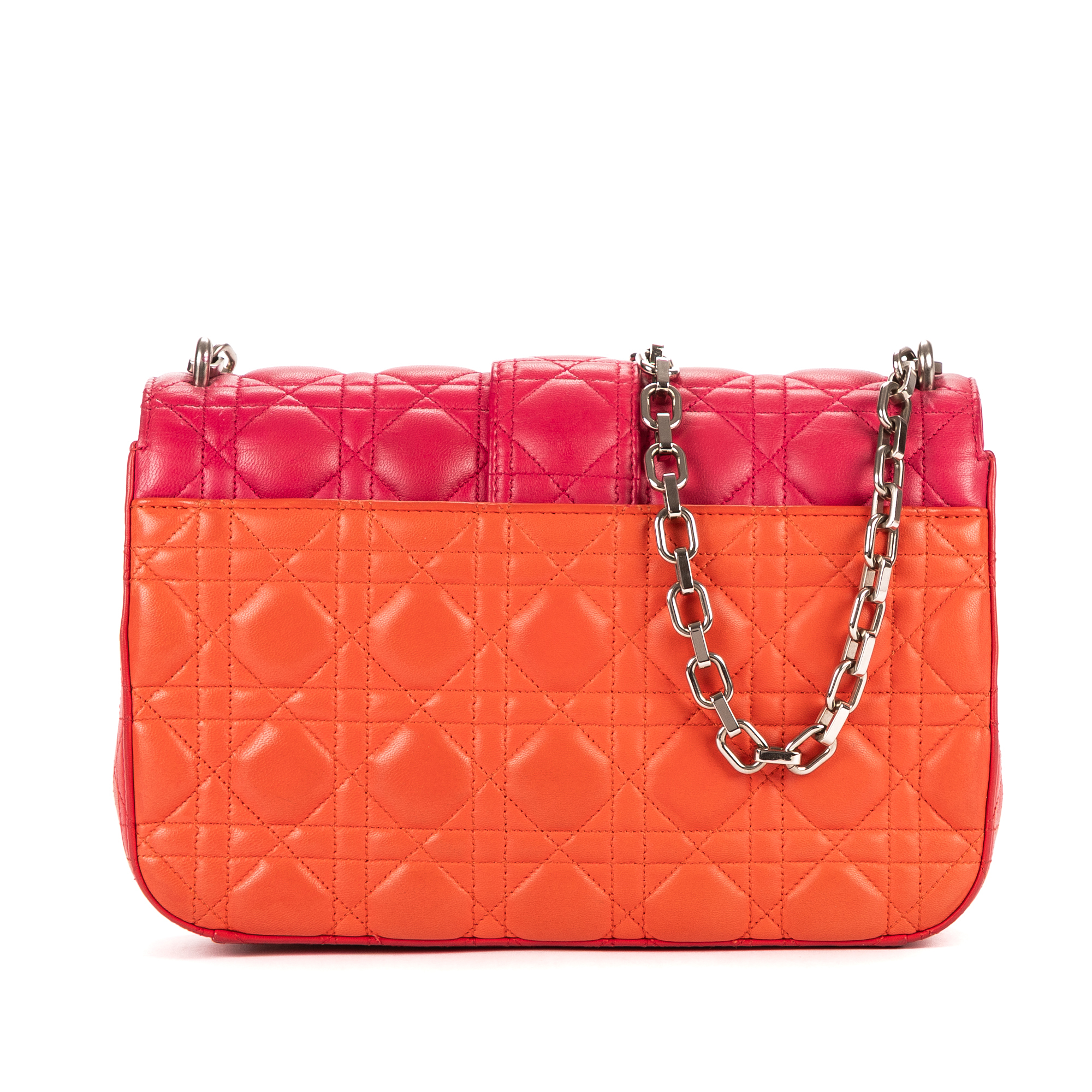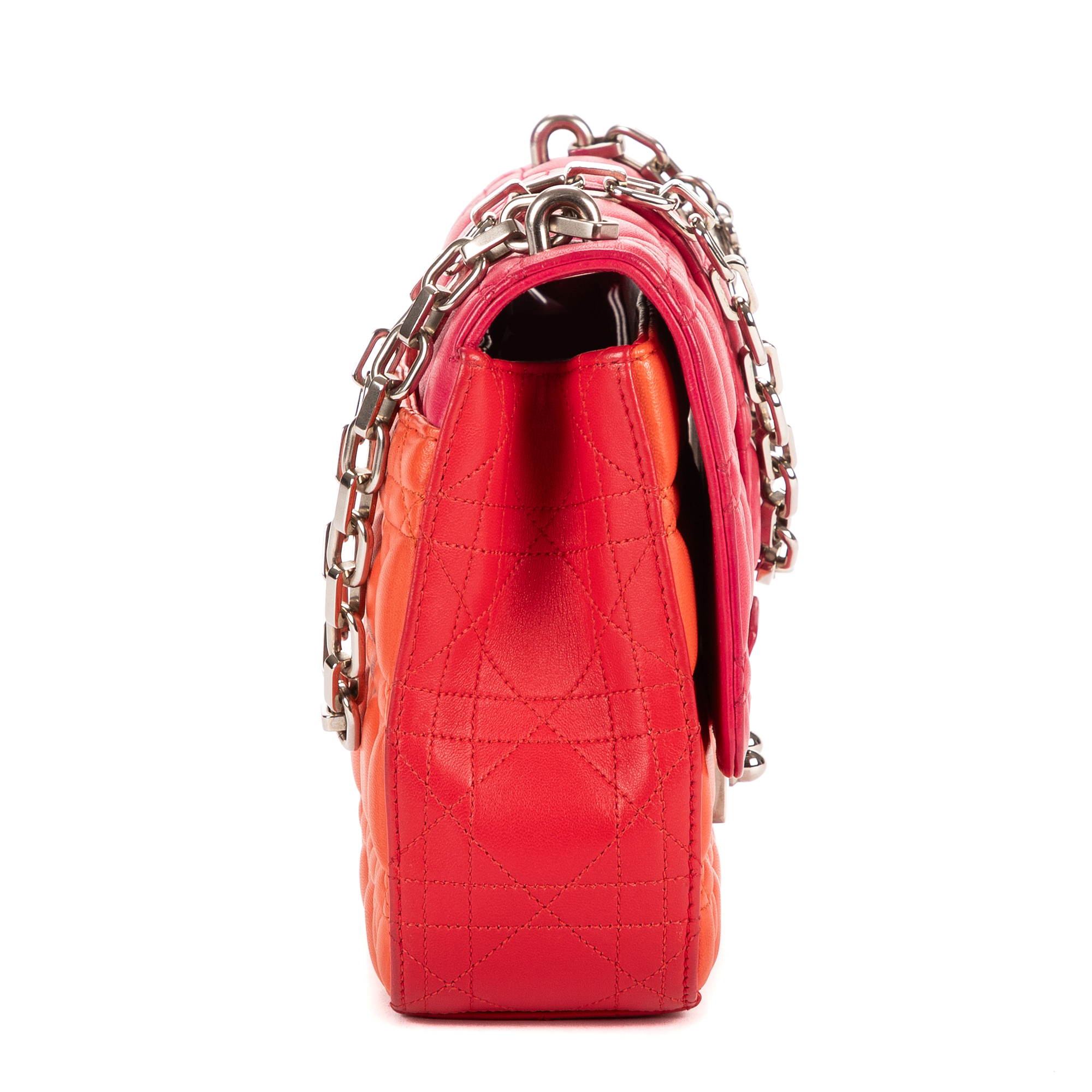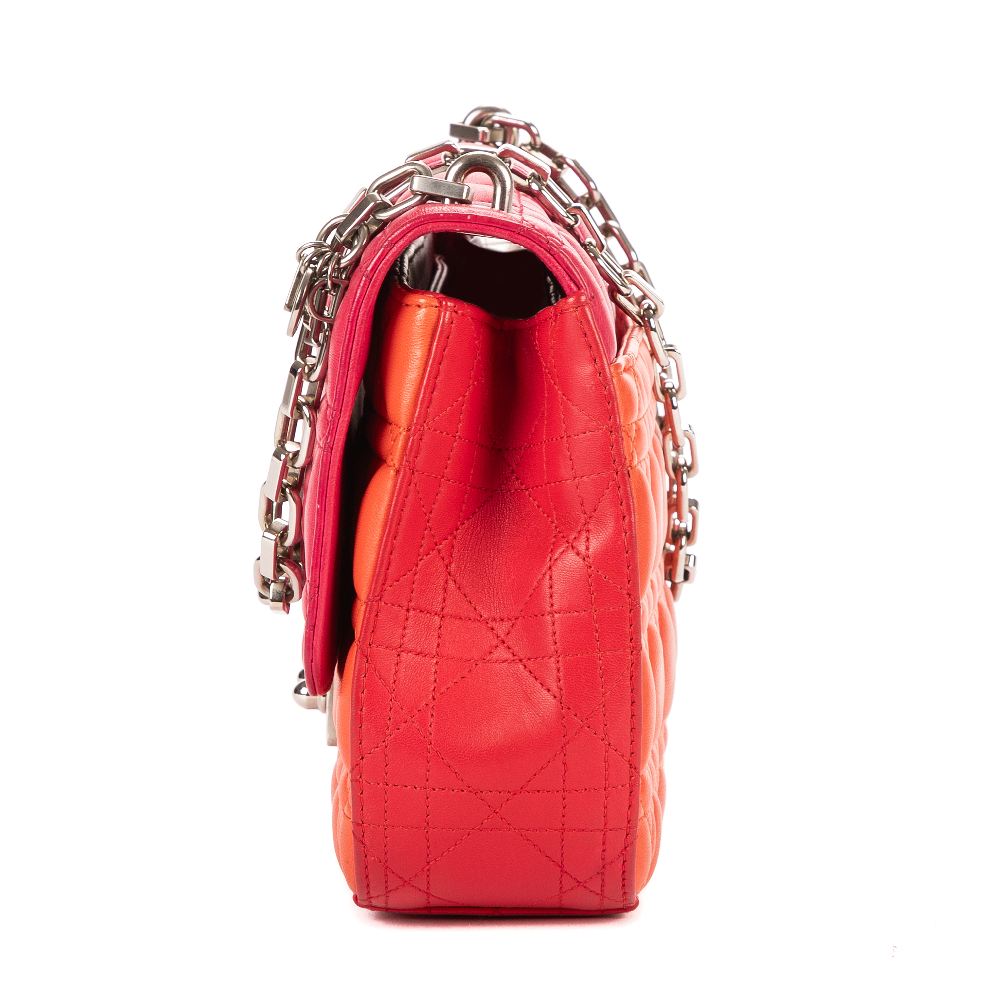 Christian Dior Sac à bandoulière Lady Dior Tricolor Medium en Fuchia/Orange/Rouge et Sliver. Le produit est en Parfait état (AA).