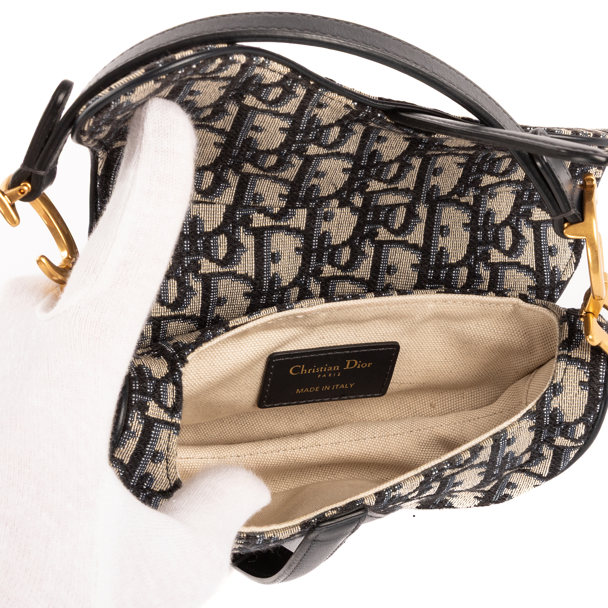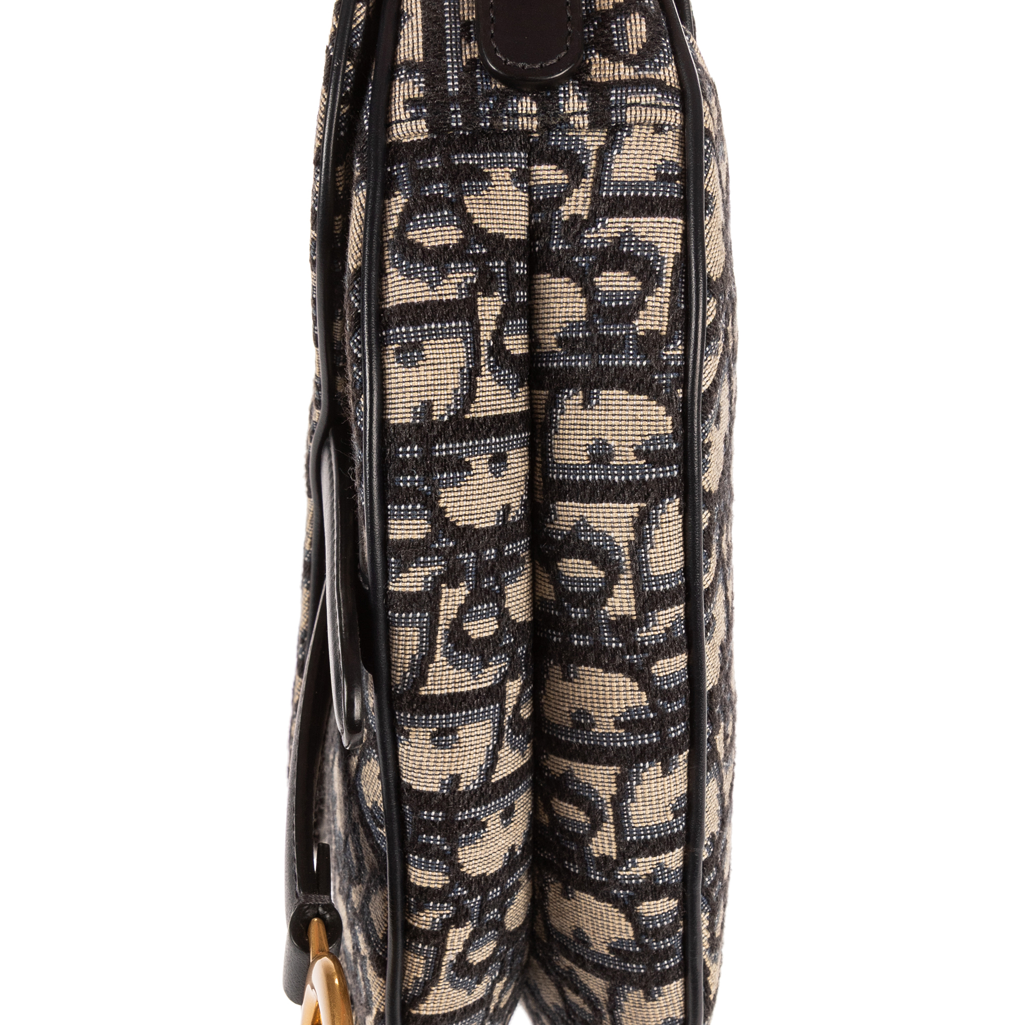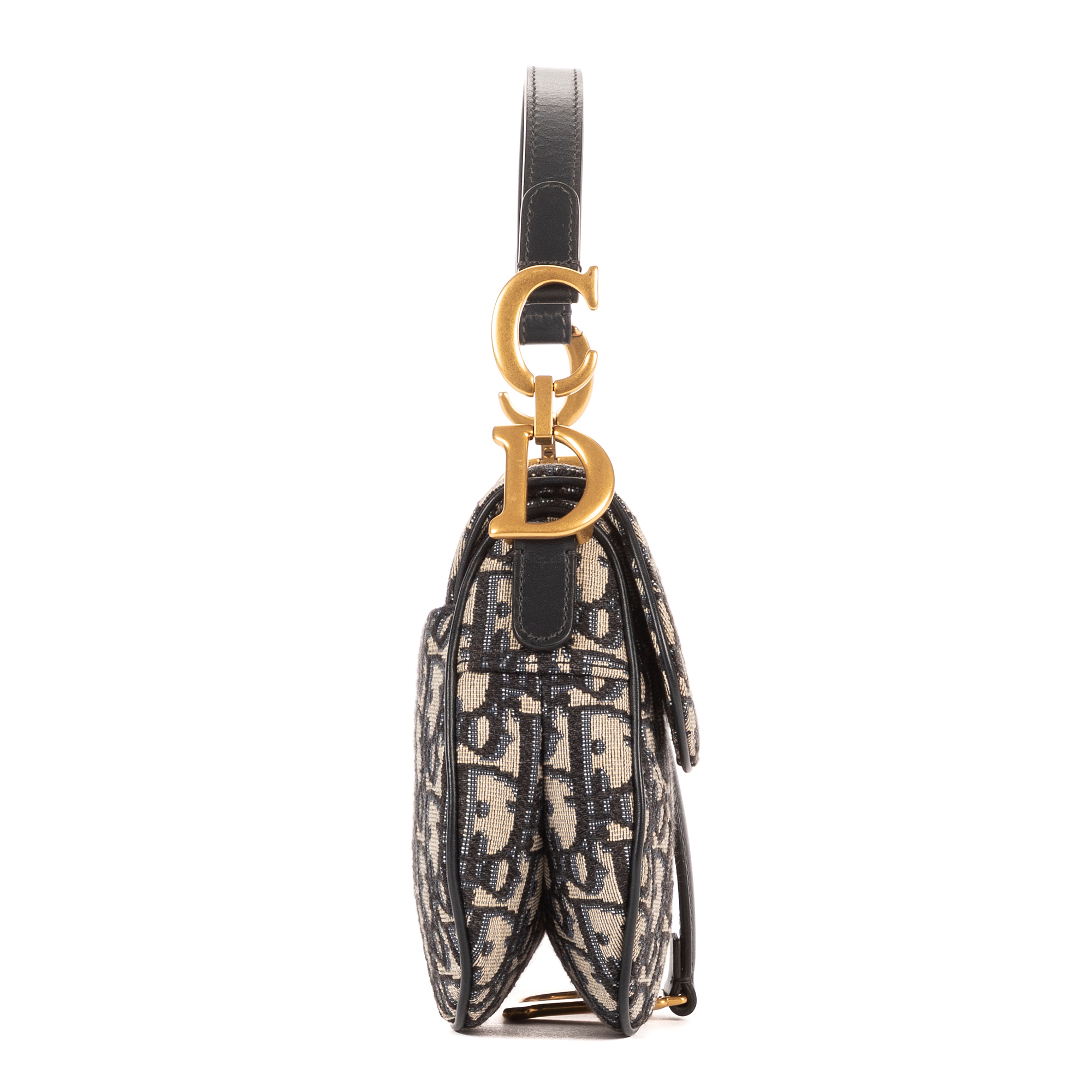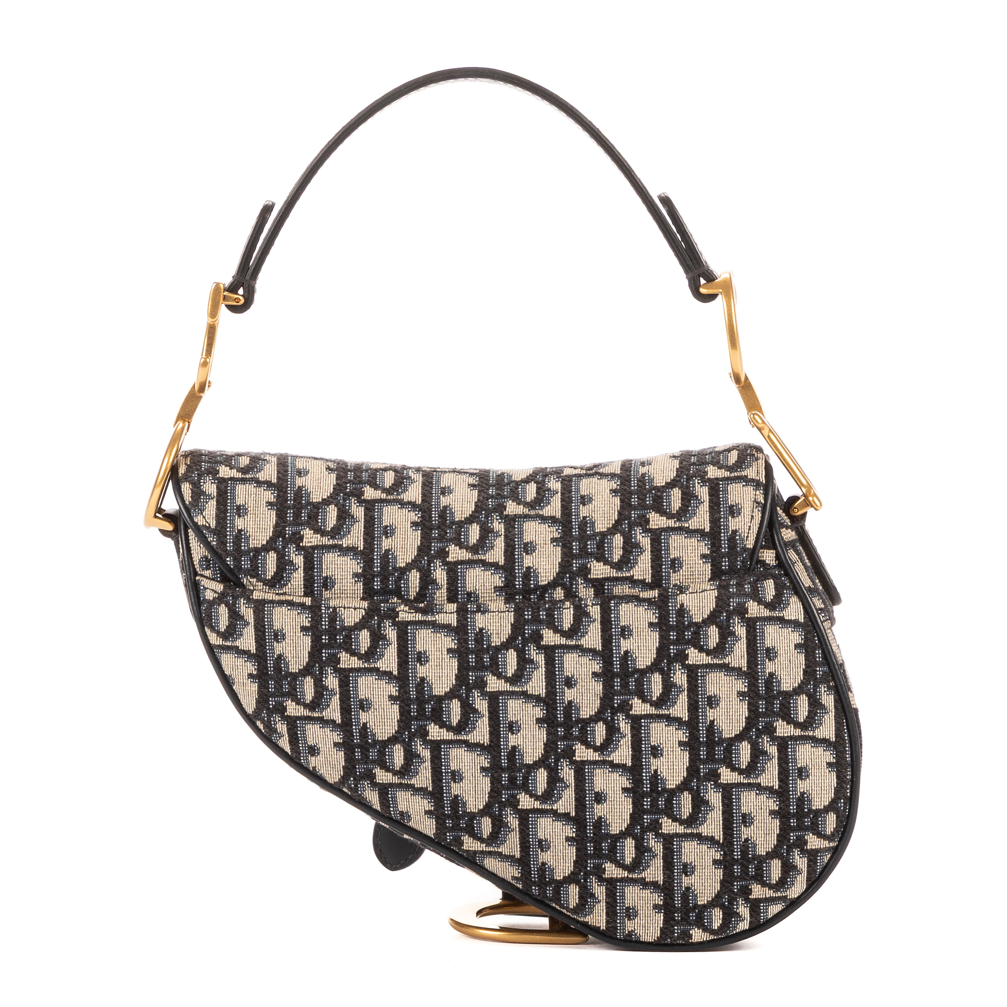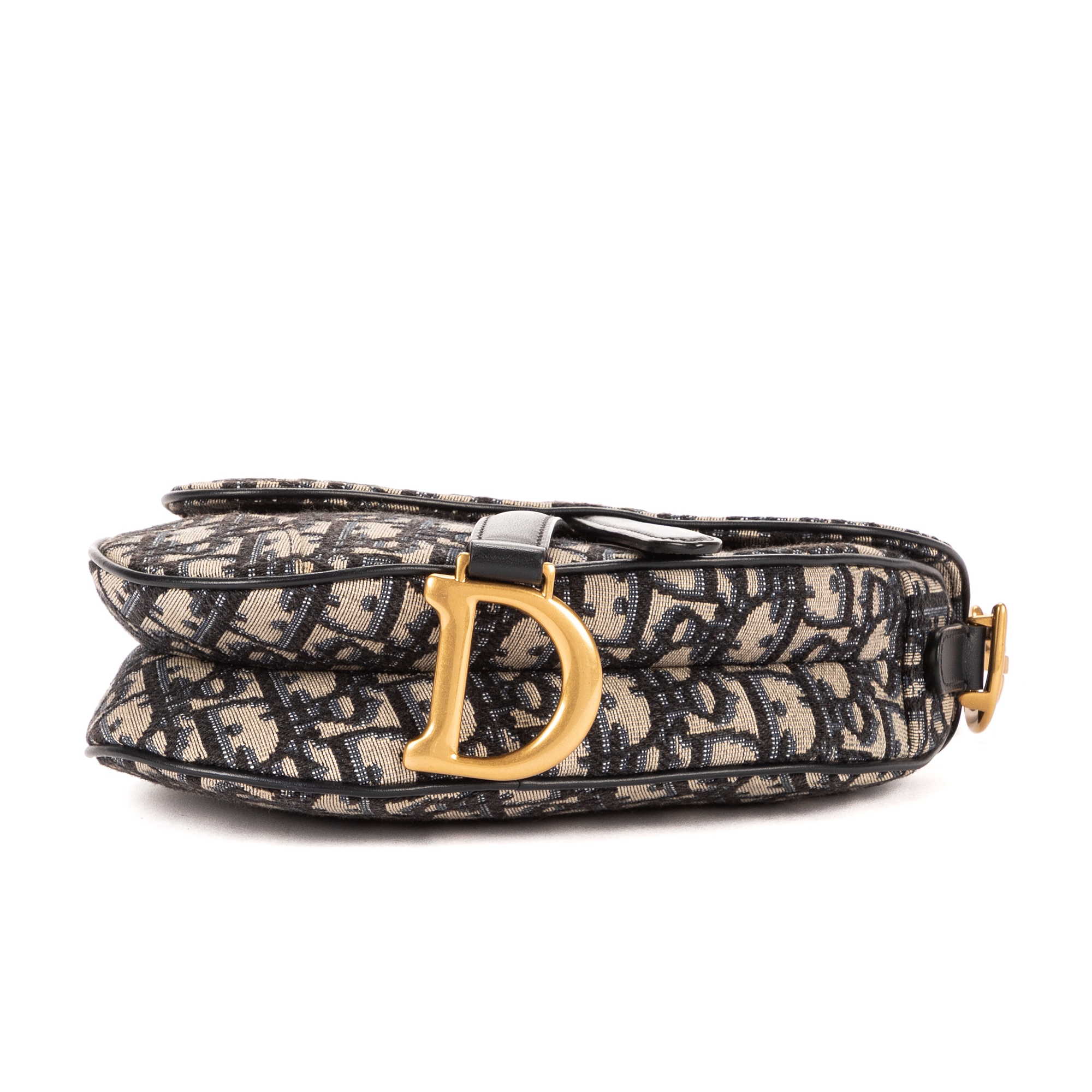 Christian Dior Sac à bandoulière Oblique Saddle Mini en Marine et Argent/Or. Le produit est en Parfait état (AA).