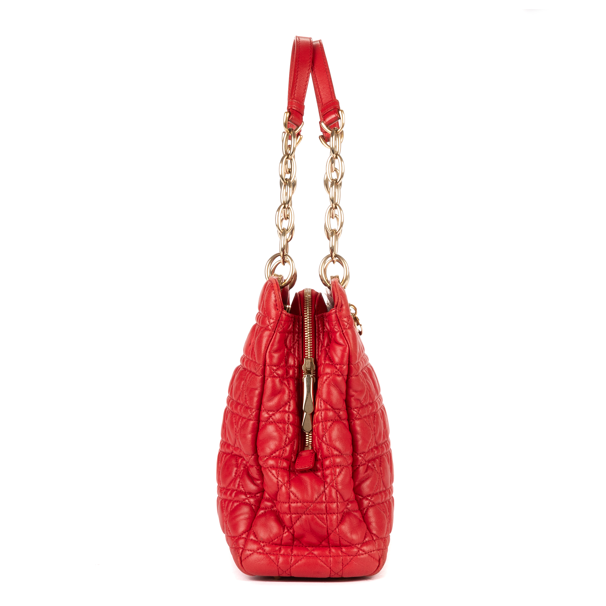 Christian Dior Sac à bandoulière Soft Tote en Rouge et Or. Le produit est en Excellent état (A).