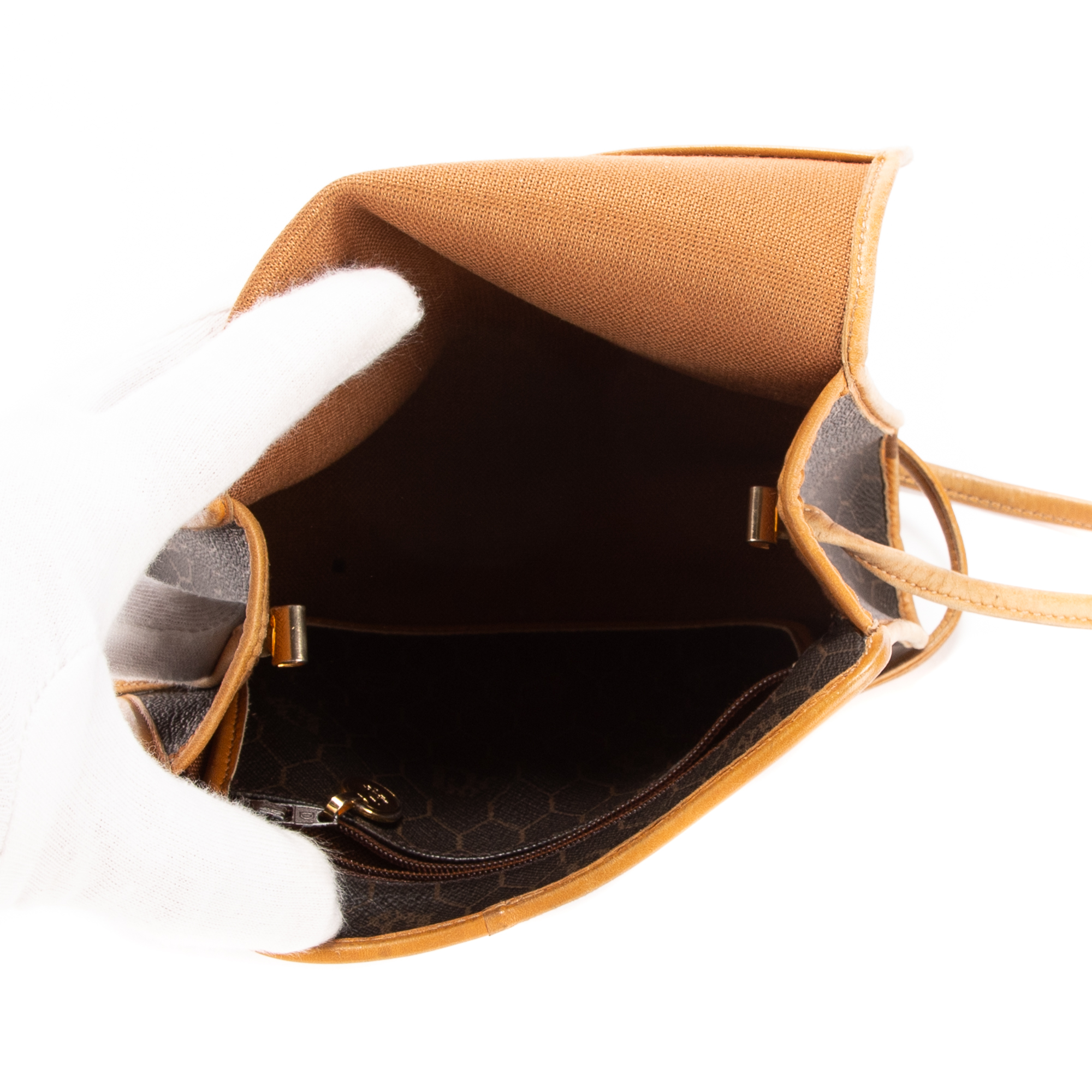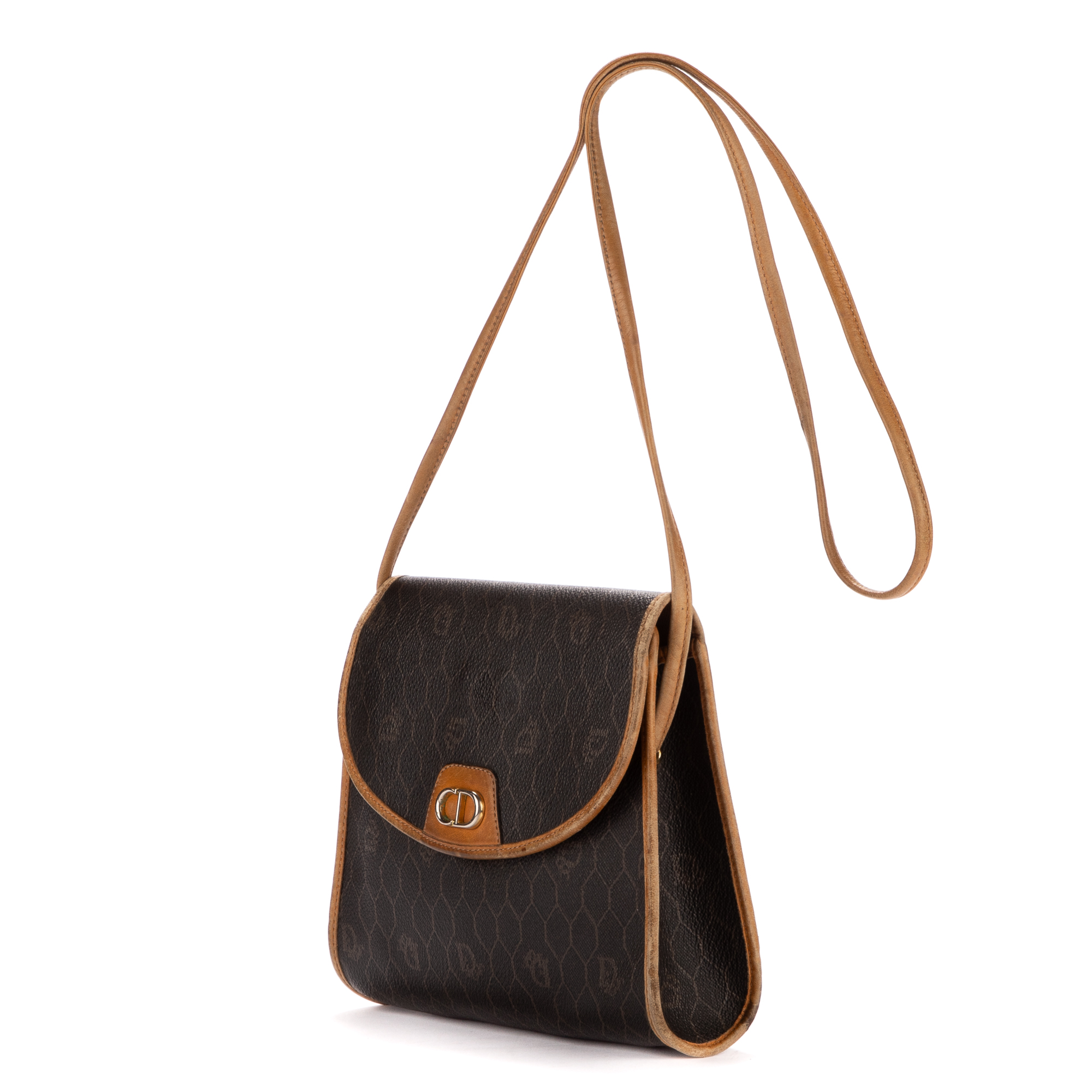 Dior sac à bandoulière Honeycomb Sling en brun et or. Le produit est en Très Bon état (AB).