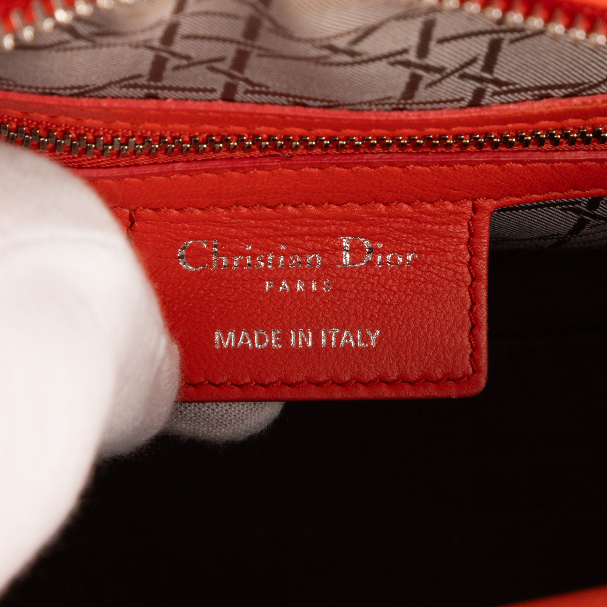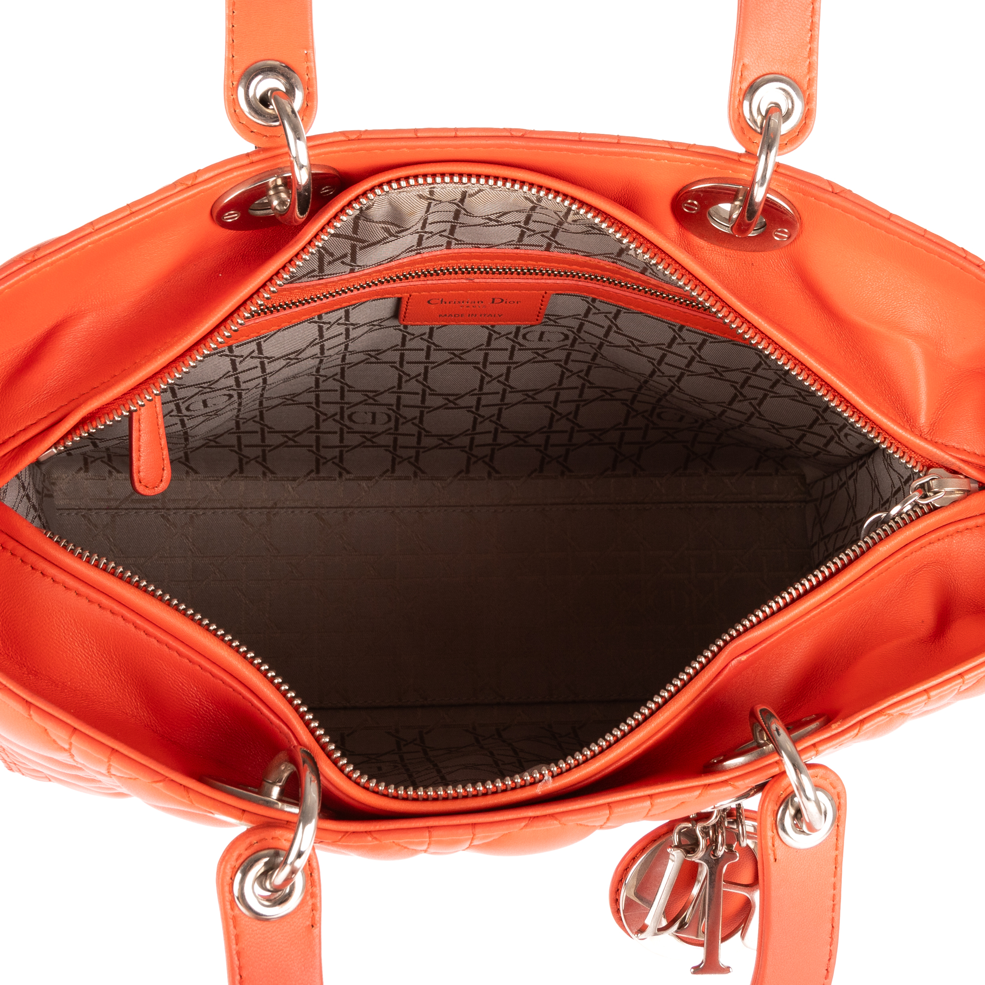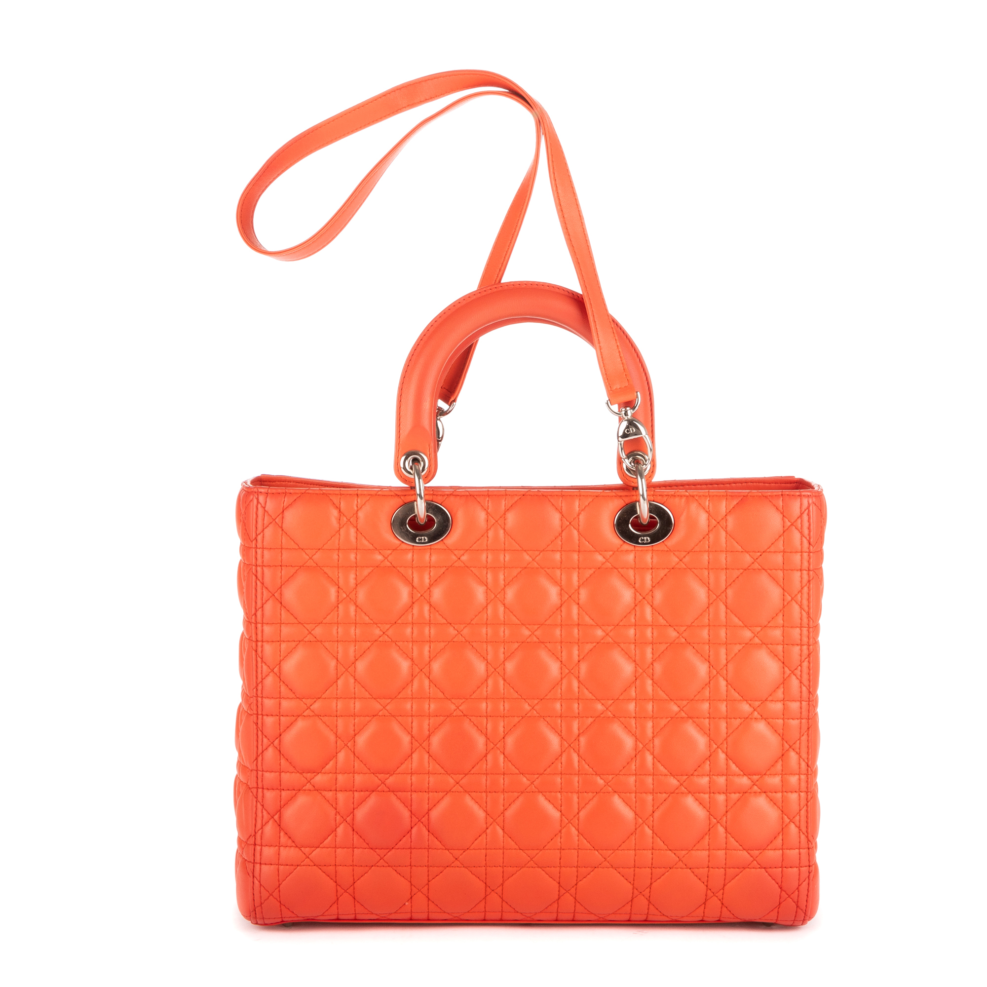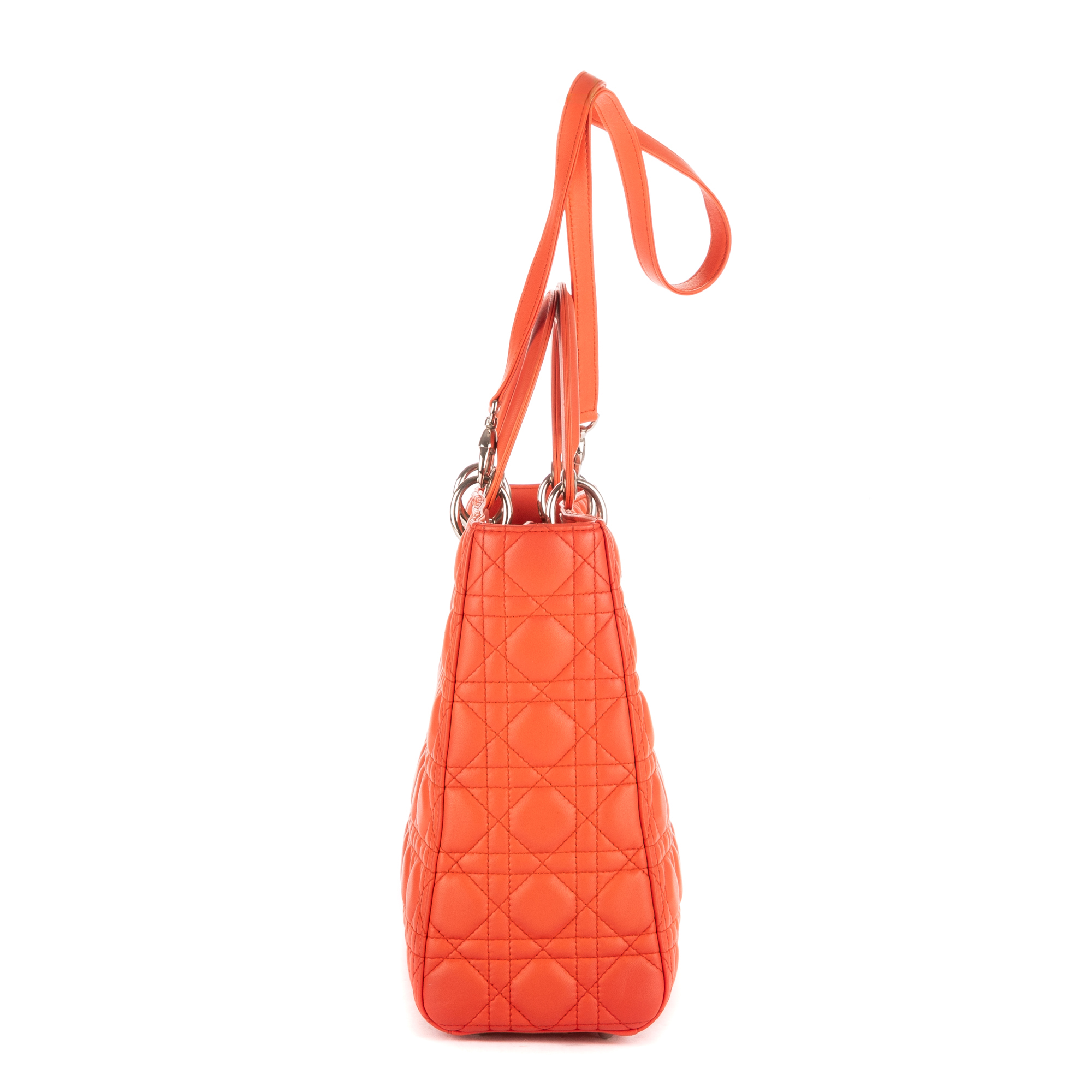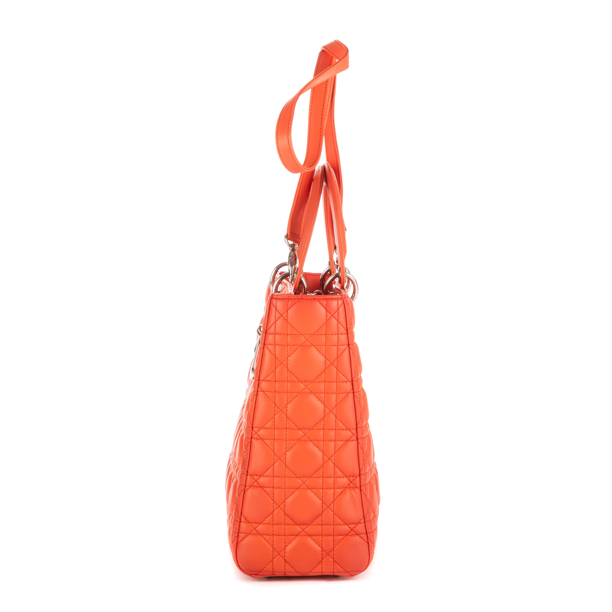 Dior Sac à bandoulière Large Lady-D en Orange et Argent. Le produit est en Parfait état (AA).