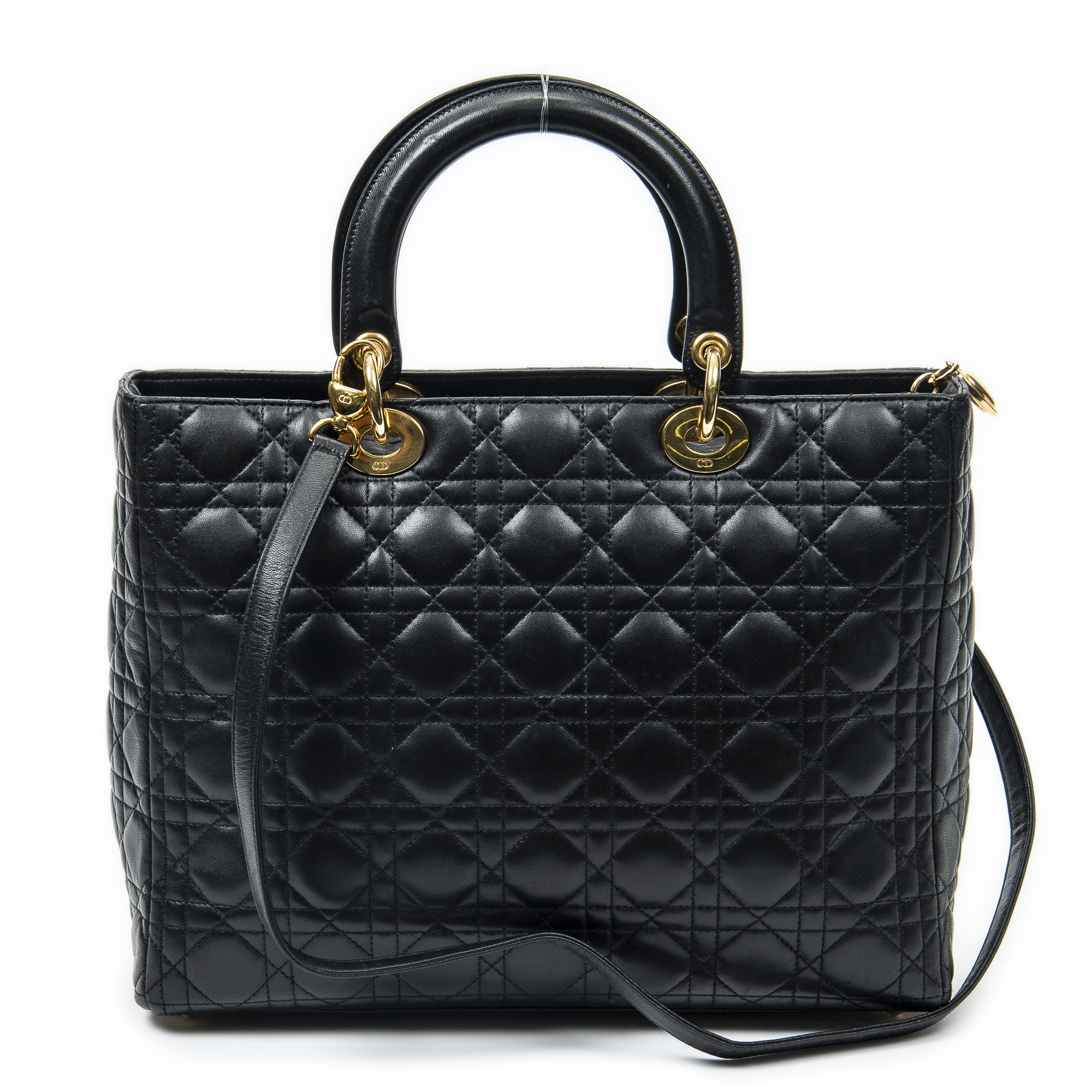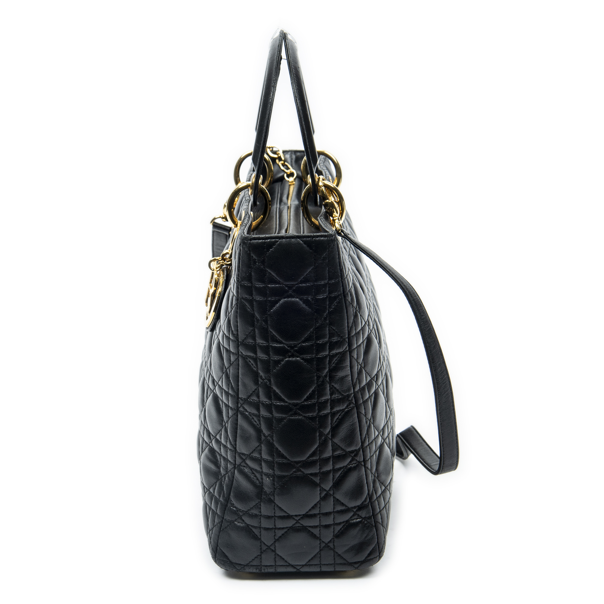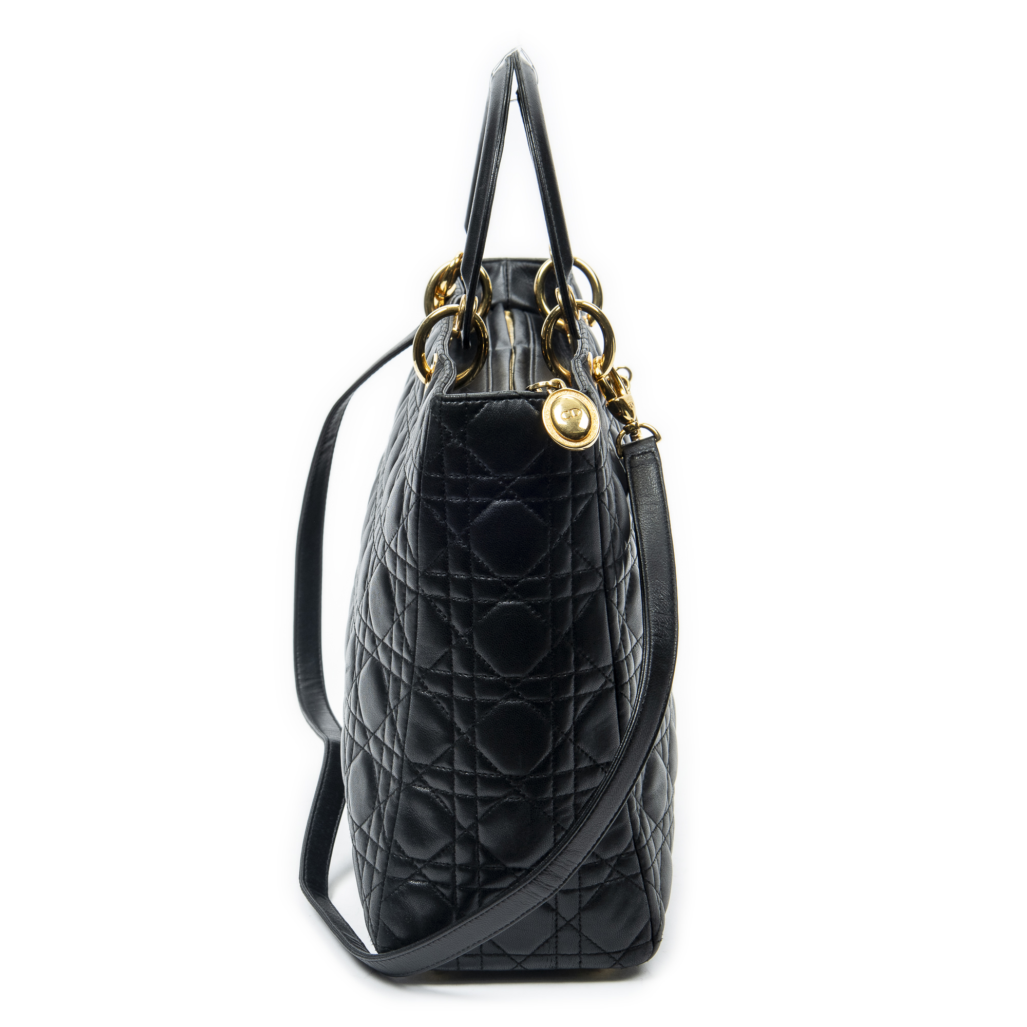 Dior Sac à bandoulière Large Lady Dior Zip en Black et Gold. Le produit est en Très Bon état (AB).