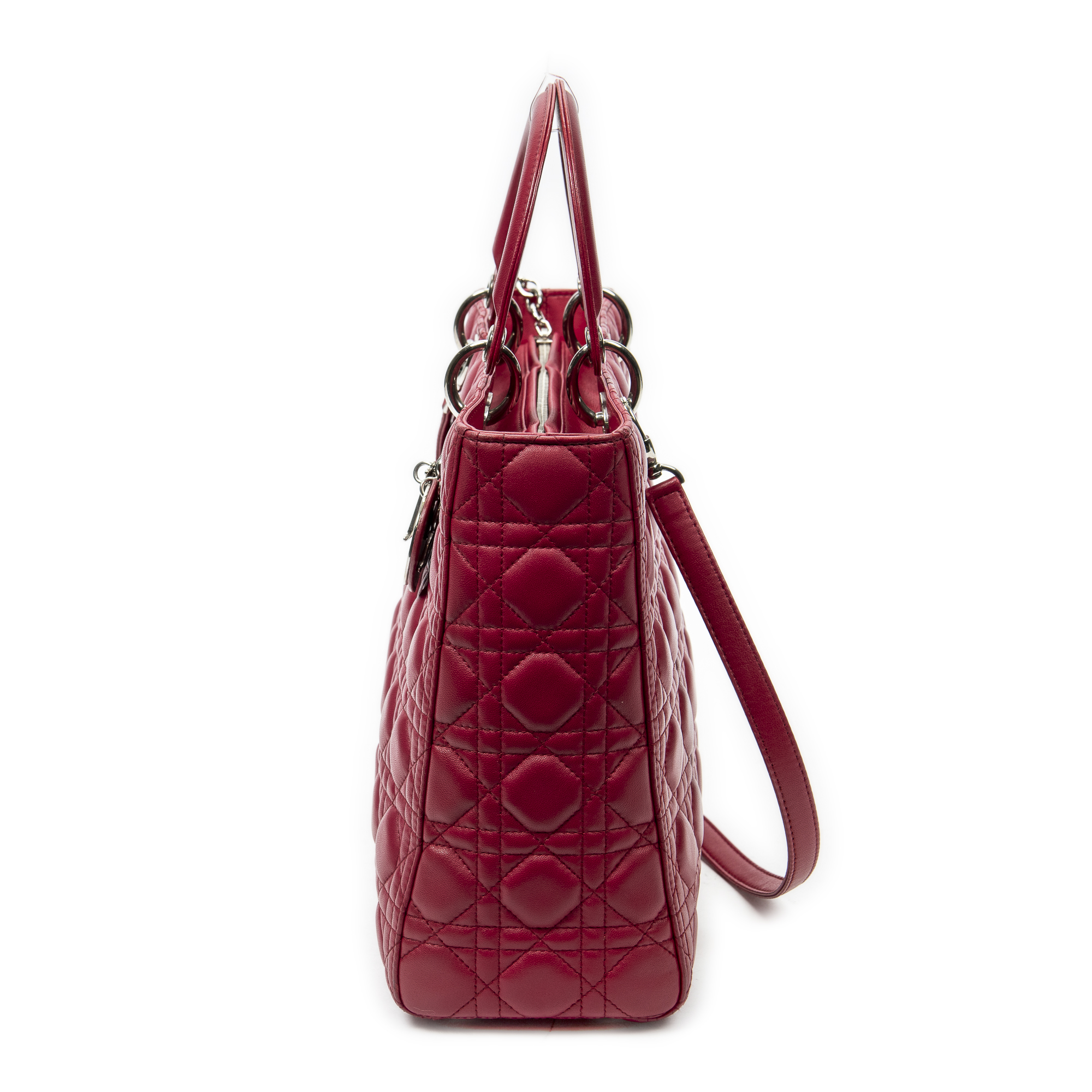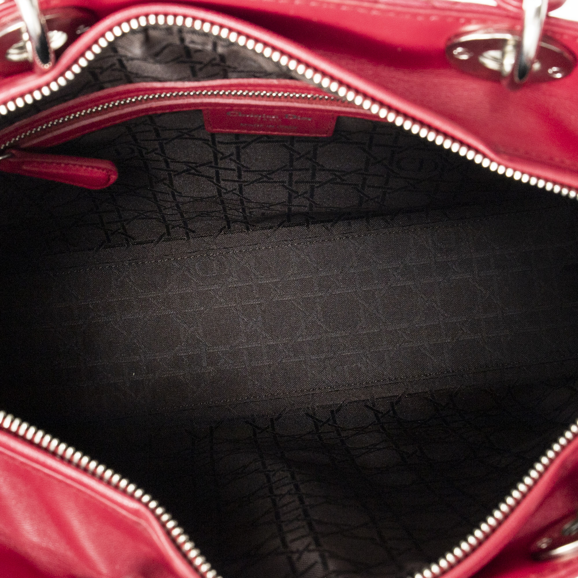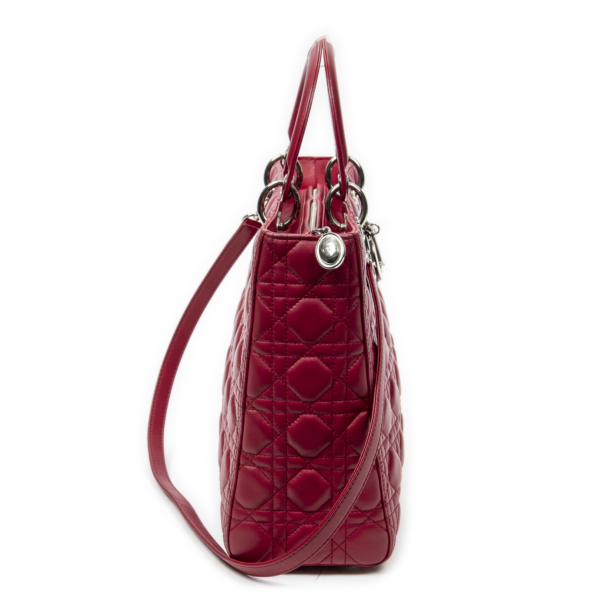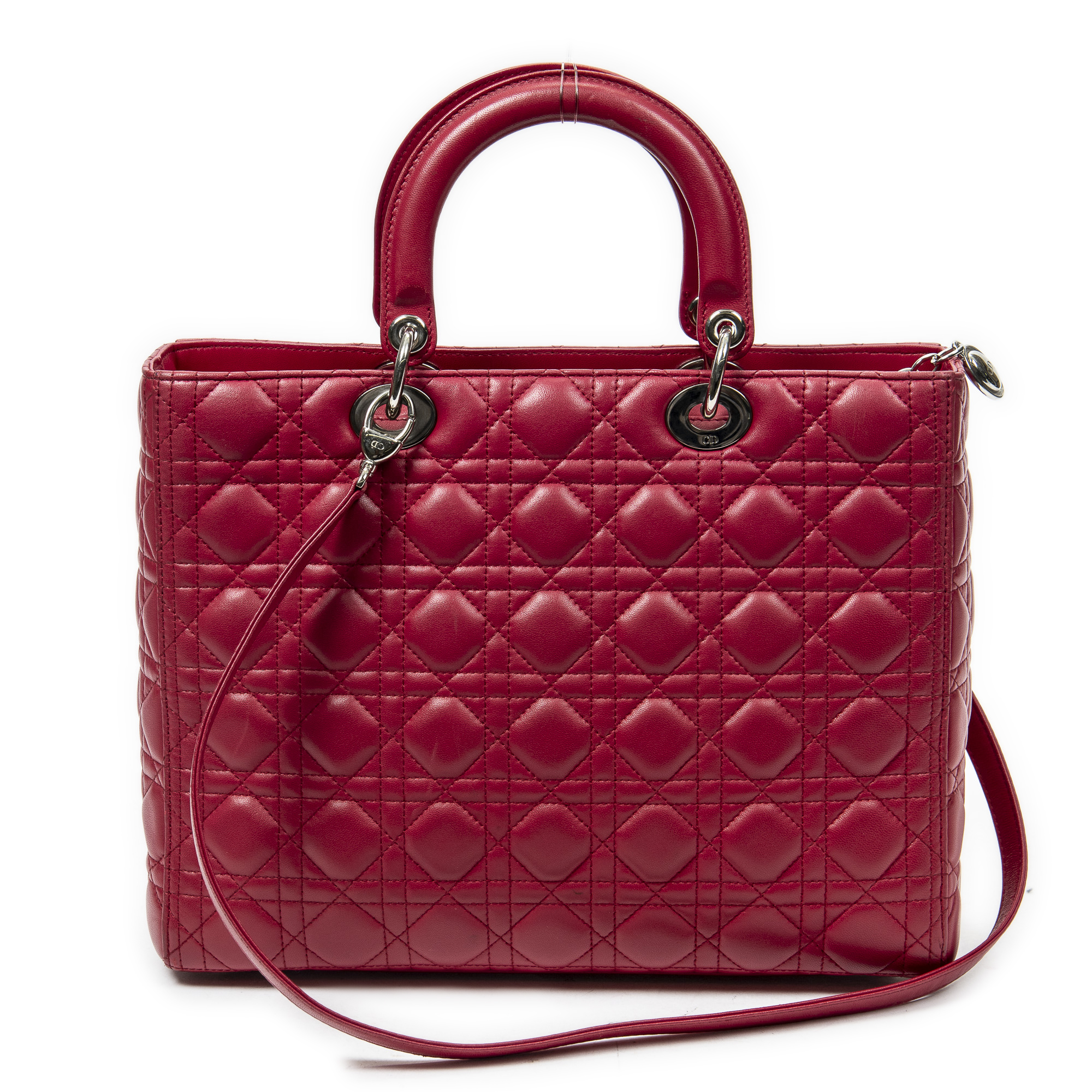 Dior Sac à bandoulière Large Lady Dior Zip en Fuchsia et Argent. Le produit est en Excellent état (A).