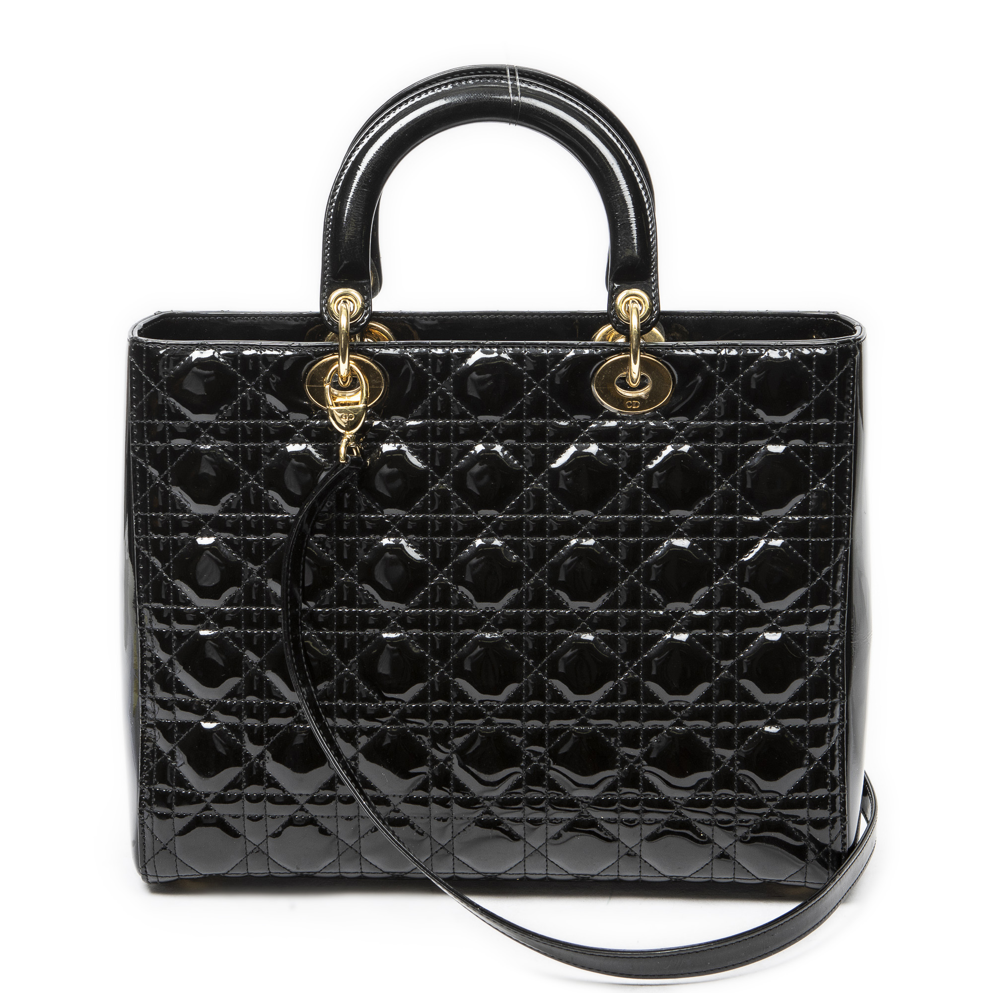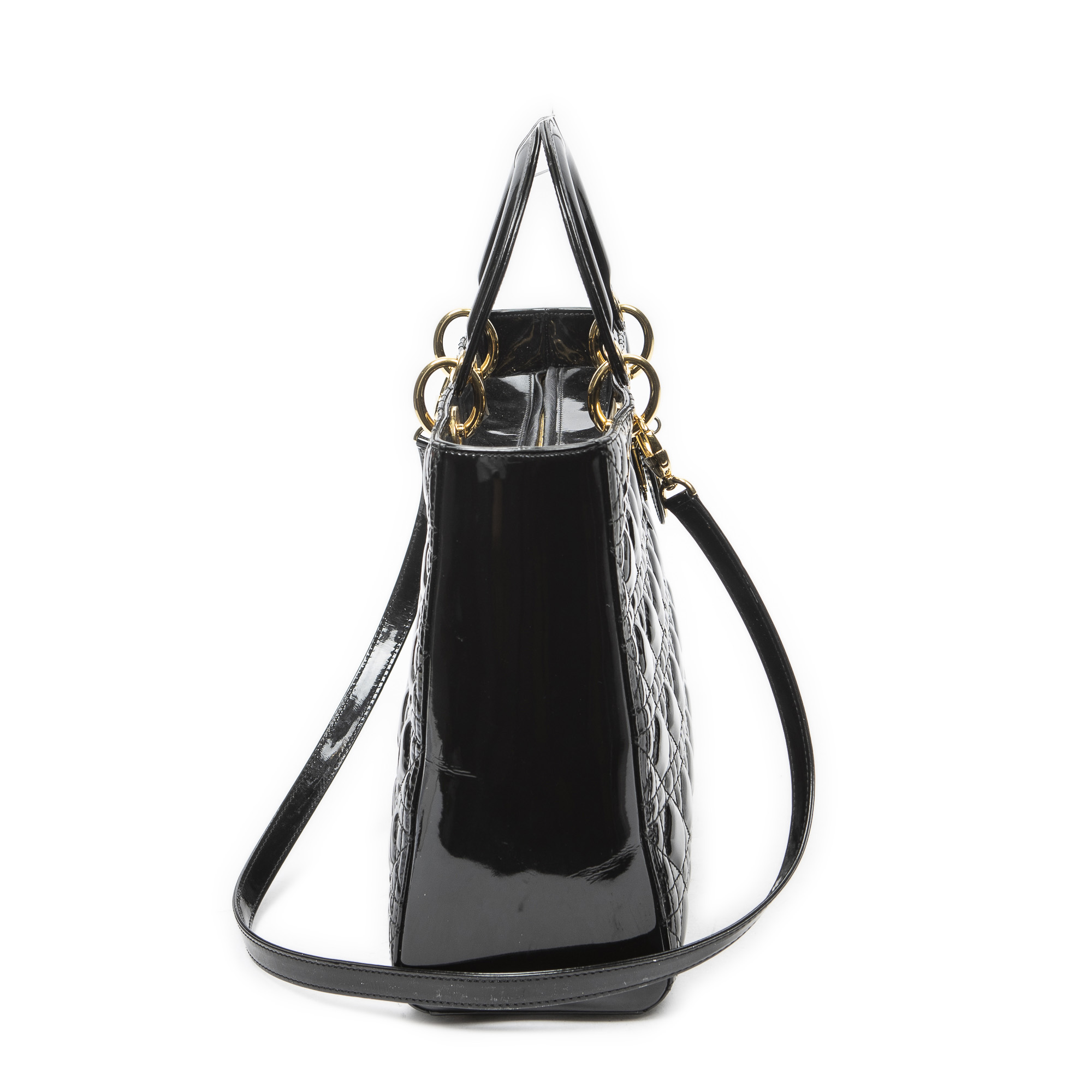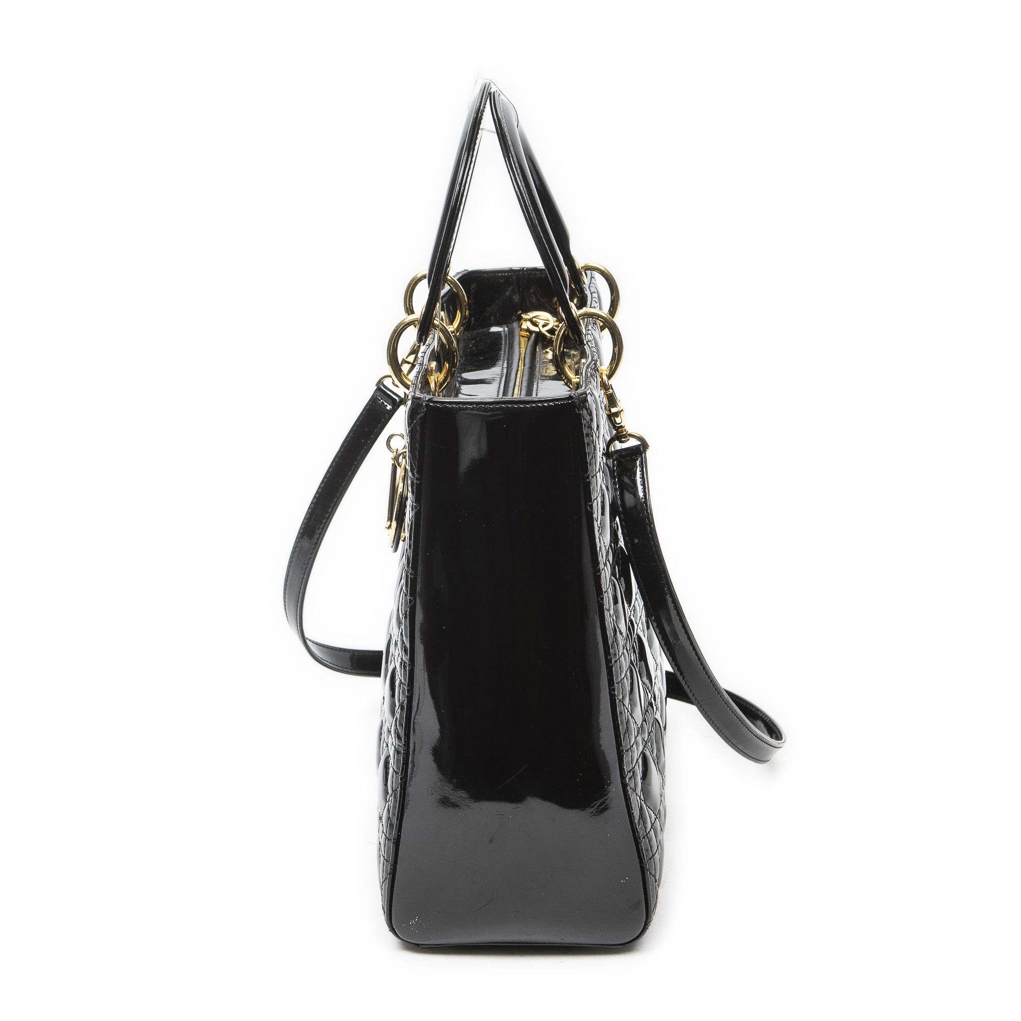Dior Sac à bandoulière Large Lady Dior Zip en Noir et Gold. Le produit est en Excellent état (A).